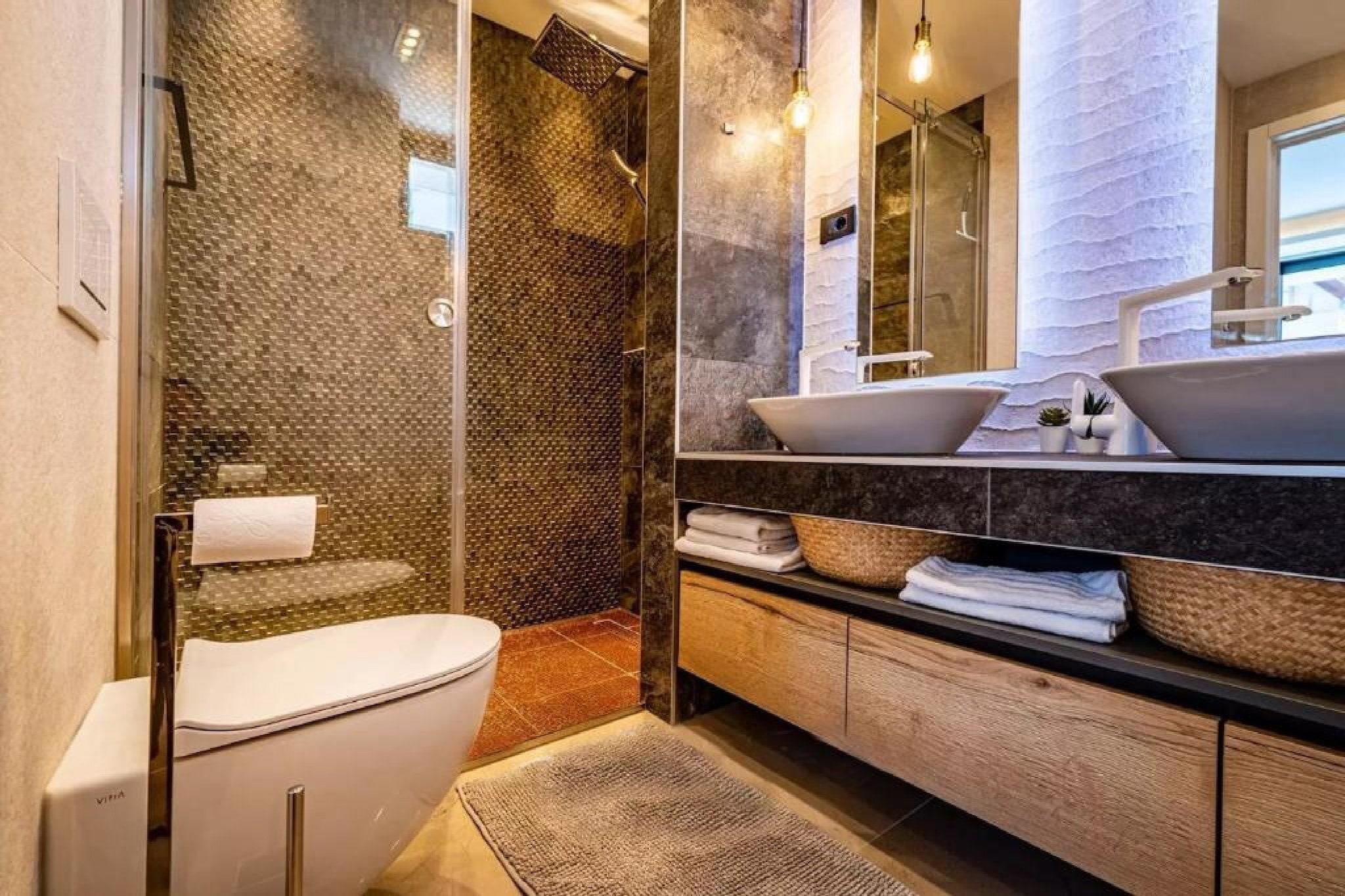 Villa Alpha & Omega is located in Banjol on the island of Rab, famous for its breathtaking sandy beaches. A private swimming pool, hot tub and a private sauna are at your disposal. This property also comes with spacious terrace fitted with sun beds as well as BBQ grill and an outdoor dining area. A damage deposit of EUR 1500 is required on arrival.This will be collected as a cash payment.You should be reimbursed on check-out. This four bedroom villa with swimming pool can perfectly fit up to eight people. It features free WiFi, air conditioning as well as SAT LCD TV. The open space living room comes with sofa and sitting area, and it's combined with the equipped kitchen and dining area. This property also comes with terrace that overlooks the lake. The private bathroom comes with shower and toilet. You will have access to washing machine, iron and ironing board. In just a few meters away from the property, you will find all the things necessary for a perfect vacation. In the area are restaurants, café bars, and grocery stores. Restaurants, Cafes, bars - all can be found within less then 150 m from the apartment. The closest grocery store is 450 m from the property. Beach is only 160 m from the property! Airport is located 37 km from the property.