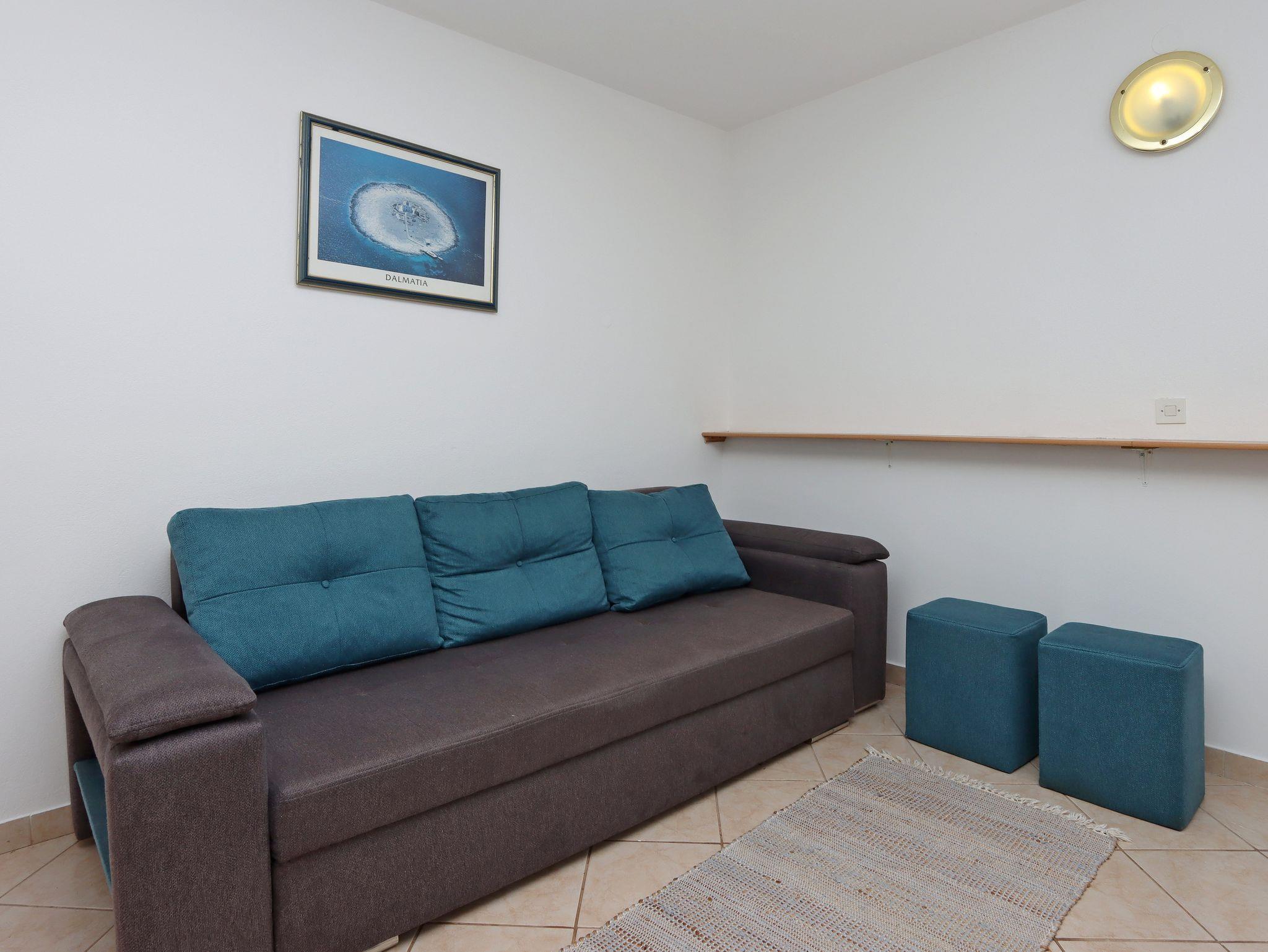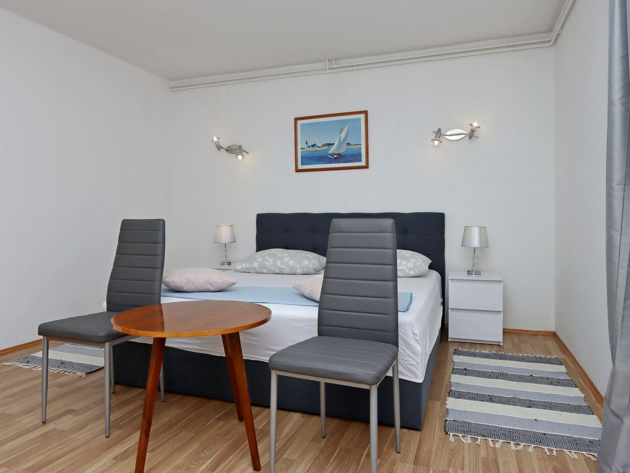 Ferienwohnung bietet Platz für 2 Gäste. Die Betten sind in Schlafzimmern, die es 1 gibt, innerhalb einer Gesamtfläche von 45m2, angeordnet. Die Gäste haben einen eigenen Balkon zur Verfügung, auf der sie in warmen Sommernächten genießen können. Das Apartment bietet Meerblick. Es ist erlaubt, Speisen auf dem Gemeinschafts-Grill vorzubereiten. IM PREIS INBEGRIFFEN: Kurtaxe, Endreinigung, Klimatisierung, Parkplatz, Internet, Bootsanlegeplatz, tragbarer Grill. VERBINDLICHE ZUSÄTZLICHE KOSTEN: Aufzahlung für Kurzaufenthalte (prozentualer Zuschlag pro Nächtigungsanzahl: 30% - 1, 20% - 2, 10% - 3). UNVERBINDLICHE ZUSÄTZLICHE KOSTEN: Wäschewaschen (5,00 € Waschen). Die Verfügbarkeit zusätzlicher Dienstleistungen in Ihrem reservierten Termin und die Preise derselben (falls nicht aufgeführt) müssen im Voraus überprüft werden. Zusätzliche Dienstleistungen die in der Zahlungsaufforderung nicht aufgeführt sind werden direkt beim Vermieter bezahlt, angenommen der Gast nutzt auch diese.