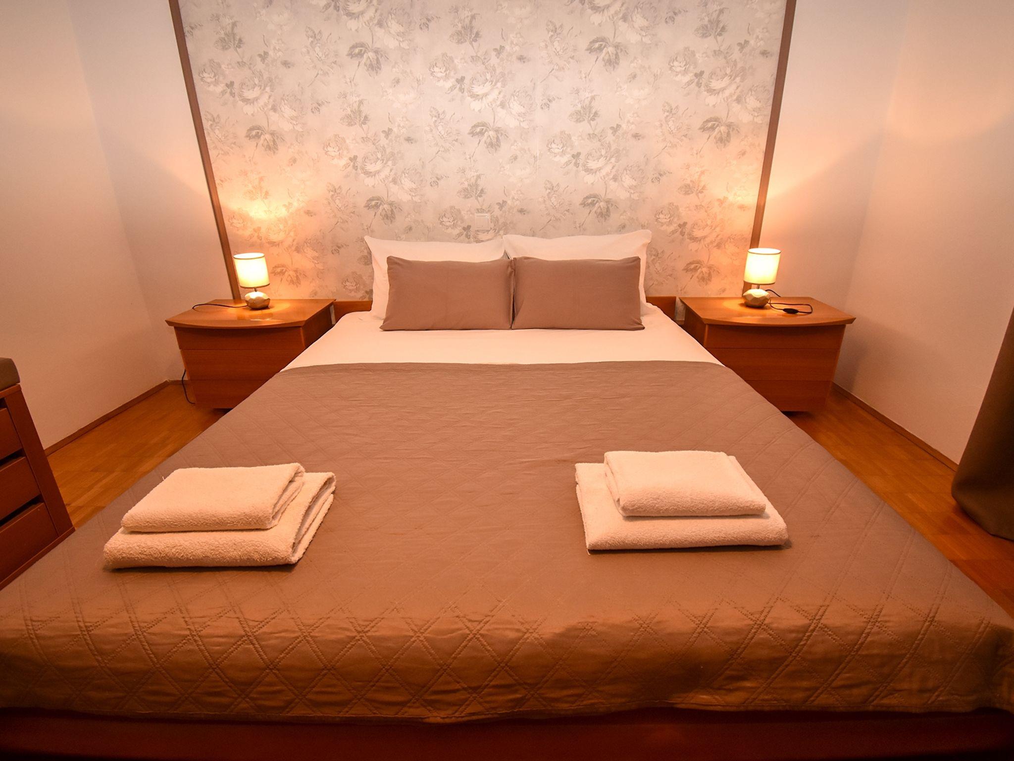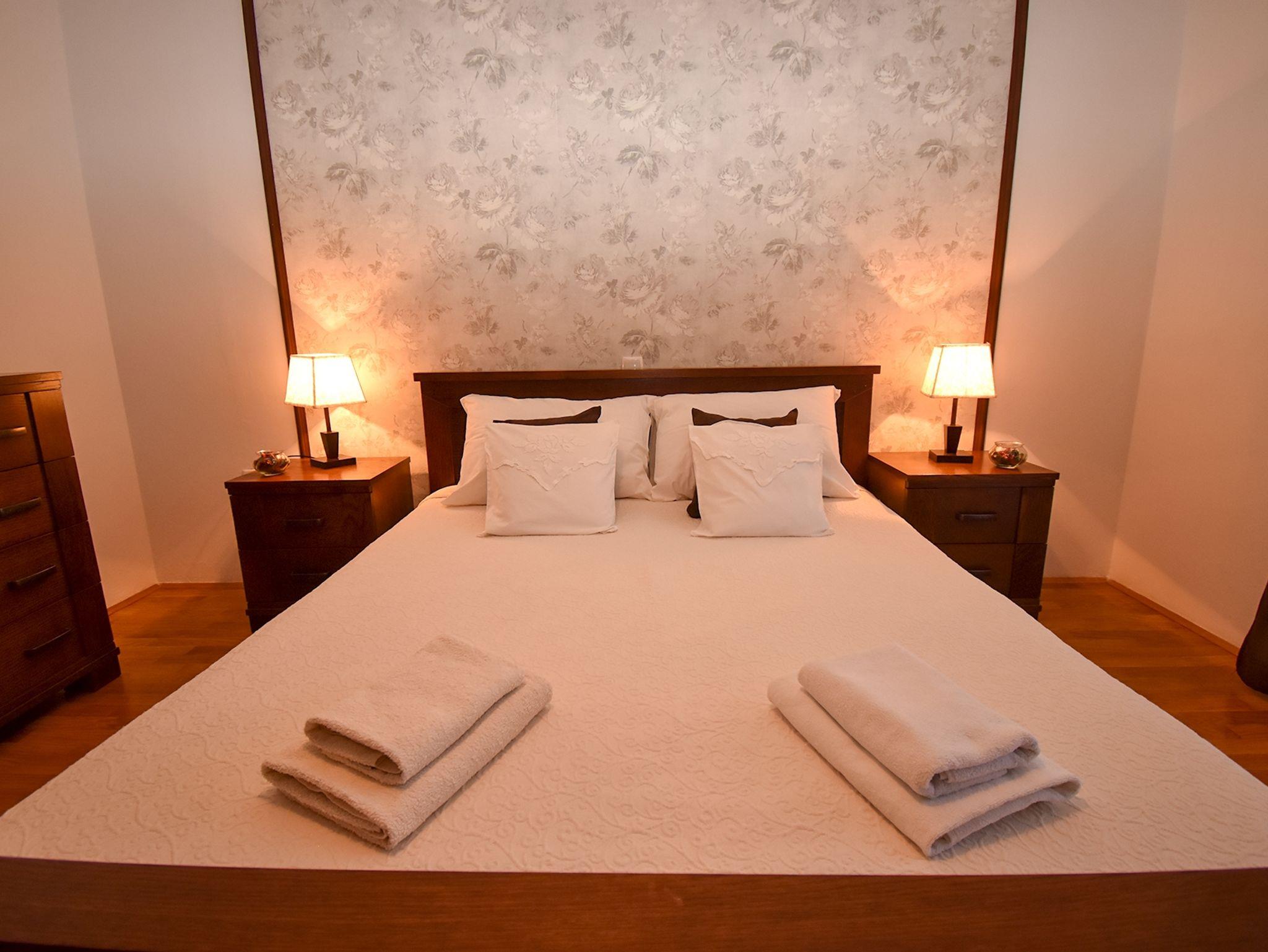 Ferienwohnung bietet Platz für 4 Gäste. Die Betten sind in Schlafzimmern, die es 2 gibt, innerhalb einer Gesamtfläche von 70m2, angeordnet. Die Gäste haben eine eigene Terrasse zur Verfügung, auf der sie in warmen Sommernächten genießen können. Das Apartment bietet Meerblick. IM PREIS INBEGRIFFEN: Kurtaxe, Endreinigung, Parkplatz, Internet, Bügeleisen, Bügelbrett, Föhn. VERBINDLICHE ZUSÄTZLICHE KOSTEN: Aufzahlung für Kurzaufenthalte (prozentualer Zuschlag pro Nächtigungsanzahl: 30% - 1, 20% - 2, 10% - 3). UNVERBINDLICHE ZUSÄTZLICHE KOSTEN: Wäschewaschen (6,00 € Waschen). Die Verfügbarkeit zusätzlicher Dienstleistungen in Ihrem reservierten Termin und die Preise derselben (falls nicht aufgeführt) müssen im Voraus überprüft werden. Zusätzliche Dienstleistungen die in der Zahlungsaufforderung nicht aufgeführt sind werden direkt beim Vermieter bezahlt, angenommen der Gast nutzt auch diese. Ermäßigung auf den Grundpreis: Gratistag 21=19 (bei einem Aufenthalt von 21 Tagen oder mehr erhalten Sie 2 Gratistage für den Aufenthalt bis 31.12.26).