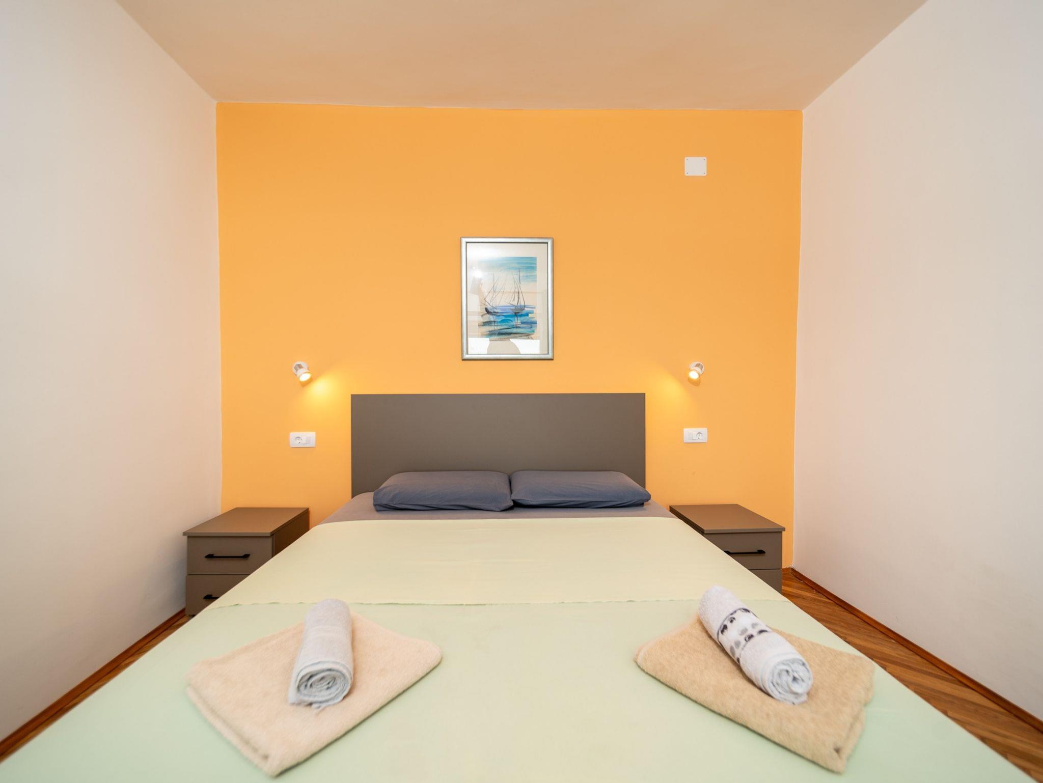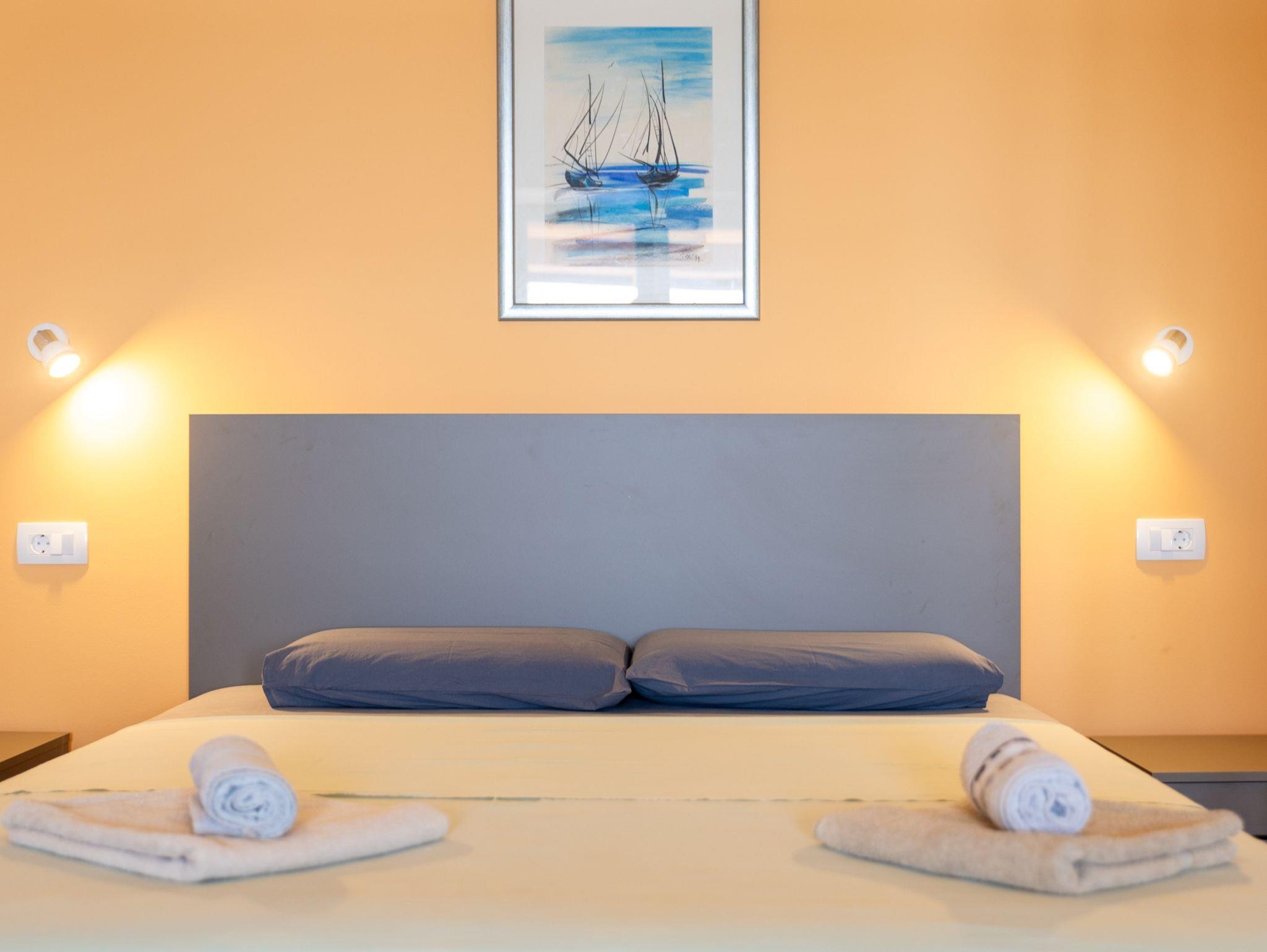 Ferienwohnung bietet Platz für 3 Gäste. Die Betten sind in Schlafzimmern, die es 1 gibt, innerhalb einer Gesamtfläche von 32m2, angeordnet. Die Gäste haben eine eigene Terrasse zur Verfügung, auf der sie in warmen Sommernächten genießen können. Das Apartment bietet Meerblick. Es ist erlaubt, Speisen auf dem Gemeinschafts-Grill vorzubereiten. IM PREIS INBEGRIFFEN: Kurtaxe, Endreinigung, Klimatisierung, Parkplatz, Internet, Bügeleisen, Föhn. VERBINDLICHE ZUSÄTZLICHE KOSTEN: Aufzahlung für Kurzaufenthalte (prozentualer Zuschlag pro Nächtigungsanzahl: 30% - 1, 20% - 2, 10% - 3). UNVERBINDLICHE ZUSÄTZLICHE KOSTEN: Bootsanlegeplatz (10,00 € pro Nacht), 2 Kinderbettchen (10,00 € Person/Tag). Die Verfügbarkeit zusätzlicher Dienstleistungen in Ihrem reservierten Termin und die Preise derselben (falls nicht aufgeführt) müssen im Voraus überprüft werden. Zusätzliche Dienstleistungen die in der Zahlungsaufforderung nicht aufgeführt sind werden direkt beim Vermieter bezahlt, angenommen der Gast nutzt auch diese.