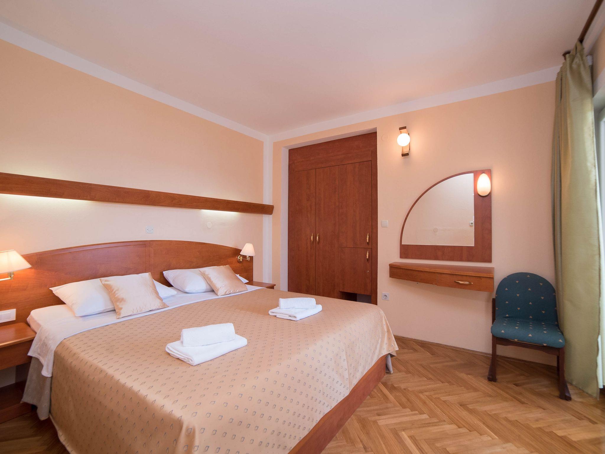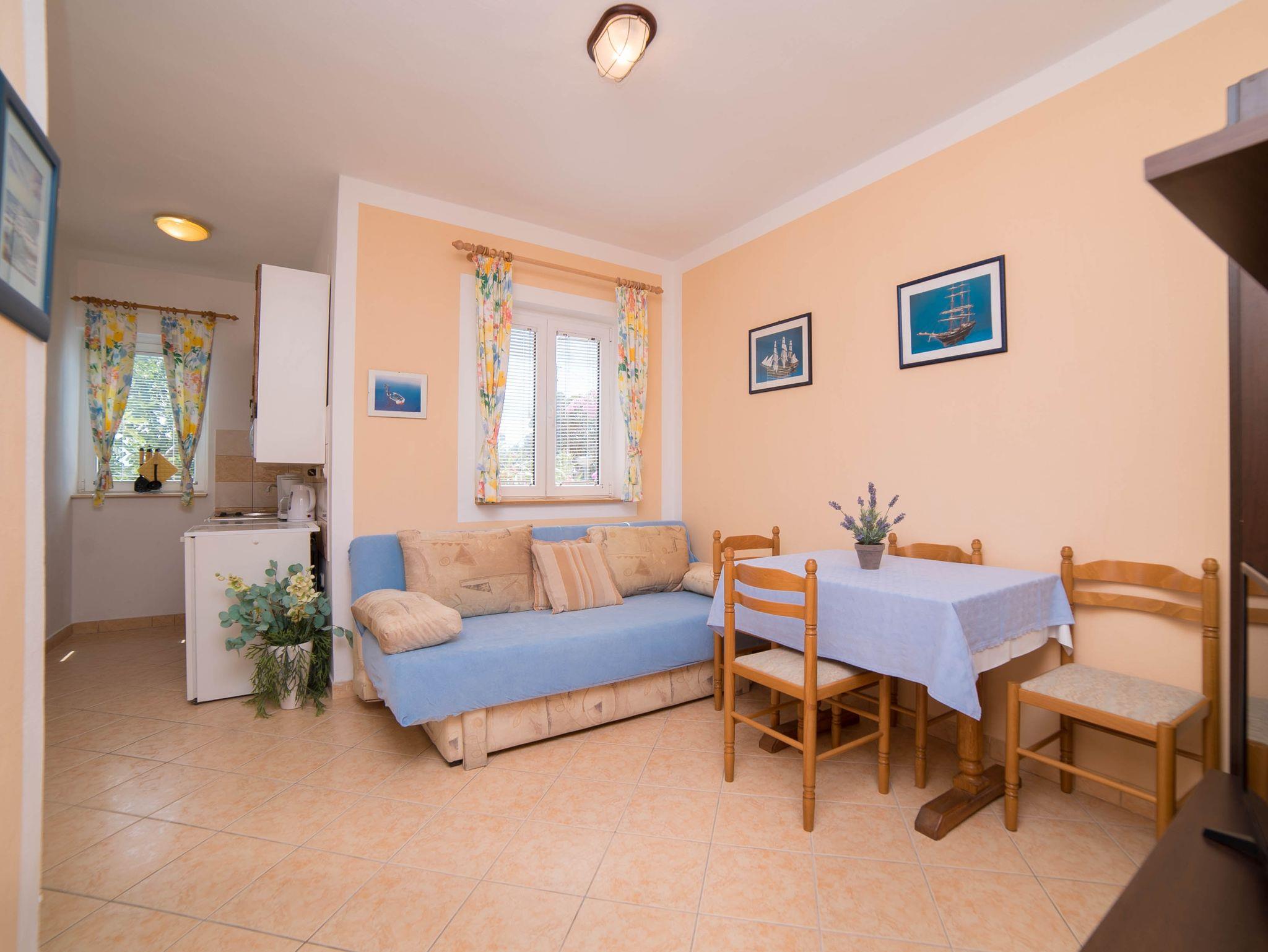 Ferienwohnung bietet Platz für 3 Gäste. Die Betten sind in Schlafzimmern, die es 1 gibt, und in Esszimmer, innerhalb einer Gesamtfläche von 32m2, angeordnet. Die Gäste haben eine eigene Terrasse zur Verfügung, auf der sie in warmen Sommernächten genießen können. Das Apartment bietet Meerblick. Es ist erlaubt, Speisen auf dem Gemeinschafts-Grill vorzubereiten. In der Unterkunftseinheit besteht die Möglichkeit des Mitbringens von Haustieren gegen Aufpreis. IM PREIS INBEGRIFFEN: Kurtaxe, Endreinigung, Klimatisierung, Parkplatz, Internet. VERBINDLICHE ZUSÄTZLICHE KOSTEN: Aufzahlung für Kurzaufenthalte (prozentualer Zuschlag pro Nächtigungsanzahl: 30% - 1, 20% - 2, 10% - 3). UNVERBINDLICHE ZUSÄTZLICHE KOSTEN: Wäschewaschen (5,00 € Waschen), Bootsanlegeplatz (15,00 € pro Nacht), Haustiere (10,00 € pro Nacht). Die Verfügbarkeit zusätzlicher Dienstleistungen in Ihrem reservierten Termin und die Preise derselben (falls nicht aufgeführt) müssen im Voraus überprüft werden. Zusätzliche Dienstleistungen die in der Zahlungsaufforderung nicht aufgeführt sind werden direkt beim Vermieter bezahlt, angenommen der Gast nutzt auch diese.