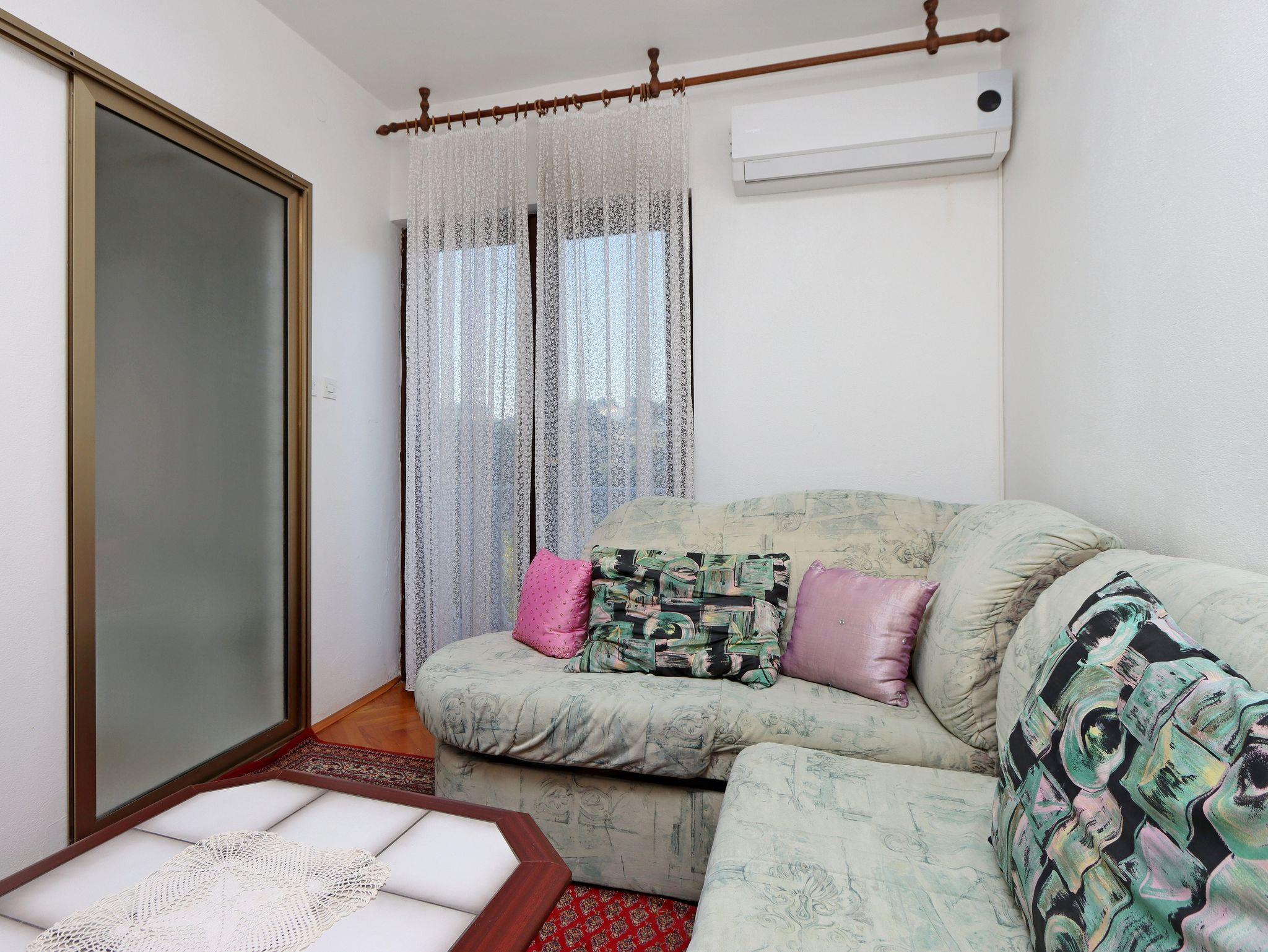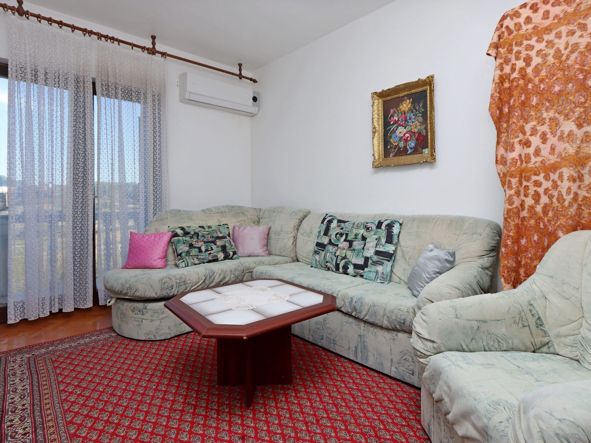 Ferienwohnung bietet Platz für 5 Gäste. Die Betten sind in Schlafzimmern, die es 2 gibt, und in Wohnzimmer, innerhalb einer Gesamtfläche von 60m2, angeordnet. Die Gäste haben einen eigenen Balkon zur Verfügung, auf der sie in warmen Sommernächten genießen können. Es ist erlaubt, Speisen auf dem Gemeinschafts-Grill vorzubereiten. In der Unterkunftseinheit besteht die Möglichkeit des Mitbringens von Haustieren gegen Aufpreis. IM PREIS INBEGRIFFEN: Kurtaxe, Endreinigung, Parkplatz, Internet, Bügeleisen, Bügelbrett, Föhn, tragbarer Grill. VERBINDLICHE ZUSÄTZLICHE KOSTEN: Aufzahlung für Kurzaufenthalte (prozentualer Zuschlag pro Nächtigungsanzahl: 30% - 1, 20% - 2, 10% - 3). UNVERBINDLICHE ZUSÄTZLICHE KOSTEN: Klimatisierung (5,00 € pro Nacht), Haustiere (5,00 € pro Nacht), Zusatzbett (10,00 € pro Nacht). Die Verfügbarkeit zusätzlicher Dienstleistungen in Ihrem reservierten Termin und die Preise derselben (falls nicht aufgeführt) müssen im Voraus überprüft werden. Zusätzliche Dienstleistungen die in der Zahlungsaufforderung nicht aufgeführt sind werden direkt beim Vermieter bezahlt, angenommen der Gast nutzt auch diese. Ermäßigung auf den Grundpreis: Gratistag 14=13 (bei einem Aufenthalt von 14 Tagen oder mehr erhalten Sie einen Gratistag für den Aufenthalt bis 31.12.26).