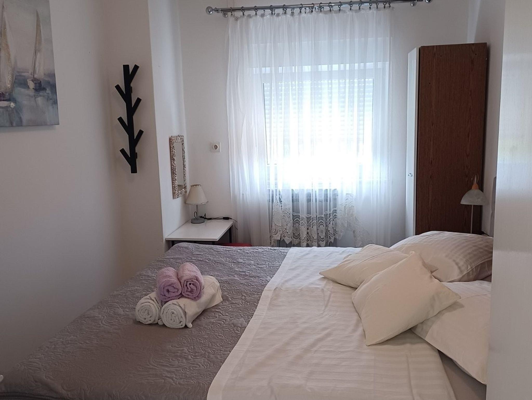 Ferienwohnung bietet Platz für 4 Gäste. Die Betten sind in Schlafzimmern, die es 2 gibt, innerhalb einer Gesamtfläche von 47m2, angeordnet. Die Gäste haben eine eigene Terrasse zur Verfügung, auf der sie in warmen Sommernächten genießen können. Es ist erlaubt, Speisen auf dem Gemeinschafts-Grill vorzubereiten. In der Unterkunftseinheit besteht die Möglichkeit des Mitbringens von Haustieren gegen Aufpreis. IM PREIS INBEGRIFFEN: Kurtaxe, Endreinigung, Klimatisierung, Parkplatz, Internet, Bügeleisen, Bügelbrett, Föhn. VERBINDLICHE ZUSÄTZLICHE KOSTEN: Aufzahlung für Kurzaufenthalte (prozentualer Zuschlag pro Nächtigungsanzahl: 30% - 1, 20% - 2, 10% - 3). UNVERBINDLICHE ZUSÄTZLICHE KOSTEN: Zentralheizung (5,00 € pro Nacht), Wäschewaschen (5,00 € Waschen), Bootsanlegeplatz (5,00 € pro Nacht), Haustiere (5,00 € pro Nacht). Die Verfügbarkeit zusätzlicher Dienstleistungen in Ihrem reservierten Termin und die Preise derselben (falls nicht aufgeführt) müssen im Voraus überprüft werden. Zusätzliche Dienstleistungen die in der Zahlungsaufforderung nicht aufgeführt sind werden direkt beim Vermieter bezahlt, angenommen der Gast nutzt auch diese.