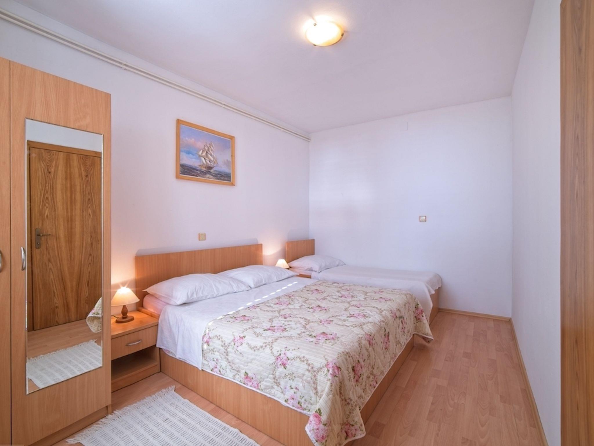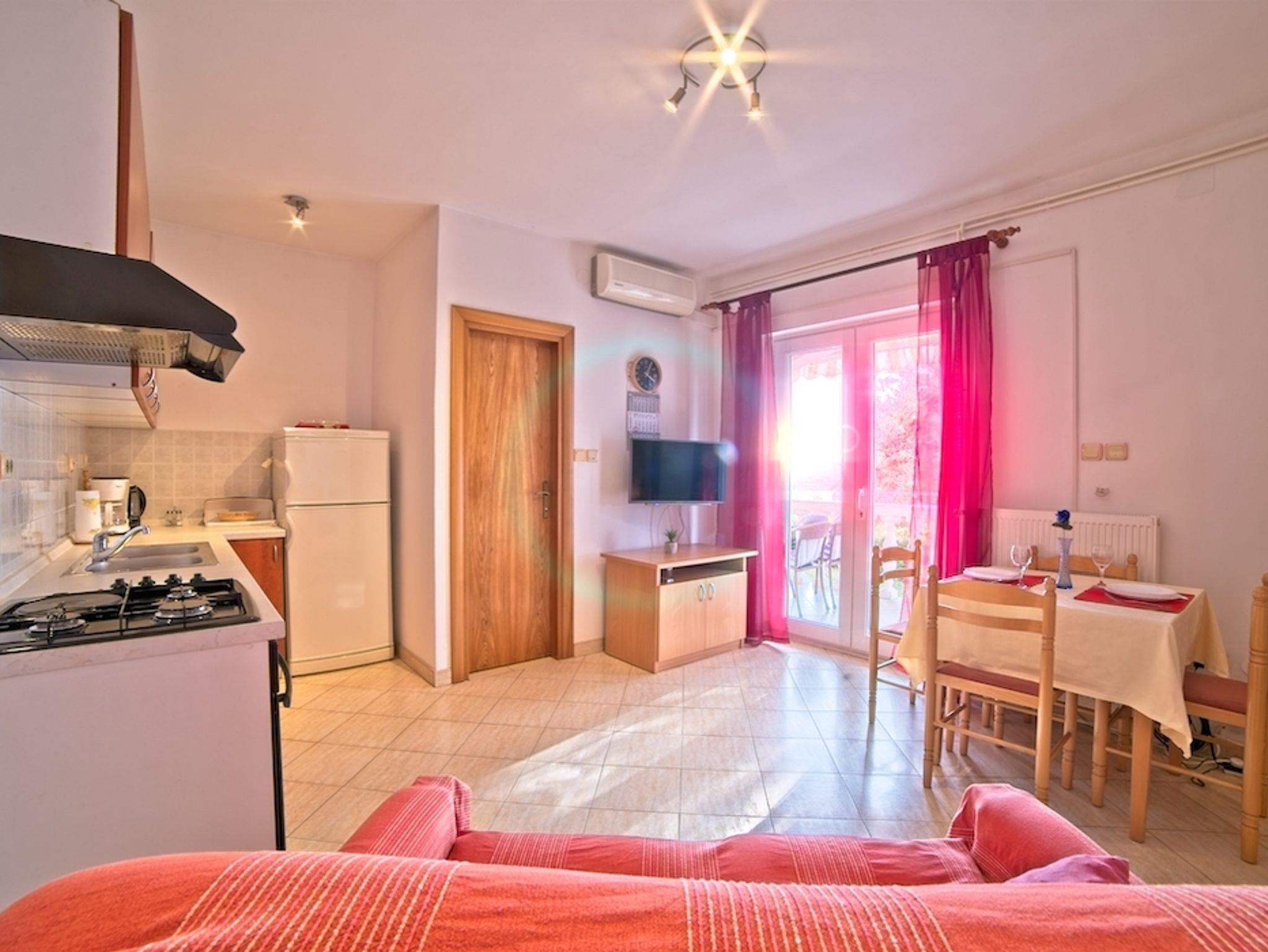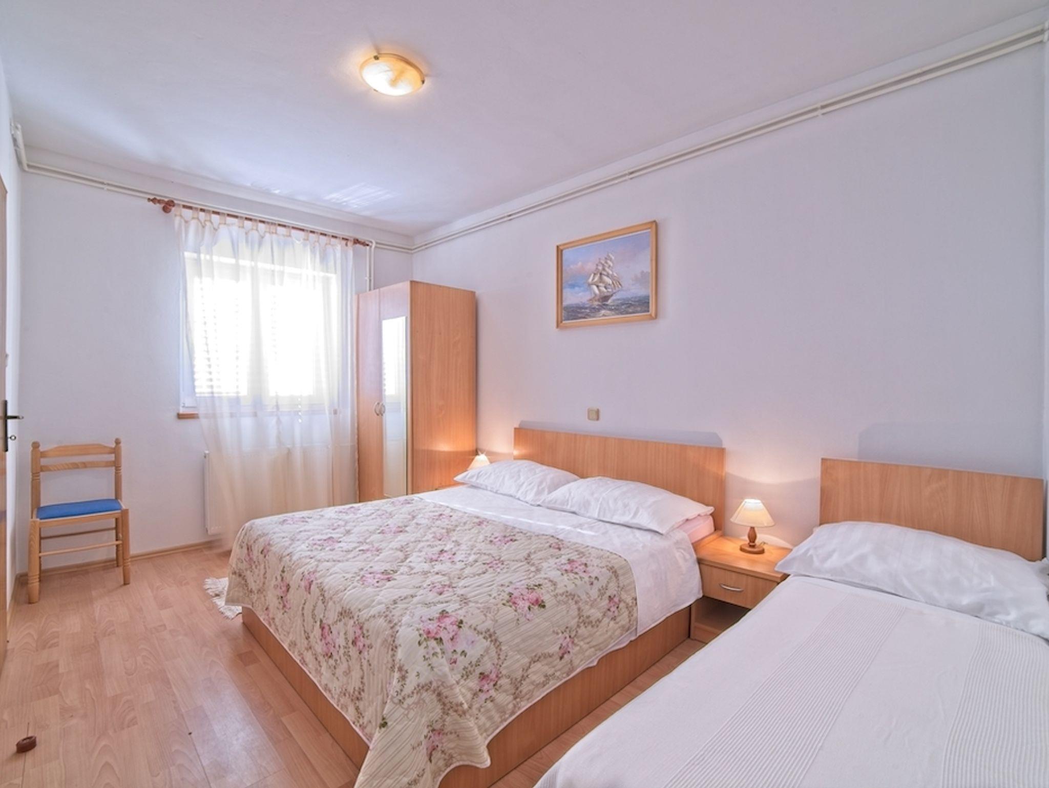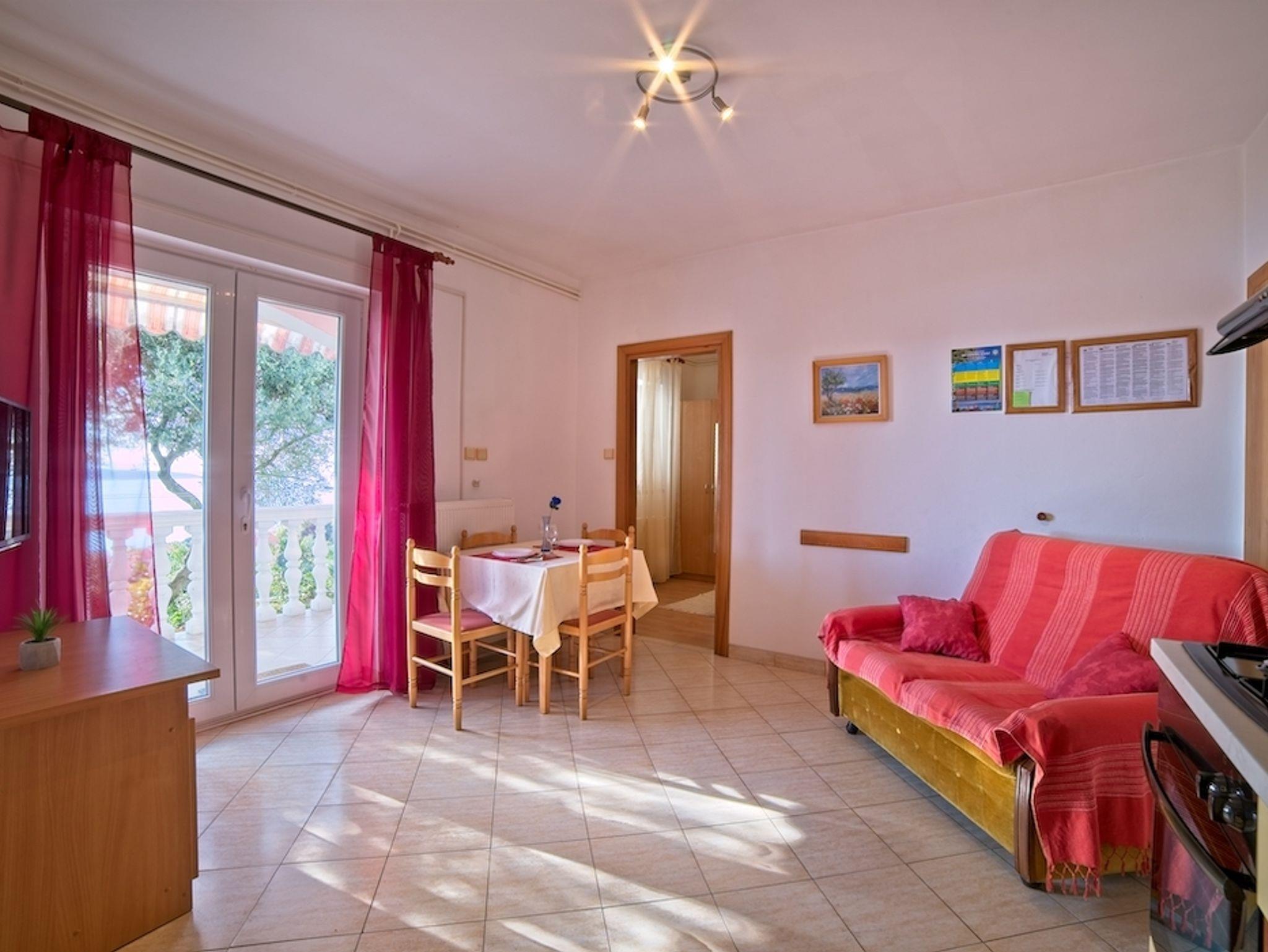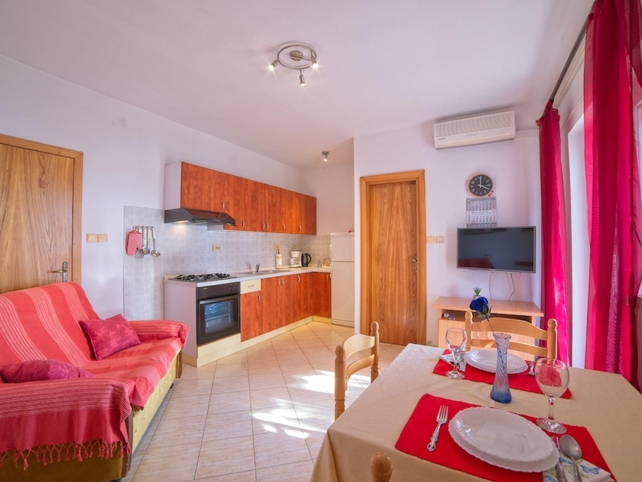 Ferienwohnung bietet Platz für 4 Gäste. Die Betten sind in Schlafzimmern, die es 1 gibt, und in Wohnzimmer, innerhalb einer Gesamtfläche von 30m2, angeordnet. Die Gäste haben einen eigenen Balkon zur Verfügung, auf der sie in warmen Sommernächten genießen können. Das Apartment bietet Meerblick. Es ist erlaubt, Speisen auf dem Gemeinschafts-Grill vorzubereiten. In der Unterkunftseinheit besteht die Möglichkeit des Mitbringens von Haustieren gegen Aufpreis. IM PREIS INBEGRIFFEN: Kurtaxe, Endreinigung, Klimatisierung, Parkplatz, Internet, Föhn. VERBINDLICHE ZUSÄTZLICHE KOSTEN: Aufzahlung für Kurzaufenthalte (prozentualer Zuschlag pro Nächtigungsanzahl: 30% - 1, 20% - 2, 10% - 3). UNVERBINDLICHE ZUSÄTZLICHE KOSTEN: Wäschewaschen (5,00 € Waschen), Haustiere (8,00 € pro Nacht). Die Verfügbarkeit zusätzlicher Dienstleistungen in Ihrem reservierten Termin und die Preise derselben (falls nicht aufgeführt) müssen im Voraus überprüft werden. Zusätzliche Dienstleistungen die in der Zahlungsaufforderung nicht aufgeführt sind werden direkt beim Vermieter bezahlt, angenommen der Gast nutzt auch diese. Ermäßigung auf den Grundpreis: Gratistag 14=13 (bei einem Aufenthalt von 14 Tagen oder mehr erhalten Sie einen Gratistag für den Aufenthalt bis 31.12.26).