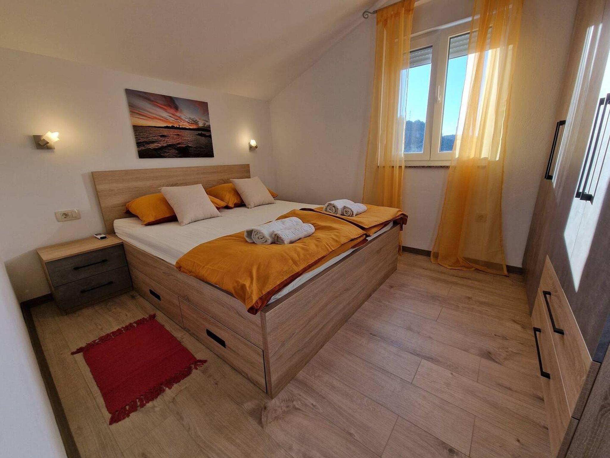 Ferienwohnung bietet Platz für 6 Gäste. Die Betten sind in Schlafzimmern, die es 3 gibt, innerhalb einer Gesamtfläche von 80m2, angeordnet. Die Gäste haben eine eigene Terrasse zur Verfügung, auf der sie in warmen Sommernächten genießen können. Es ist erlaubt, Speisen auf dem Gemeinschafts-Grill vorzubereiten. IM PREIS INBEGRIFFEN: Kurtaxe, Endreinigung, Klimatisierung, Parkplatz, Internet, Bügeleisen, Bügelbrett, Föhn. Die Verfügbarkeit zusätzlicher Dienstleistungen in Ihrem reservierten Termin und die Preise derselben (falls nicht aufgeführt) müssen im Voraus überprüft werden. Zusätzliche Dienstleistungen die in der Zahlungsaufforderung nicht aufgeführt sind werden direkt beim Vermieter bezahlt, angenommen der Gast nutzt auch diese. Ermäßigung auf den Grundpreis: Gratistag 14=13 (bei einem Aufenthalt von 14 Tagen oder mehr erhalten Sie einen Gratistag für den Aufenthalt bis 31.12.26).