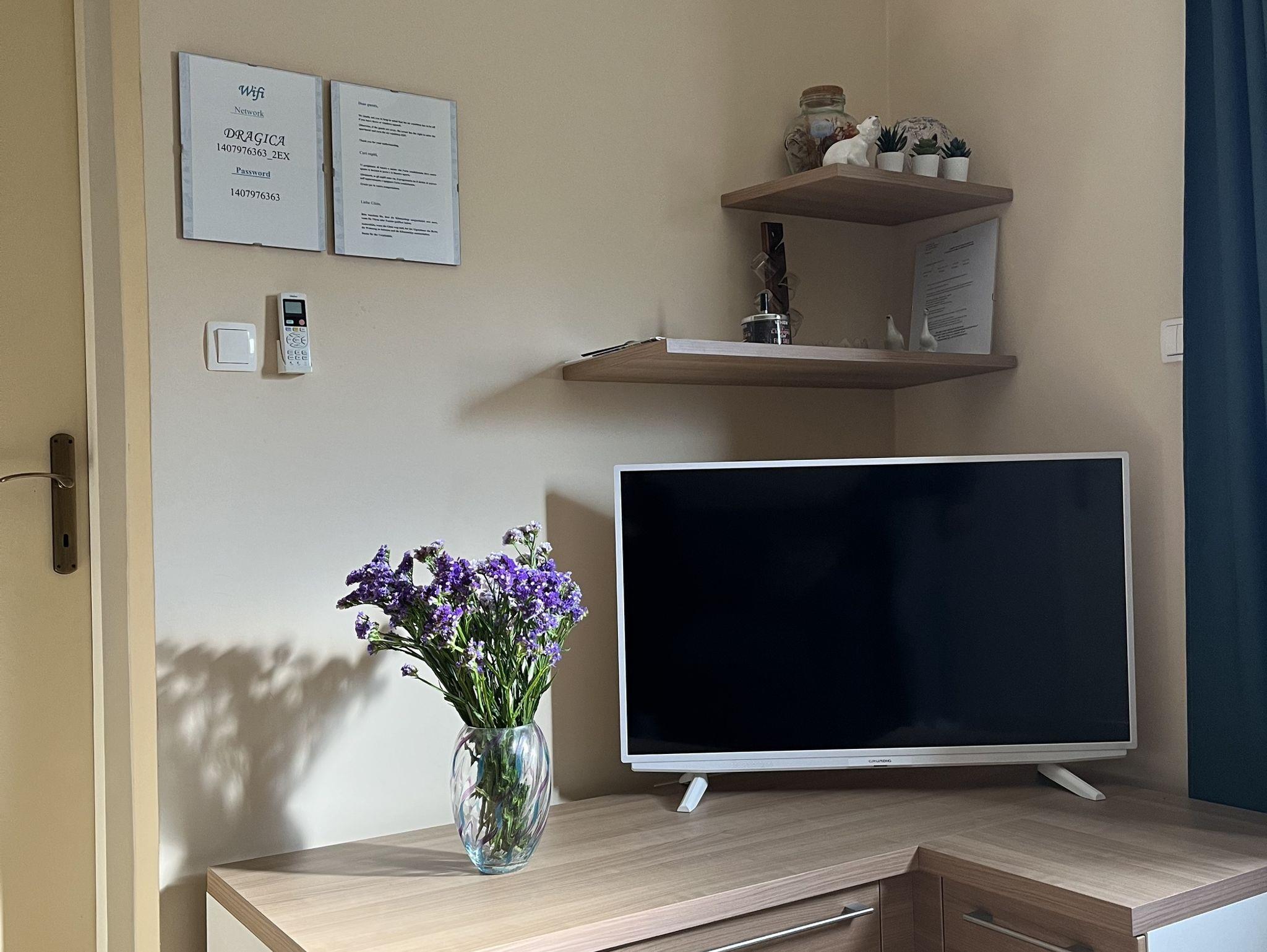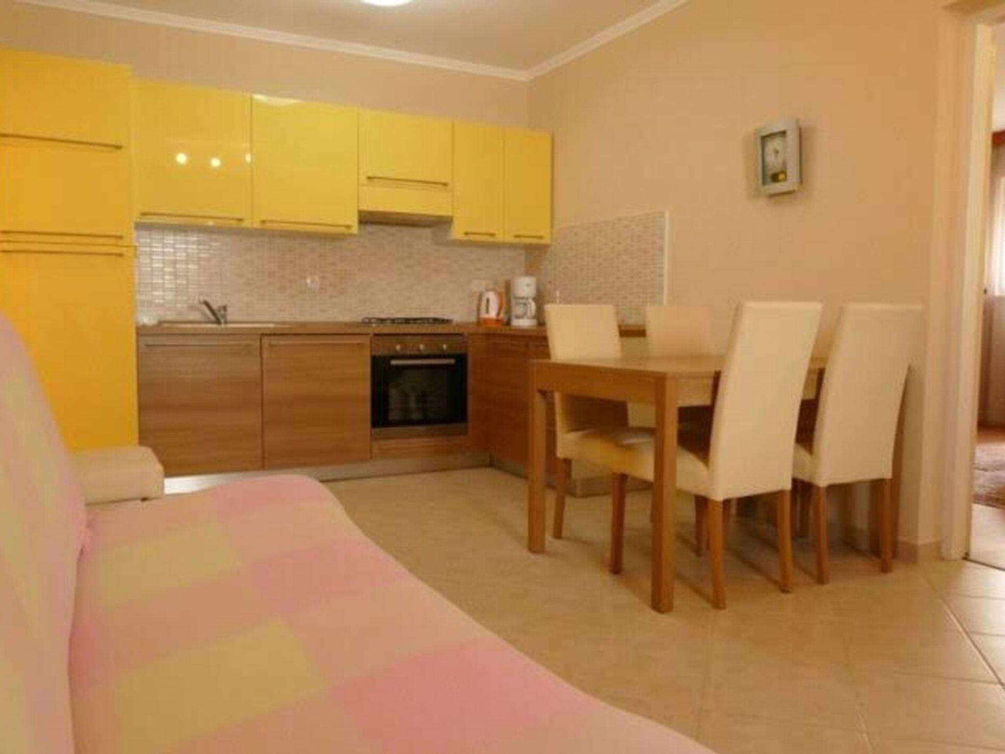 Ferienwohnung bietet Platz für 3 Gäste. Die Betten sind in Schlafzimmern, die es 2 gibt, innerhalb einer Gesamtfläche von 42m2, angeordnet. Die Gäste haben eine eigene Terrasse zur Verfügung, auf der sie in warmen Sommernächten genießen können. Es ist erlaubt, Speisen auf dem Gemeinschafts-Grill vorzubereiten. IM PREIS INBEGRIFFEN: Kurtaxe, Endreinigung, Klimatisierung, Parkplatz, Internet, Kinderbett. VERBINDLICHE ZUSÄTZLICHE KOSTEN: Aufzahlung für Kurzaufenthalte (prozentualer Zuschlag pro Nächtigungsanzahl: 30% - 1, 20% - 2, 10% - 3). UNVERBINDLICHE ZUSÄTZLICHE KOSTEN: Frühstück (10,00 €, 50% Nachlass für Kinder zwischen 4 und 12 Jahren, Kinder bis 4 Jahre sind frei.), Bootsanlegeplatz (10,00 € pro Nacht), 1 Bett für Kinder (10,00 € Person/Tag). Die Verfügbarkeit zusätzlicher Dienstleistungen in Ihrem reservierten Termin und die Preise derselben (falls nicht aufgeführt) müssen im Voraus überprüft werden. Zusätzliche Dienstleistungen die in der Zahlungsaufforderung nicht aufgeführt sind werden direkt beim Vermieter bezahlt, angenommen der Gast nutzt auch diese.