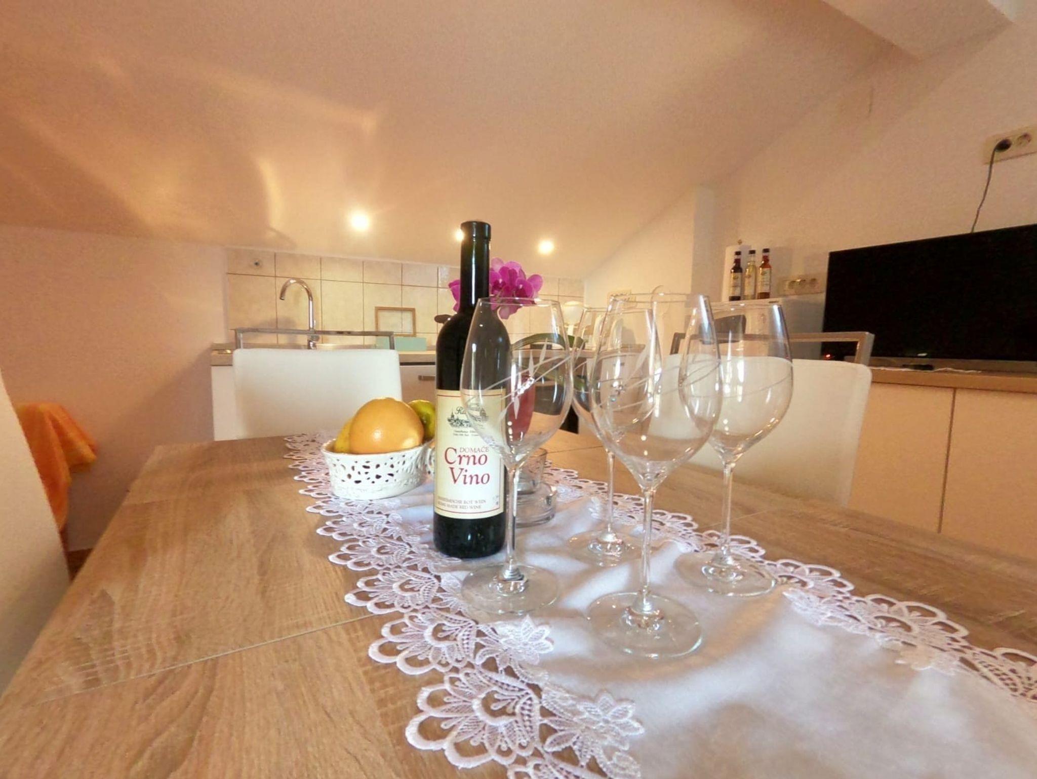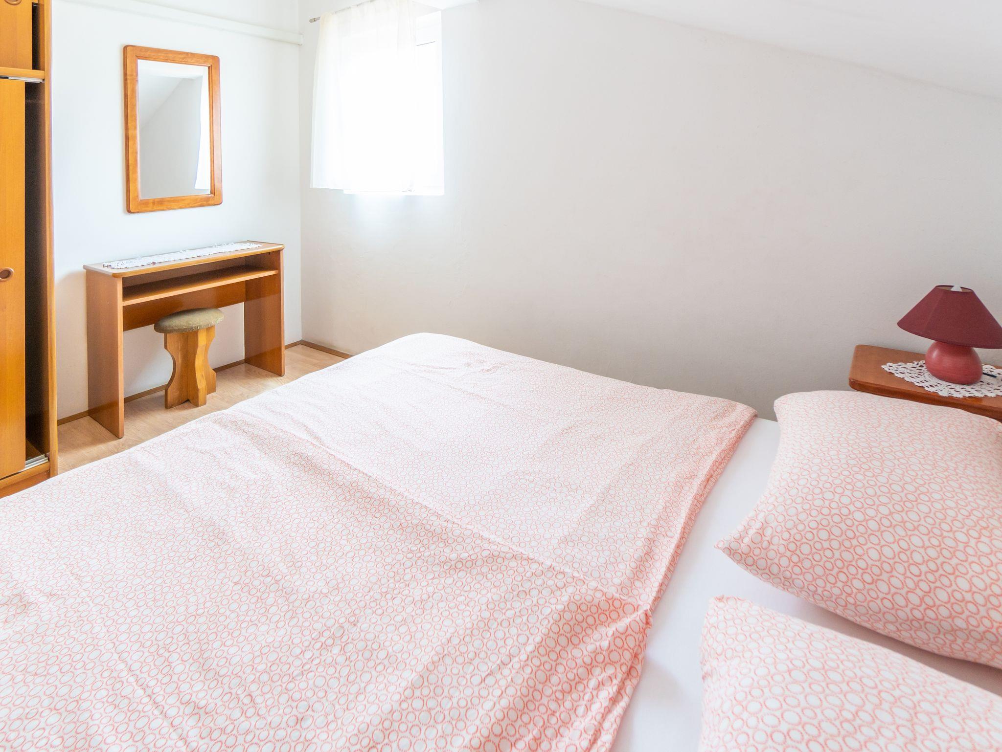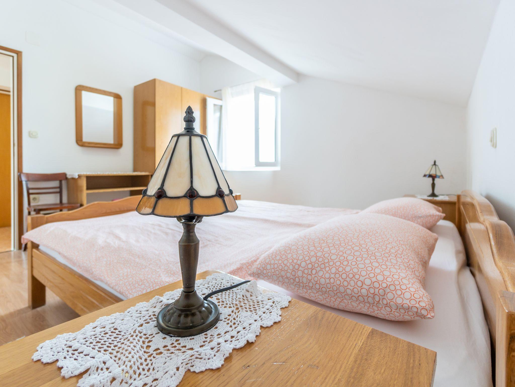 Ferienwohnung bietet Platz für 4 Gäste. Die Betten sind in Schlafzimmern, die es 2 gibt, innerhalb einer Gesamtfläche von 42m2, angeordnet. Die Gäste haben eine eigene Terrasse zur Verfügung, auf der sie in warmen Sommernächten genießen können. Das Apartment bietet Meerblick. Es ist erlaubt, Speisen auf dem Gemeinschafts-Grill vorzubereiten. In der Unterkunftseinheit besteht die Möglichkeit des Mitbringens von Haustieren gegen Aufpreis. IM PREIS INBEGRIFFEN: Kurtaxe, Endreinigung, Klimatisierung, Parkplatz, Internet, tragbarer Grill. VERBINDLICHE ZUSÄTZLICHE KOSTEN: Aufzahlung für Kurzaufenthalte (prozentualer Zuschlag pro Nächtigungsanzahl: 30% - 1, 20% - 2, 10% - 3). UNVERBINDLICHE ZUSÄTZLICHE KOSTEN: Frühstück (15,00 €, 50% Nachlass für Kinder zwischen 4 und 12 Jahren, Kinder bis 4 Jahre sind frei.), Bootsanlegeplatz (10,00 € pro Nacht), Haustiere (10,00 € pro Nacht), Zusatzbett (10,00 € pro Nacht). Die Verfügbarkeit zusätzlicher Dienstleistungen in Ihrem reservierten Termin und die Preise derselben (falls nicht aufgeführt) müssen im Voraus überprüft werden. Zusätzliche Dienstleistungen die in der Zahlungsaufforderung nicht aufgeführt sind werden direkt beim Vermieter bezahlt, angenommen der Gast nutzt auch diese.