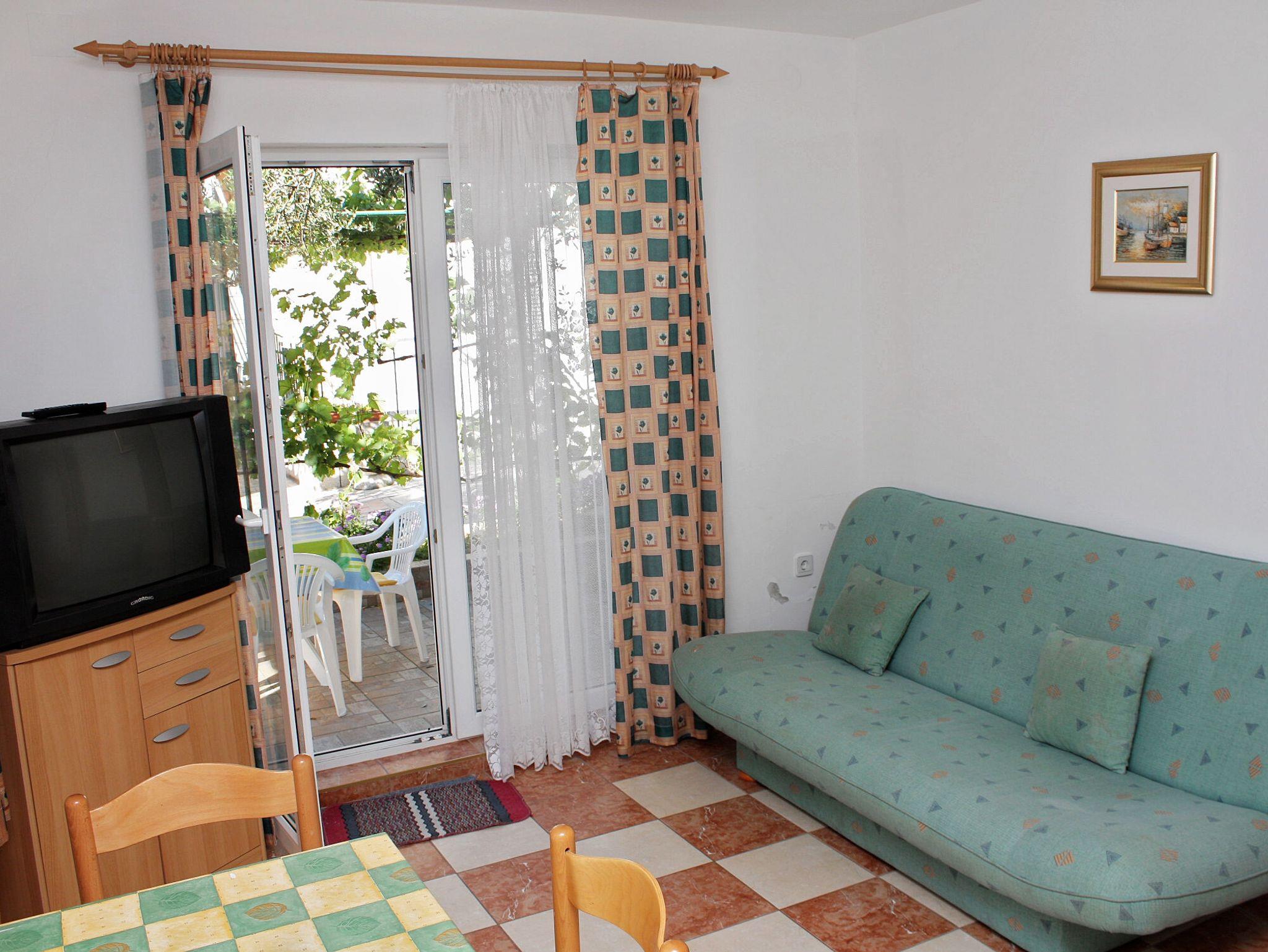 Ferienwohnung bietet Platz für 4 Gäste. Die Betten sind in Schlafzimmern, die es 1 gibt, und in Wohnzimmer, innerhalb einer Gesamtfläche von 29m2, angeordnet. Die Gäste haben eine eigene Terrasse zur Verfügung, auf der sie in warmen Sommernächten genießen können. Es ist erlaubt, Speisen auf dem Gemeinschafts-Grill vorzubereiten. In der Unterkunftseinheit besteht die Möglichkeit des Mitbringens von Haustieren gegen Aufpreis. IM PREIS INBEGRIFFEN: Kurtaxe, Endreinigung, Klimatisierung, Parkplatz, Internet. VERBINDLICHE ZUSÄTZLICHE KOSTEN: Aufzahlung für Kurzaufenthalte (prozentualer Zuschlag pro Nächtigungsanzahl: 30% - 1, 20% - 2, 10% - 3). UNVERBINDLICHE ZUSÄTZLICHE KOSTEN: Wäschewaschen (5,00 € Waschen), Haustiere (5,00 € pro Nacht). Die Verfügbarkeit zusätzlicher Dienstleistungen in Ihrem reservierten Termin und die Preise derselben (falls nicht aufgeführt) müssen im Voraus überprüft werden. Zusätzliche Dienstleistungen die in der Zahlungsaufforderung nicht aufgeführt sind werden direkt beim Vermieter bezahlt, angenommen der Gast nutzt auch diese.