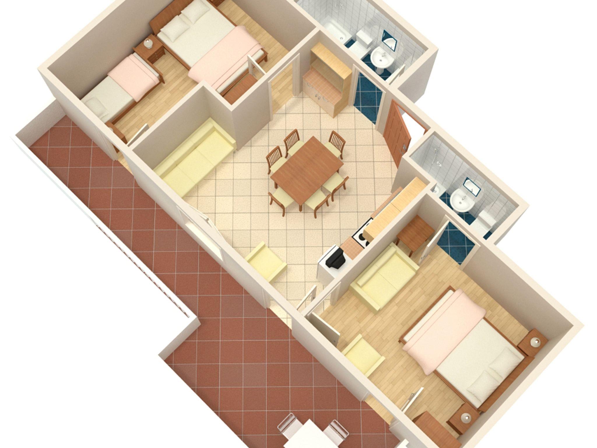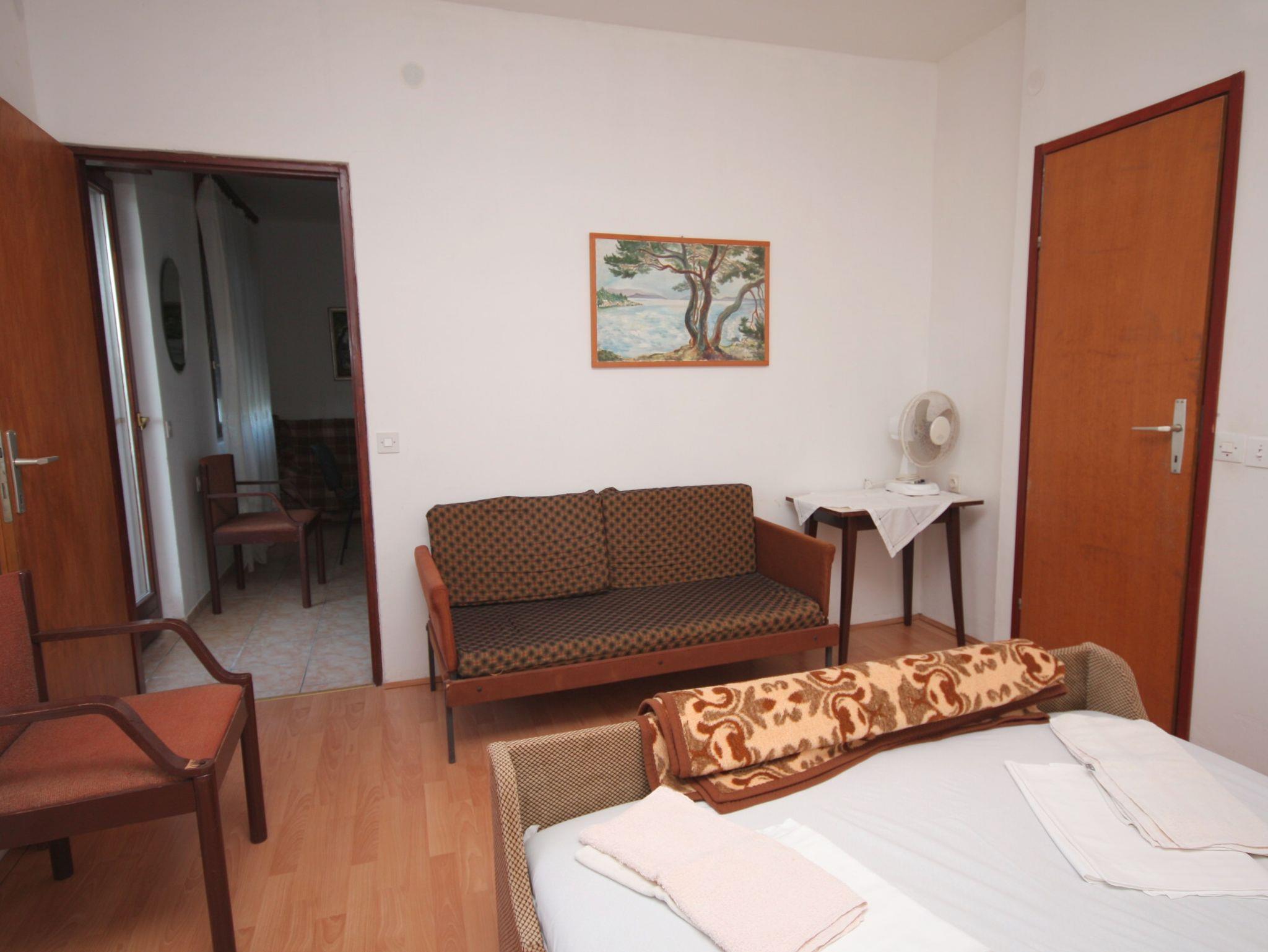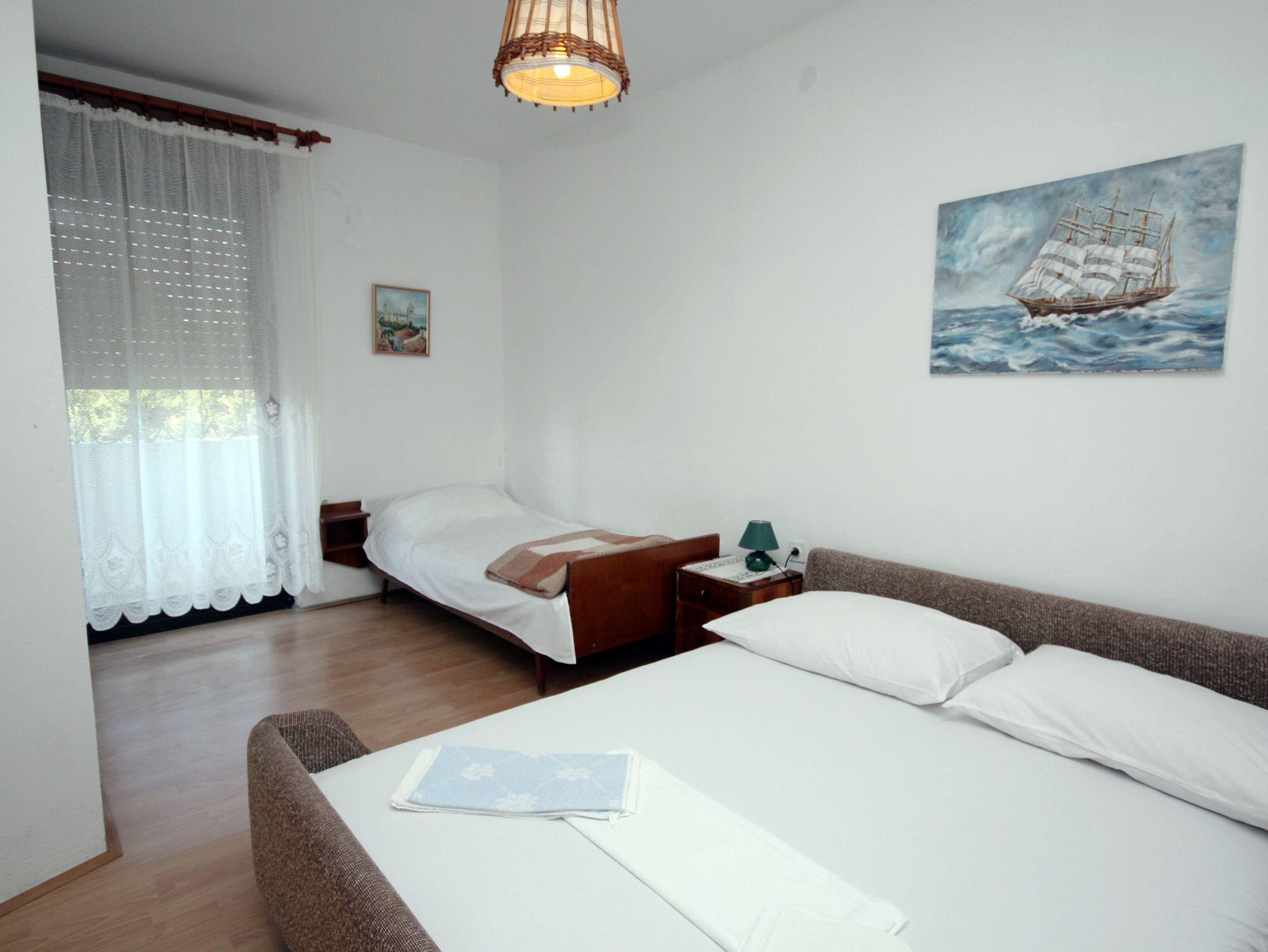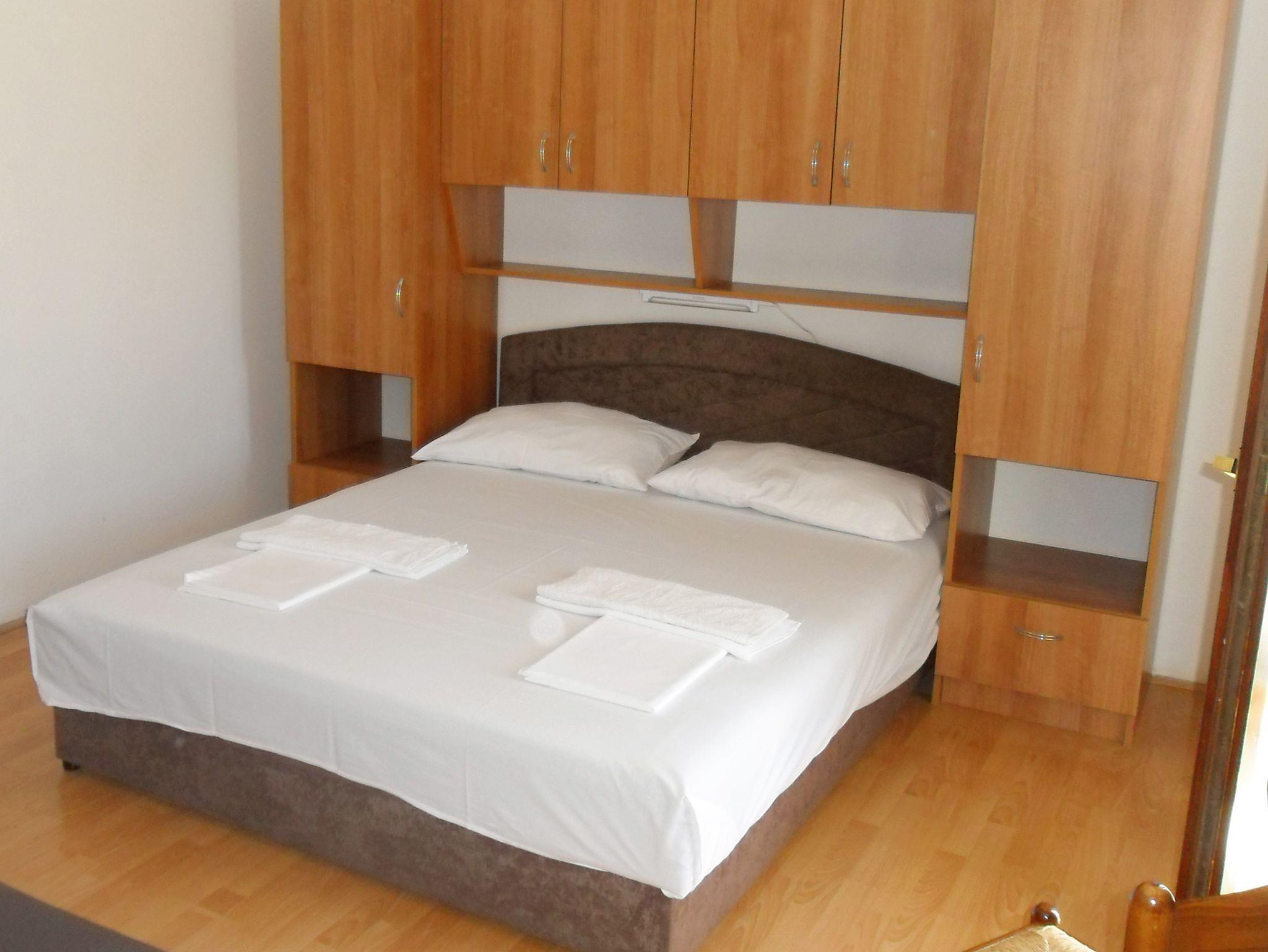 Ferienwohnung bietet Platz für 5 Gäste. Die Betten sind in Schlafzimmern, die es 2 gibt, innerhalb einer Gesamtfläche von 47m2, angeordnet. Die Gäste haben eine eigene Terrasse zur Verfügung, auf der sie in warmen Sommernächten genießen können. Das Apartment bietet Meerblick. In der Unterkunftseinheit besteht die Möglichkeit des Mitbringens von Haustieren gegen Aufpreis. IM PREIS INBEGRIFFEN: Kurtaxe, Endreinigung, Parkplatz, Internet, Föhn. VERBINDLICHE ZUSÄTZLICHE KOSTEN: Aufzahlung für Kurzaufenthalte (prozentualer Zuschlag pro Nächtigungsanzahl: 30% - 1, 20% - 2, 10% - 3). UNVERBINDLICHE ZUSÄTZLICHE KOSTEN: Klimatisierung (7,00 € pro Nacht), Haustiere (15,00 € pro Nacht). Die Verfügbarkeit zusätzlicher Dienstleistungen in Ihrem reservierten Termin und die Preise derselben (falls nicht aufgeführt) müssen im Voraus überprüft werden. Zusätzliche Dienstleistungen die in der Zahlungsaufforderung nicht aufgeführt sind werden direkt beim Vermieter bezahlt, angenommen der Gast nutzt auch diese.