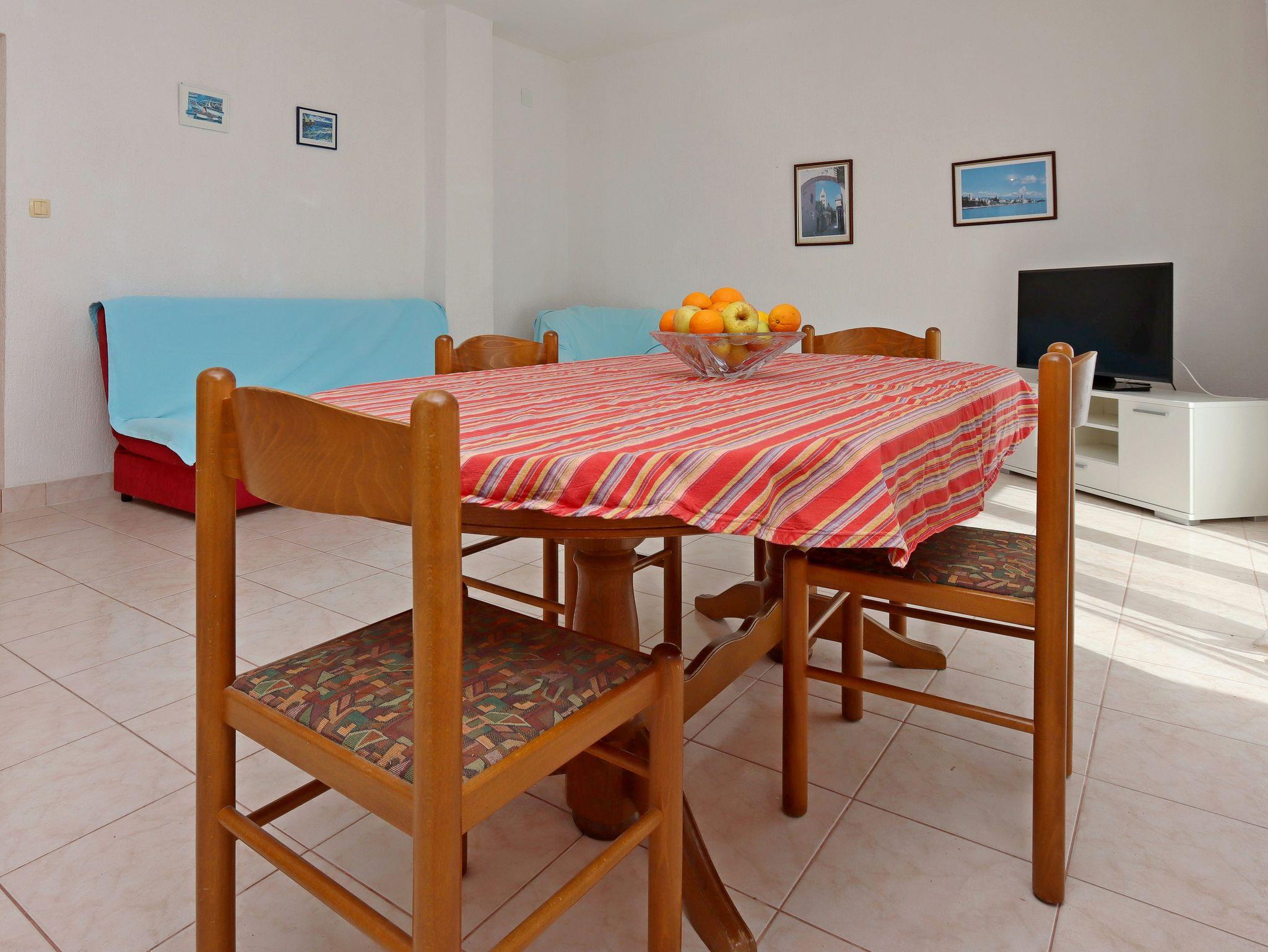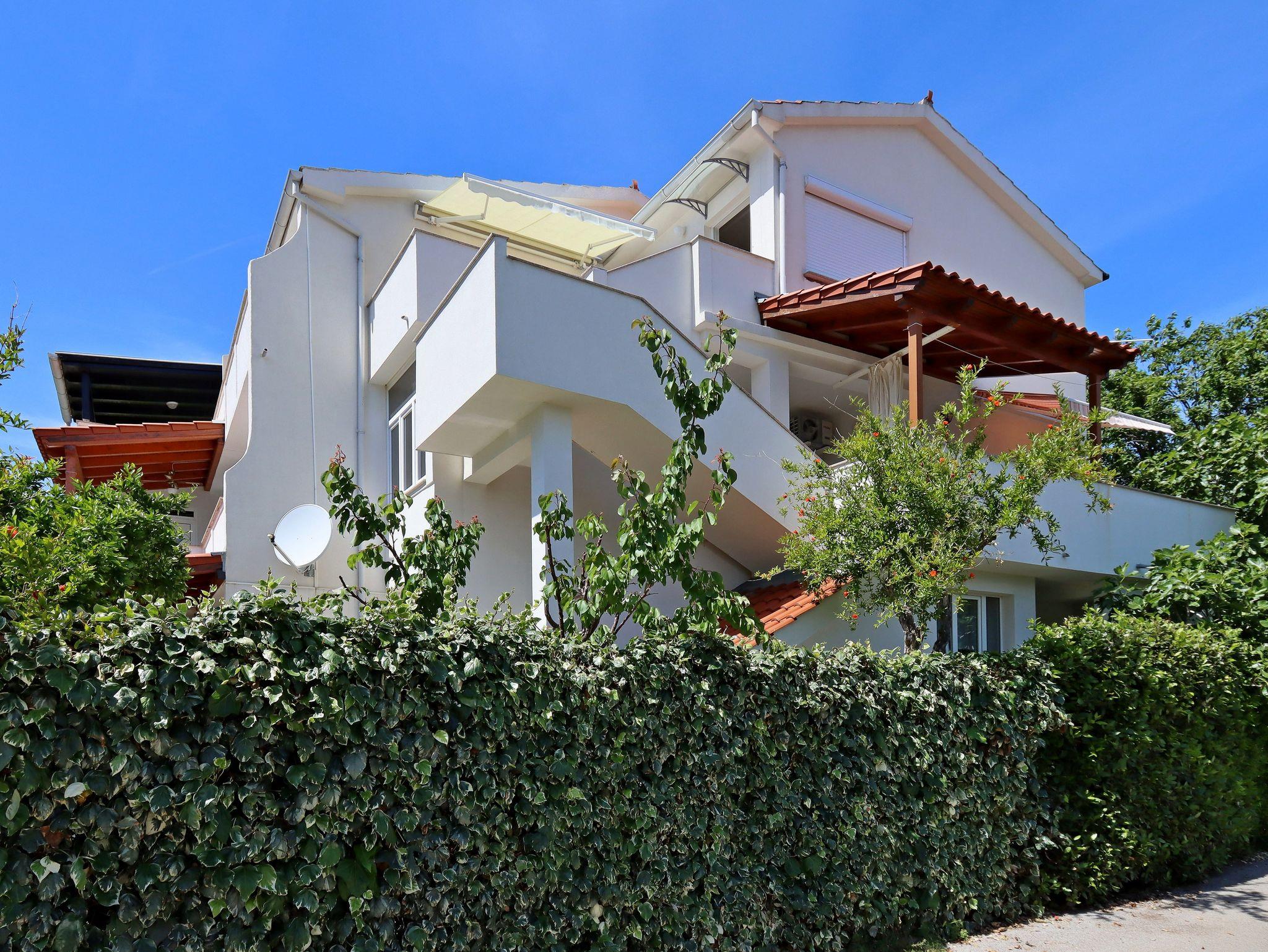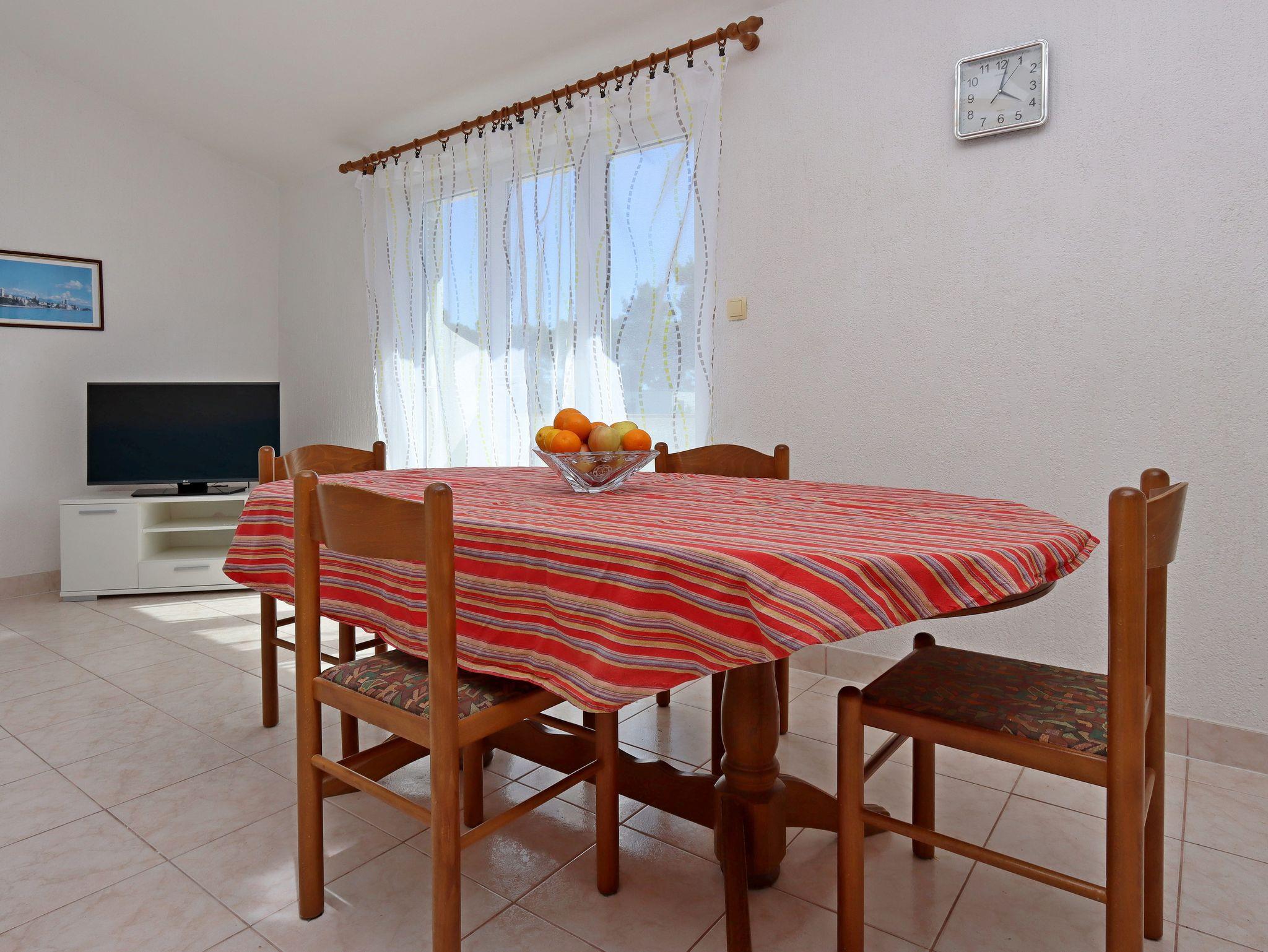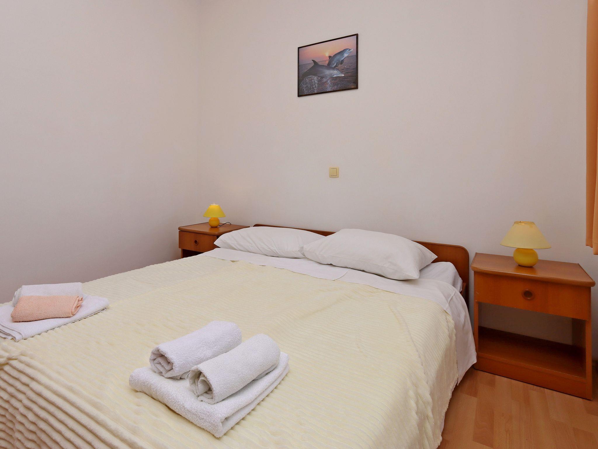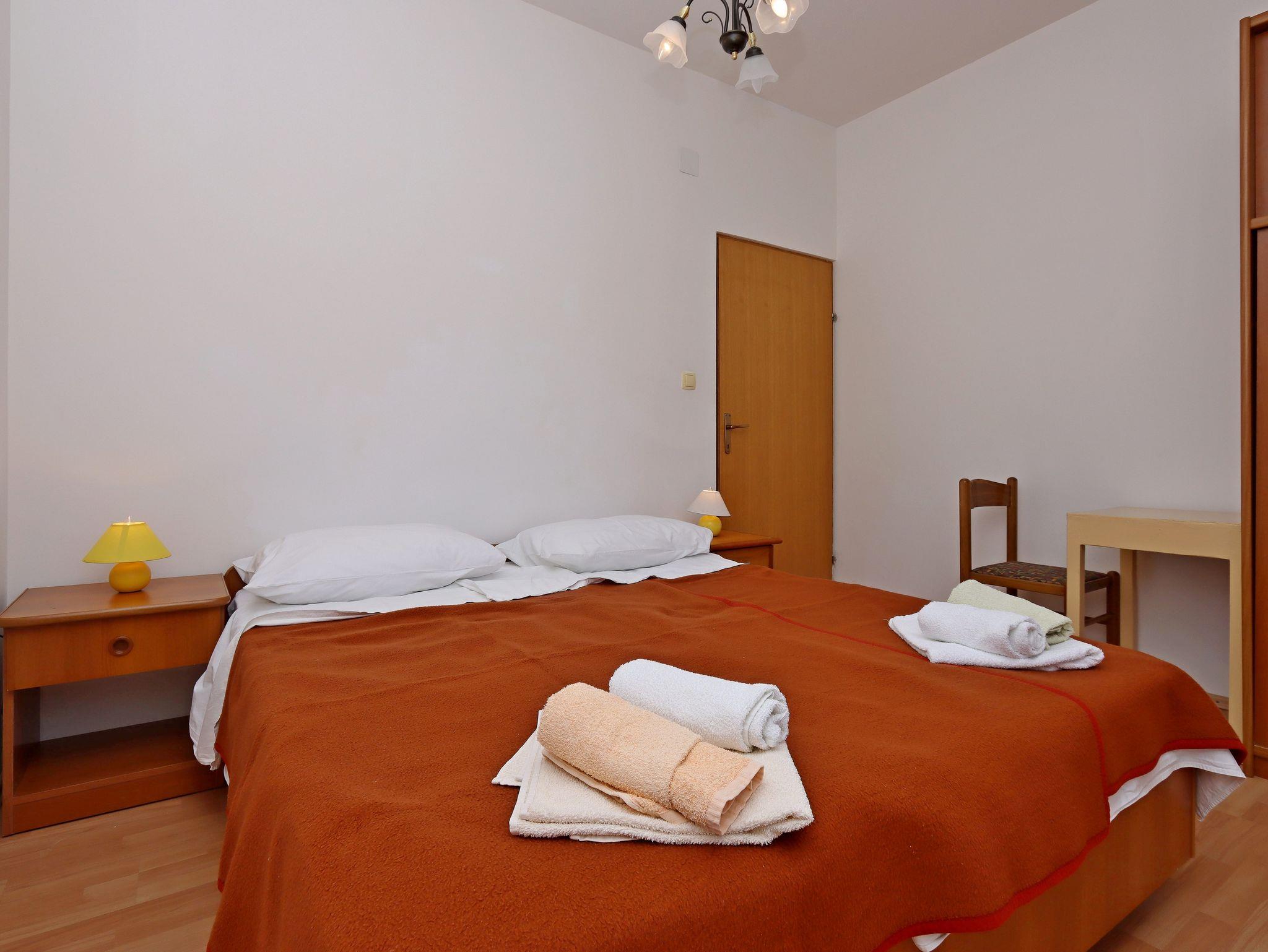 Ferienwohnung bietet Platz für 4 Gäste. Die Betten sind in Schlafzimmern, die es 2 gibt, innerhalb einer Gesamtfläche von 62m2, angeordnet. Die Gäste haben eine eigene Terrasse zur Verfügung, auf der sie in warmen Sommernächten genießen können. Das Apartment bietet Meerblick. Es ist erlaubt, Speisen auf dem Gemeinschafts-Grill vorzubereiten. IM PREIS INBEGRIFFEN: Kurtaxe, Endreinigung, Klimatisierung, Parkplatz, Internet, Kinderbett, Bügeleisen, Bügelbrett, Föhn. VERBINDLICHE ZUSÄTZLICHE KOSTEN: Aufzahlung für Kurzaufenthalte (prozentualer Zuschlag pro Nächtigungsanzahl: 30% - 1, 20% - 2, 10% - 3). UNVERBINDLICHE ZUSÄTZLICHE KOSTEN: Bootsanlegeplatz (10,00 € pro Nacht), Zusatzbett (15,00 € pro Nacht). Die Verfügbarkeit zusätzlicher Dienstleistungen in Ihrem reservierten Termin und die Preise derselben (falls nicht aufgeführt) müssen im Voraus überprüft werden. Zusätzliche Dienstleistungen die in der Zahlungsaufforderung nicht aufgeführt sind werden direkt beim Vermieter bezahlt, angenommen der Gast nutzt auch diese.