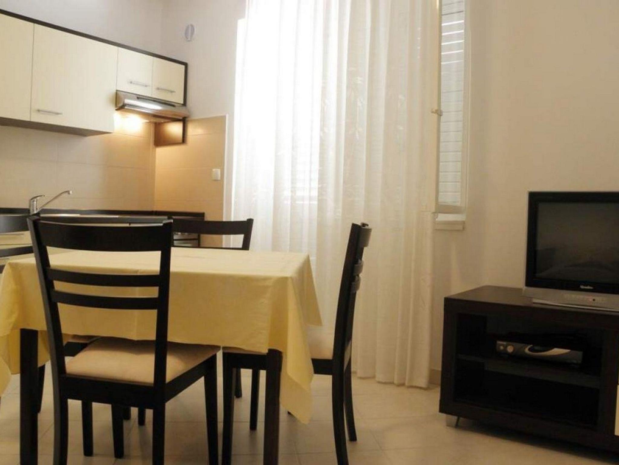 Ferienwohnung bietet Platz für 3 Gäste. Die Betten sind in Schlafzimmern, die es 1 gibt, und in Wohnzimmer, innerhalb einer Gesamtfläche von 30m2, angeordnet. Die Gäste haben eine eigene Terrasse zur Verfügung, auf der sie in warmen Sommernächten genießen können. Das Apartment bietet Meerblick. Es ist erlaubt, Speisen auf dem Gemeinschafts-Grill vorzubereiten. IM PREIS INBEGRIFFEN: Kurtaxe, Endreinigung, Klimatisierung, Parkplatz, Internet. VERBINDLICHE ZUSÄTZLICHE KOSTEN: Aufzahlung für Kurzaufenthalte (prozentualer Zuschlag pro Nächtigungsanzahl: 30% - 1, 20% - 2, 10% - 3). UNVERBINDLICHE ZUSÄTZLICHE KOSTEN: Bootsanlegeplatz (12,00 € pro Nacht). Die Verfügbarkeit zusätzlicher Dienstleistungen in Ihrem reservierten Termin und die Preise derselben (falls nicht aufgeführt) müssen im Voraus überprüft werden. Zusätzliche Dienstleistungen die in der Zahlungsaufforderung nicht aufgeführt sind werden direkt beim Vermieter bezahlt, angenommen der Gast nutzt auch diese.