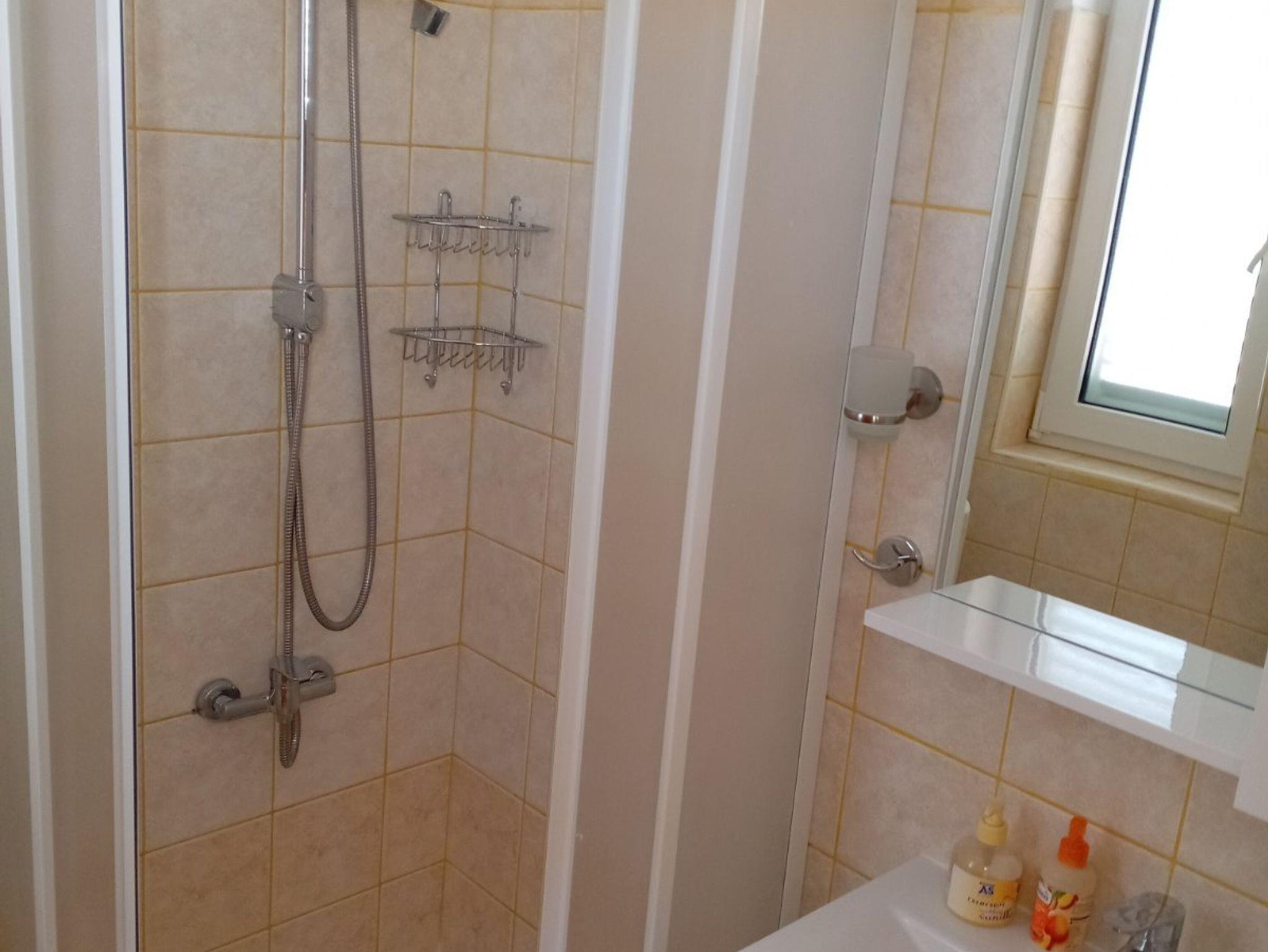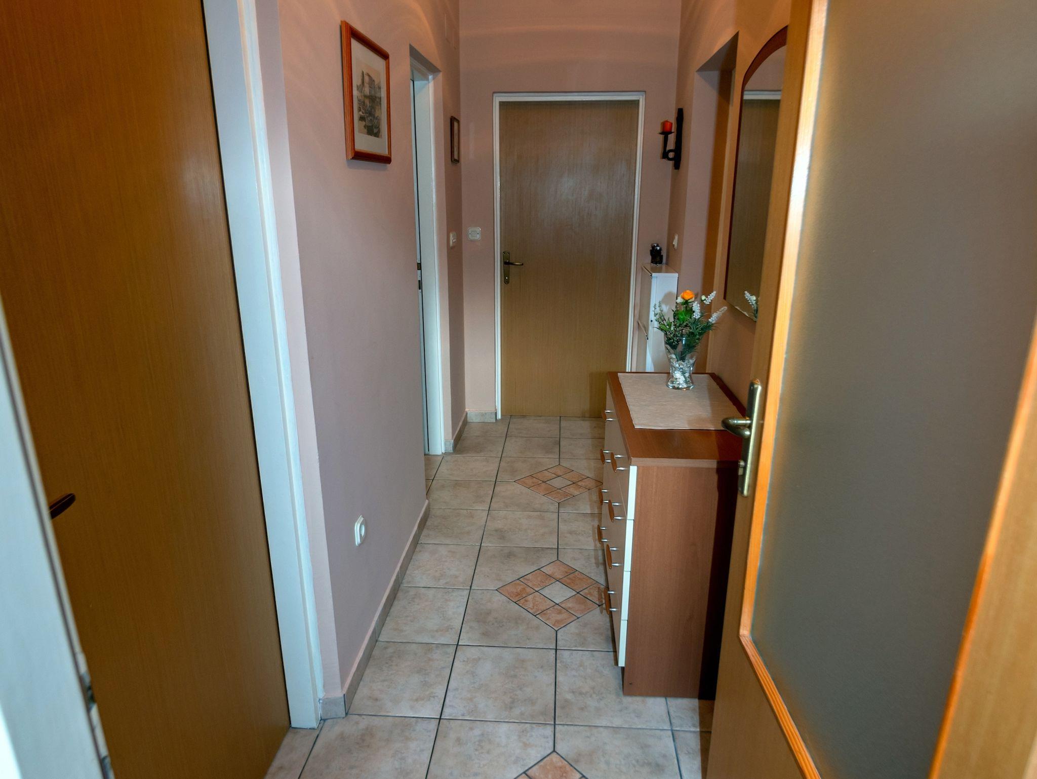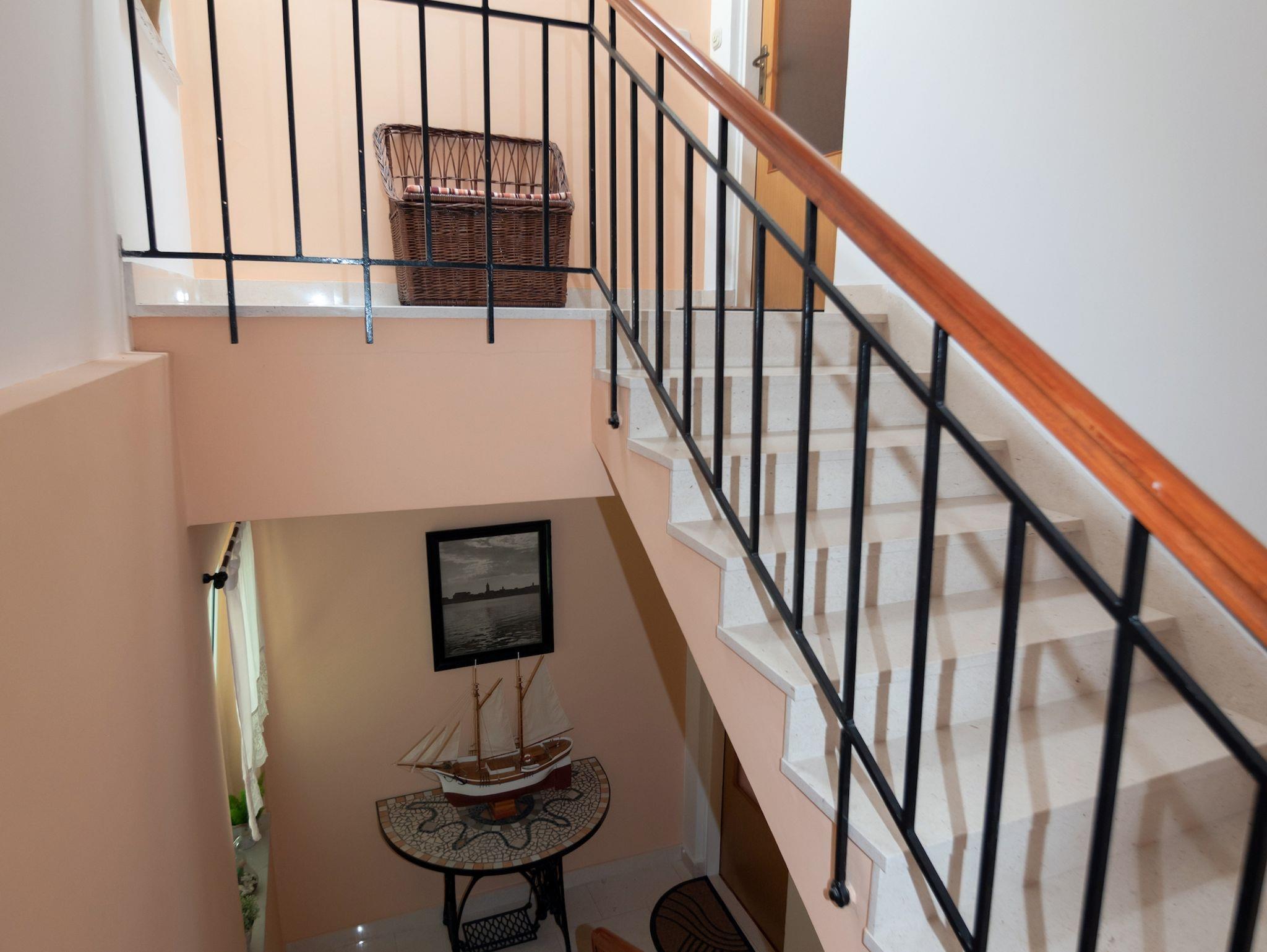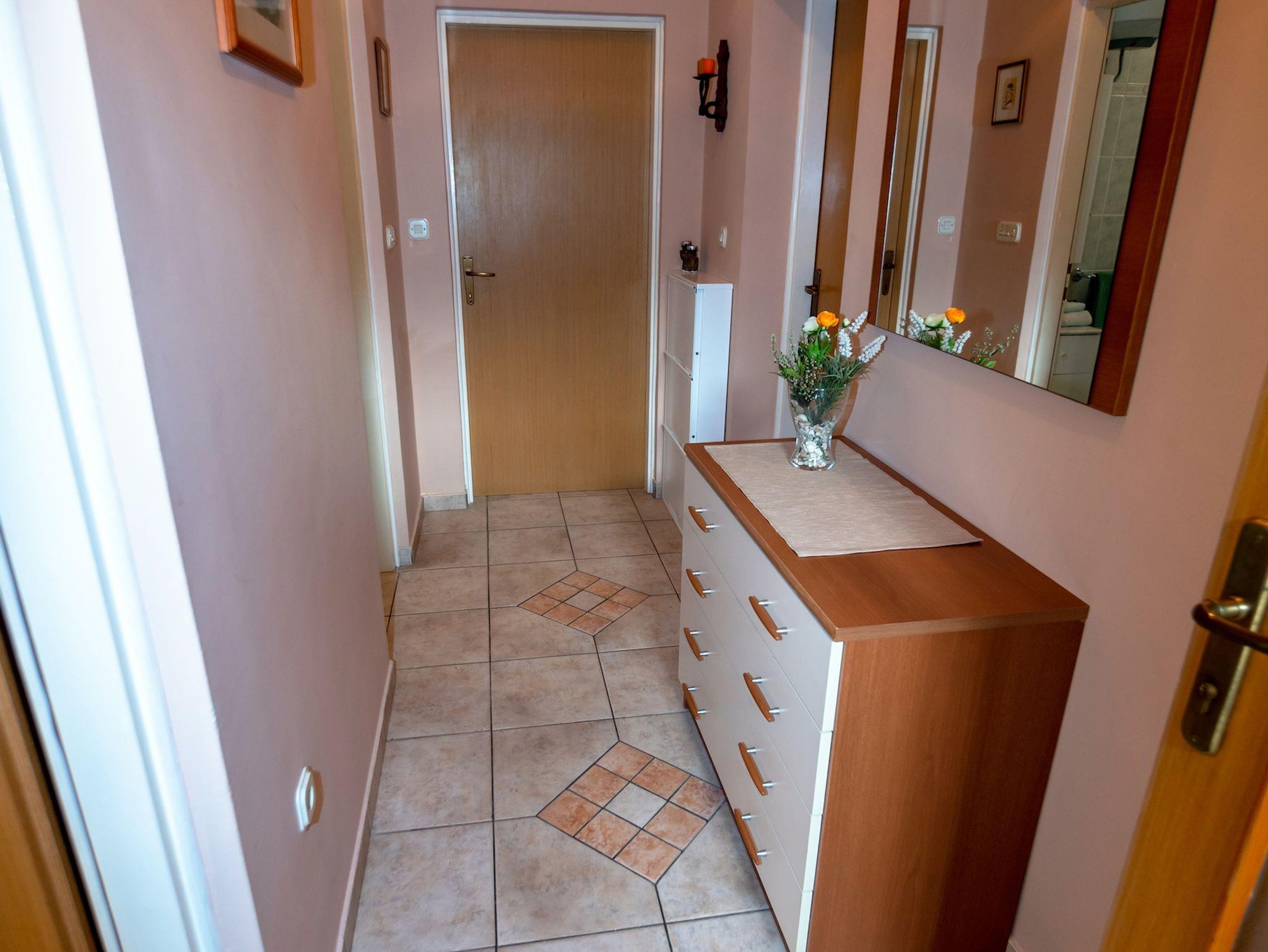 Ferienwohnung bietet Platz für 5 Gäste. Die Betten sind in Schlafzimmern, die es 2 gibt, und in Wohnzimmer, innerhalb einer Gesamtfläche von 53m2, angeordnet. Die Gäste haben eine eigene Terrasse zur Verfügung, auf der sie in warmen Sommernächten genießen können. Es ist erlaubt, Speisen auf dem Gemeinschafts-Grill vorzubereiten. IM PREIS INBEGRIFFEN: Kurtaxe, Endreinigung, Klimatisierung, Parkplatz, Internet, Kinderbett, Bügeleisen, Bügelbrett, Föhn, Sonnenschirm, Liegestühle. VERBINDLICHE ZUSÄTZLICHE KOSTEN: Aufzahlung für Kurzaufenthalte (prozentualer Zuschlag pro Nächtigungsanzahl: 30% - 1, 20% - 2, 10% - 3). UNVERBINDLICHE ZUSÄTZLICHE KOSTEN: Wäschewaschen (5,00 € Waschen). Die Verfügbarkeit zusätzlicher Dienstleistungen in Ihrem reservierten Termin und die Preise derselben (falls nicht aufgeführt) müssen im Voraus überprüft werden. Zusätzliche Dienstleistungen die in der Zahlungsaufforderung nicht aufgeführt sind werden direkt beim Vermieter bezahlt, angenommen der Gast nutzt auch diese.