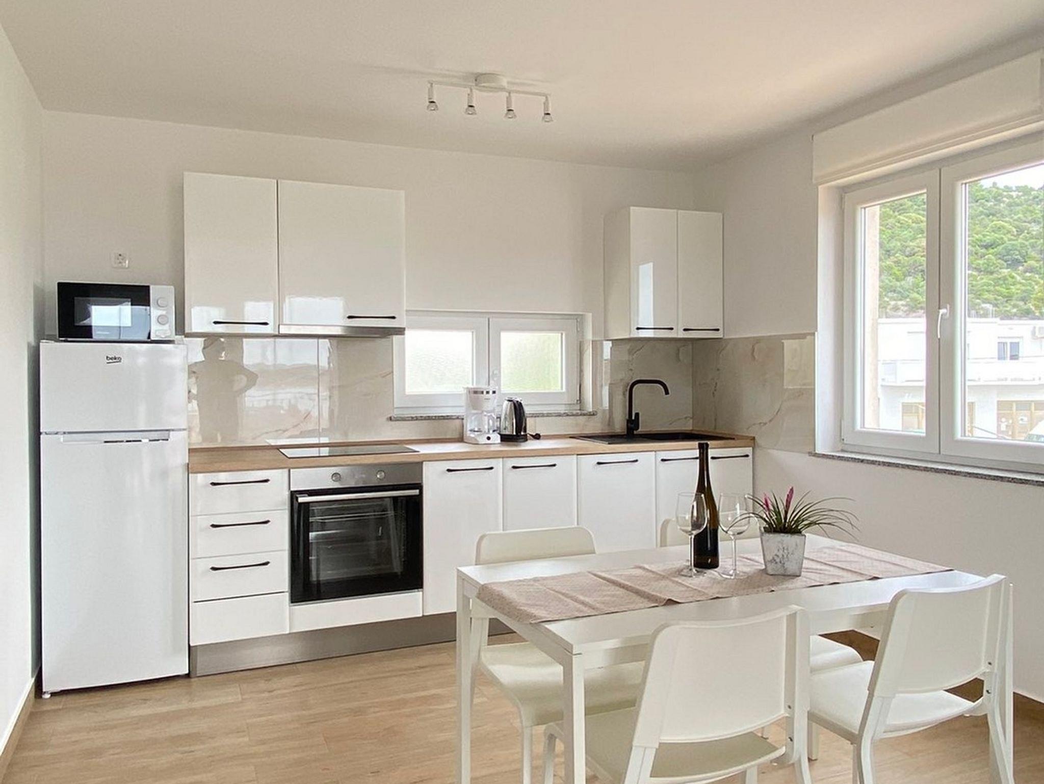 Ferienwohnung bietet Platz für 4 Gäste. Die Betten sind in Schlafzimmern, die es 1 gibt, und in Wohnzimmer, innerhalb einer Gesamtfläche von 47m2, angeordnet. Die Gäste haben eine eigene Terrasse zur Verfügung, auf der sie in warmen Sommernächten genießen können. Das Apartment bietet Meerblick. In der Unterkunftseinheit besteht die Möglichkeit des Mitbringens von Haustieren gegen Aufpreis. IM PREIS INBEGRIFFEN: Kurtaxe, Endreinigung, Klimatisierung, Parkplatz, Internet, Föhn. VERBINDLICHE ZUSÄTZLICHE KOSTEN: Aufzahlung für Kurzaufenthalte (prozentualer Zuschlag pro Nächtigungsanzahl: 30% - 1, 20% - 2, 10% - 3). UNVERBINDLICHE ZUSÄTZLICHE KOSTEN: Haustiere (5,00 € pro Nacht). Die Verfügbarkeit zusätzlicher Dienstleistungen in Ihrem reservierten Termin und die Preise derselben (falls nicht aufgeführt) müssen im Voraus überprüft werden. Zusätzliche Dienstleistungen die in der Zahlungsaufforderung nicht aufgeführt sind werden direkt beim Vermieter bezahlt, angenommen der Gast nutzt auch diese. Ermäßigung auf den Grundpreis: Gratistag 14=13 (bei einem Aufenthalt von 14 Tagen oder mehr erhalten Sie einen Gratistag für den Aufenthalt bis 31.12.26).