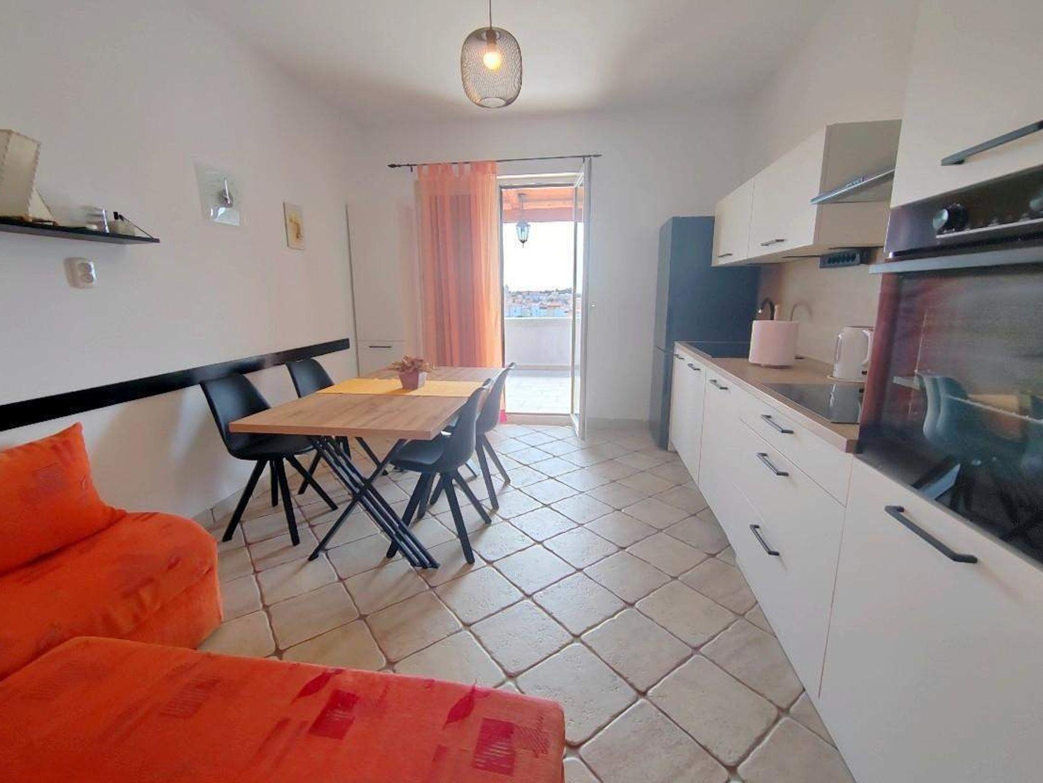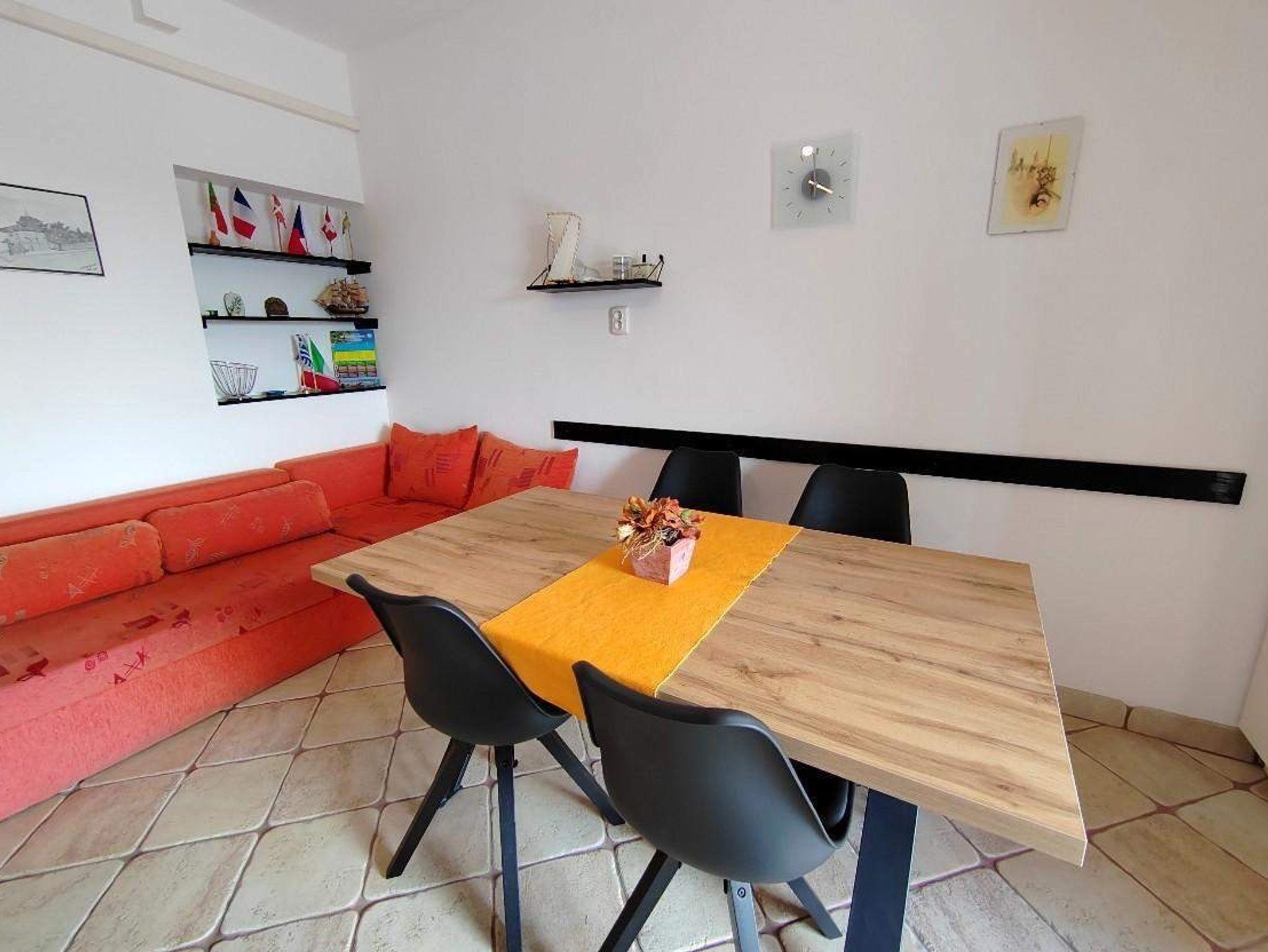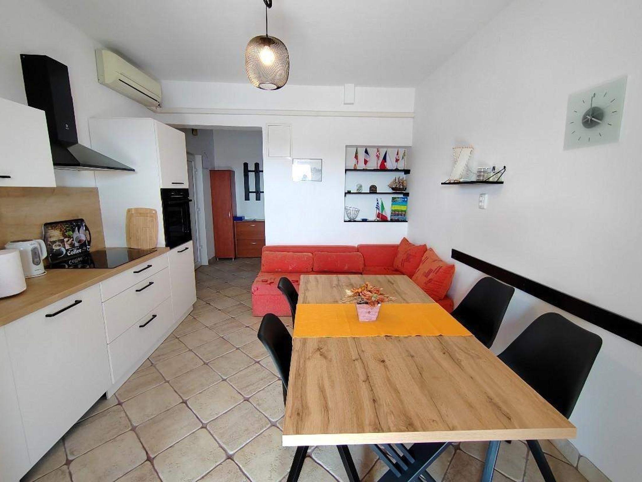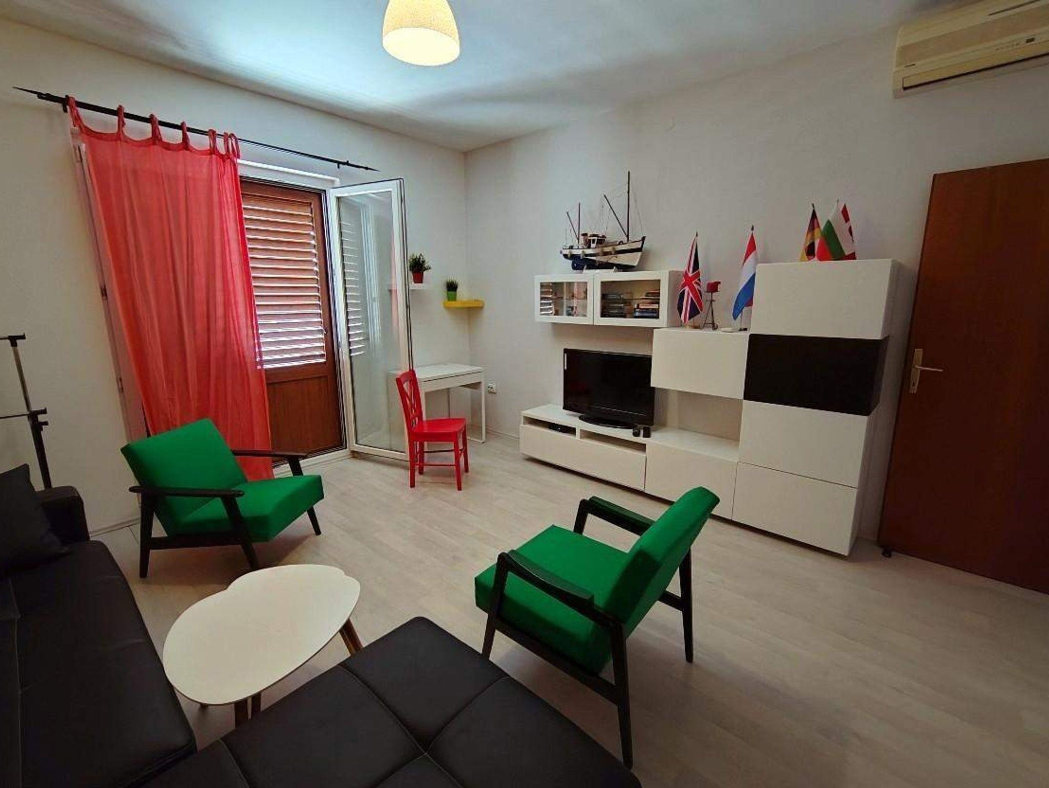 Ferienwohnung bietet Platz für 6 Gäste. Die Betten sind in Schlafzimmern, die es 2 gibt, und in Wohnzimmer, innerhalb einer Gesamtfläche von 71m2, angeordnet. Die Gäste haben eine eigene Terrasse zur Verfügung, auf der sie in warmen Sommernächten genießen können. Das Apartment bietet Meerblick. Es ist erlaubt, Speisen auf dem Gemeinschafts-Grill vorzubereiten. IM PREIS INBEGRIFFEN: Kurtaxe, Endreinigung, Klimatisierung, Parkplatz, Internet. VERBINDLICHE ZUSÄTZLICHE KOSTEN: Aufzahlung für Kurzaufenthalte (prozentualer Zuschlag pro Nächtigungsanzahl: 30% - 1, 20% - 2, 10% - 3). Die Verfügbarkeit zusätzlicher Dienstleistungen in Ihrem reservierten Termin und die Preise derselben (falls nicht aufgeführt) müssen im Voraus überprüft werden. Zusätzliche Dienstleistungen die in der Zahlungsaufforderung nicht aufgeführt sind werden direkt beim Vermieter bezahlt, angenommen der Gast nutzt auch diese.