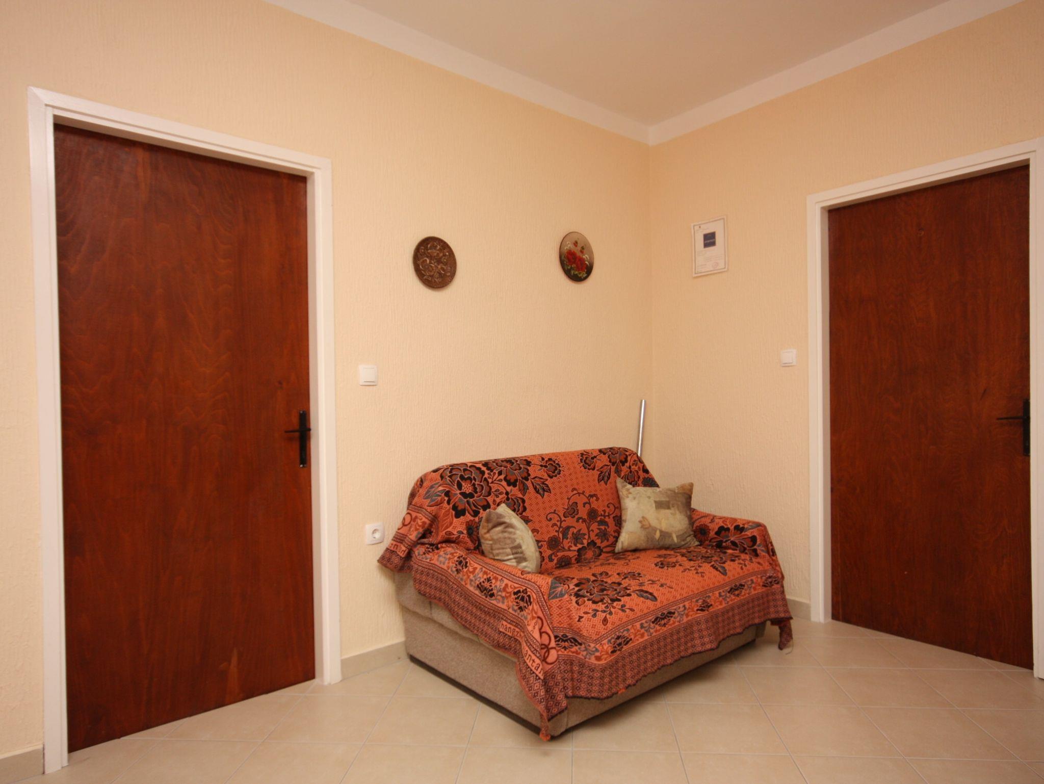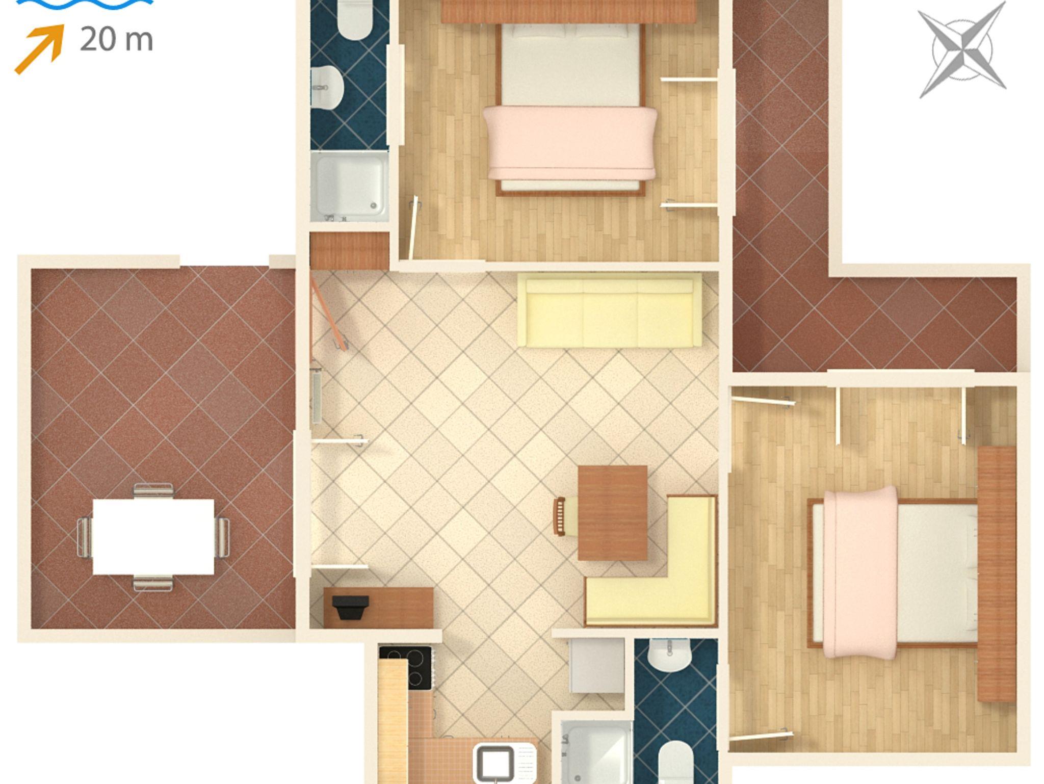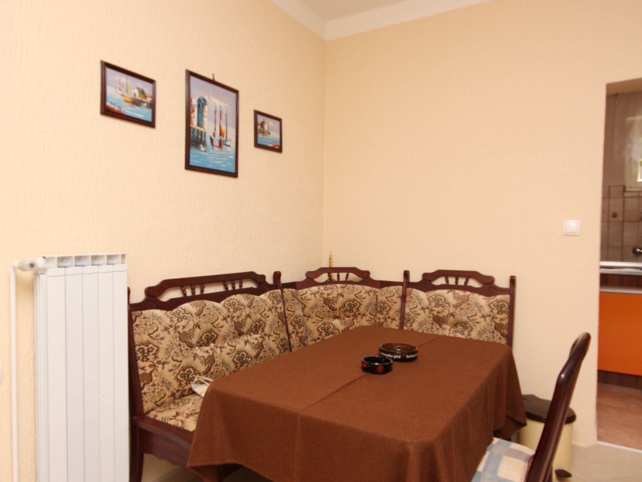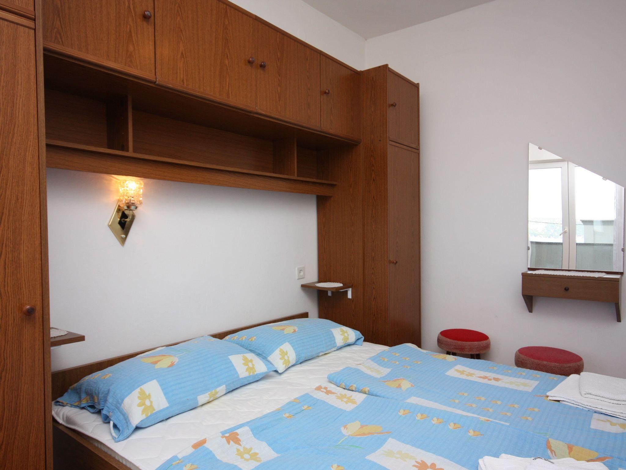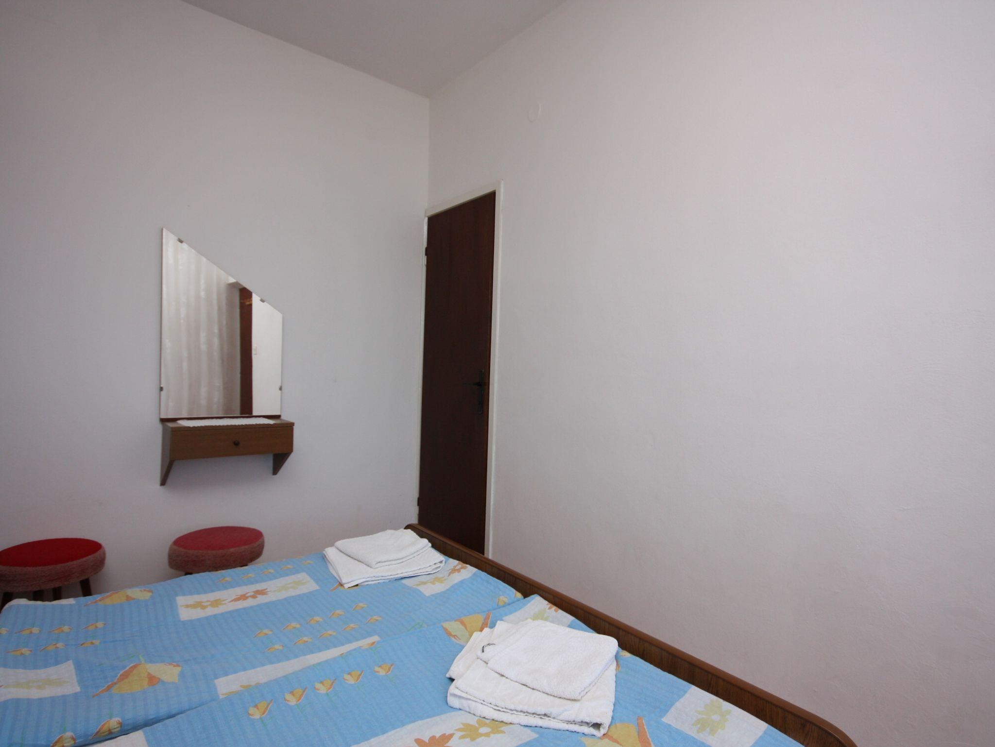 Ferienwohnung bietet Platz für 5 Gäste. Die Betten sind in Schlafzimmern, die es 2 gibt, und in Wohnzimmer, innerhalb einer Gesamtfläche von 40m2, angeordnet. Die Gäste haben eine eigene Terrasse zur Verfügung, auf der sie in warmen Sommernächten genießen können. Das Apartment bietet Meerblick. Es ist erlaubt, Speisen auf dem Gemeinschafts-Grill vorzubereiten. IM PREIS INBEGRIFFEN: Kurtaxe, Endreinigung, Klimatisierung, Parkplatz, Internet. VERBINDLICHE ZUSÄTZLICHE KOSTEN: Aufzahlung für Kurzaufenthalte (prozentualer Zuschlag pro Nächtigungsanzahl: 30% - 1, 20% - 2, 10% - 3). UNVERBINDLICHE ZUSÄTZLICHE KOSTEN: Wäschewaschen (5,00 € Waschen), Bootsanlegeplatz (5,00 € pro Nacht), Fahrrad (20,00 € täglich (pro Stück)). Die Verfügbarkeit zusätzlicher Dienstleistungen in Ihrem reservierten Termin und die Preise derselben (falls nicht aufgeführt) müssen im Voraus überprüft werden. Zusätzliche Dienstleistungen die in der Zahlungsaufforderung nicht aufgeführt sind werden direkt beim Vermieter bezahlt, angenommen der Gast nutzt auch diese.