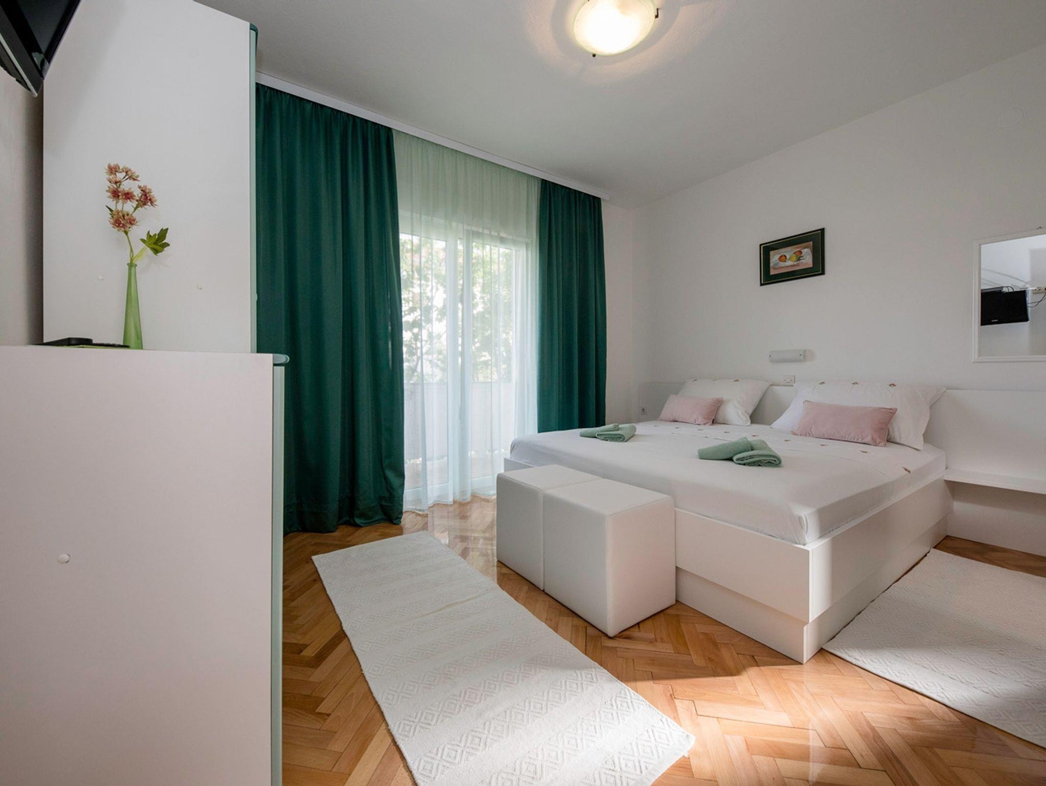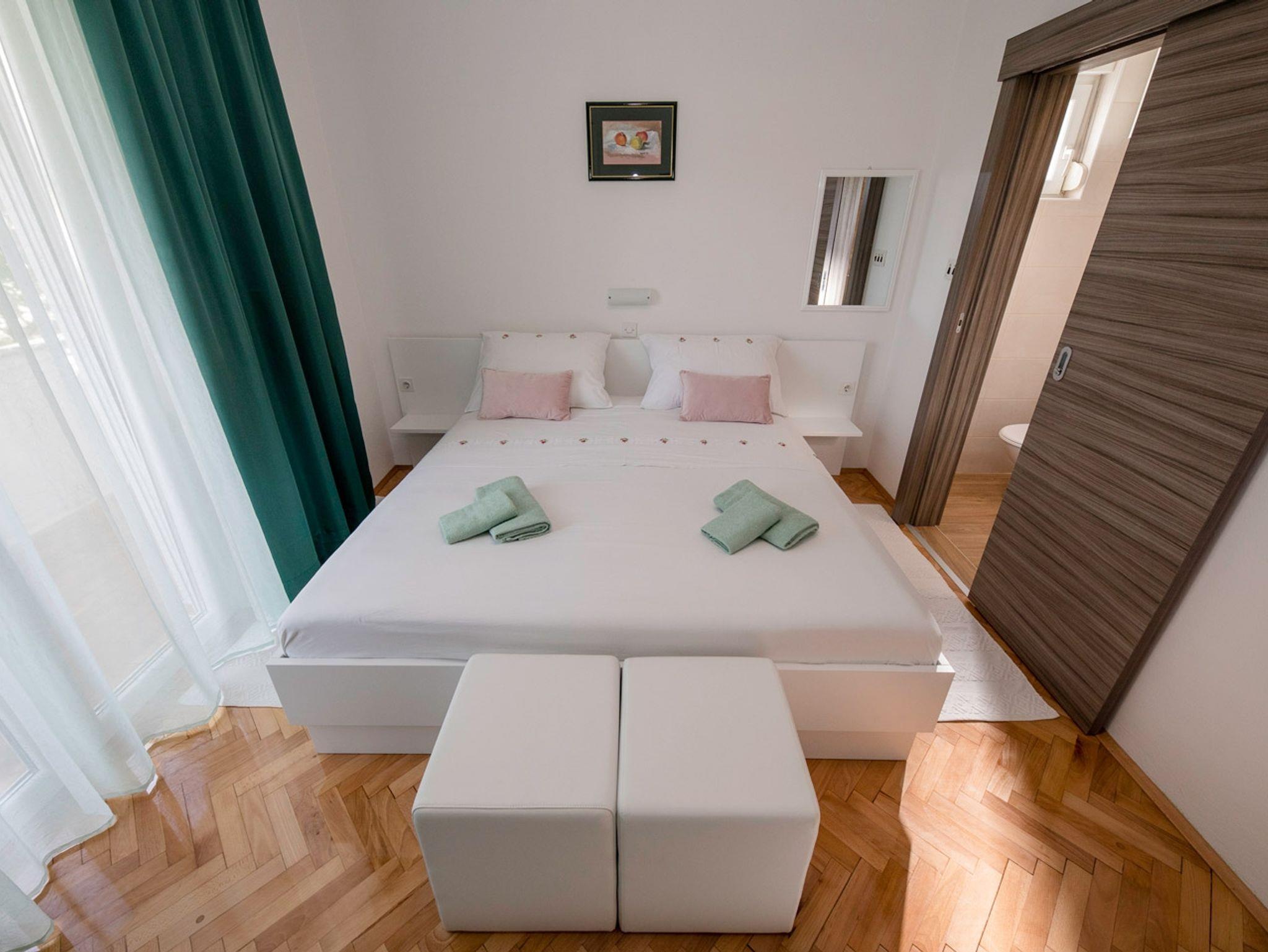 Ferienwohnung bietet Platz für 2 Gäste. Die Betten sind in Schlafzimmern, die es 1 gibt, innerhalb einer Gesamtfläche von 33m2, angeordnet. Die Gäste haben eine eigene Terrasse zur Verfügung, auf der sie in warmen Sommernächten genießen können. Es ist erlaubt, Speisen auf dem Gemeinschafts-Grill vorzubereiten. IM PREIS INBEGRIFFEN: Kurtaxe, Endreinigung, Klimatisierung, Parkplatz, Internet, Föhn, tragbarer Grill. VERBINDLICHE ZUSÄTZLICHE KOSTEN: Aufzahlung für Kurzaufenthalte (prozentualer Zuschlag pro Nächtigungsanzahl: 30% - 1, 20% - 2, 10% - 3). UNVERBINDLICHE ZUSÄTZLICHE KOSTEN: Wäschewaschen (3,00 € Waschen). Die Verfügbarkeit zusätzlicher Dienstleistungen in Ihrem reservierten Termin und die Preise derselben (falls nicht aufgeführt) müssen im Voraus überprüft werden. Zusätzliche Dienstleistungen die in der Zahlungsaufforderung nicht aufgeführt sind werden direkt beim Vermieter bezahlt, angenommen der Gast nutzt auch diese.