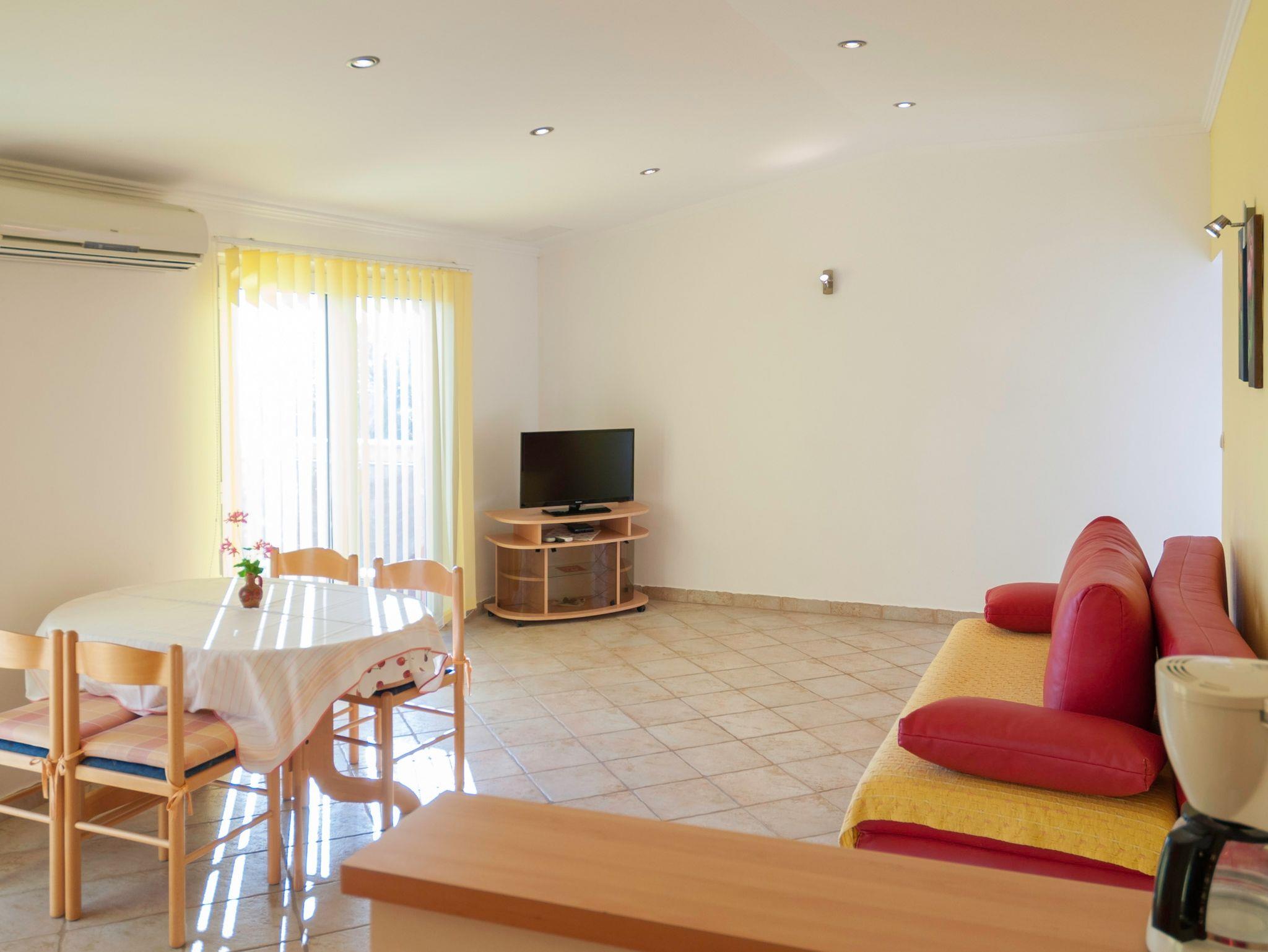 Ferienwohnung bietet Platz für 4 Gäste. Die Betten sind in Schlafzimmern, die es 1 gibt, und in Wohnzimmer, innerhalb einer Gesamtfläche von 39m2, angeordnet. Die Gäste haben eine eigene Terrasse zur Verfügung, auf der sie in warmen Sommernächten genießen können. Das Apartment bietet Meerblick. Es ist erlaubt, Speisen auf dem Gemeinschafts-Grill vorzubereiten. In der Unterkunftseinheit besteht die Möglichkeit des Mitbringens von Haustieren gegen Aufpreis. IM PREIS INBEGRIFFEN: Kurtaxe, Endreinigung, Klimatisierung, Parkplatz, Internet, Liegestühle. VERBINDLICHE ZUSÄTZLICHE KOSTEN: Aufzahlung für Kurzaufenthalte (prozentualer Zuschlag pro Nächtigungsanzahl: 30% - 1, 20% - 2, 10% - 3). UNVERBINDLICHE ZUSÄTZLICHE KOSTEN: Wäschewaschen (5,00 € Waschen), Bootsanlegeplatz (10,00 € pro Nacht), Haustiere (10,00 € pro Nacht). Die Verfügbarkeit zusätzlicher Dienstleistungen in Ihrem reservierten Termin und die Preise derselben (falls nicht aufgeführt) müssen im Voraus überprüft werden. Zusätzliche Dienstleistungen die in der Zahlungsaufforderung nicht aufgeführt sind werden direkt beim Vermieter bezahlt, angenommen der Gast nutzt auch diese. Ermäßigung auf den Grundpreis: Gratistag 14=13 (bei einem Aufenthalt von 14 Tagen oder mehr erhalten Sie einen Gratistag für den Aufenthalt bis 31.12.26).