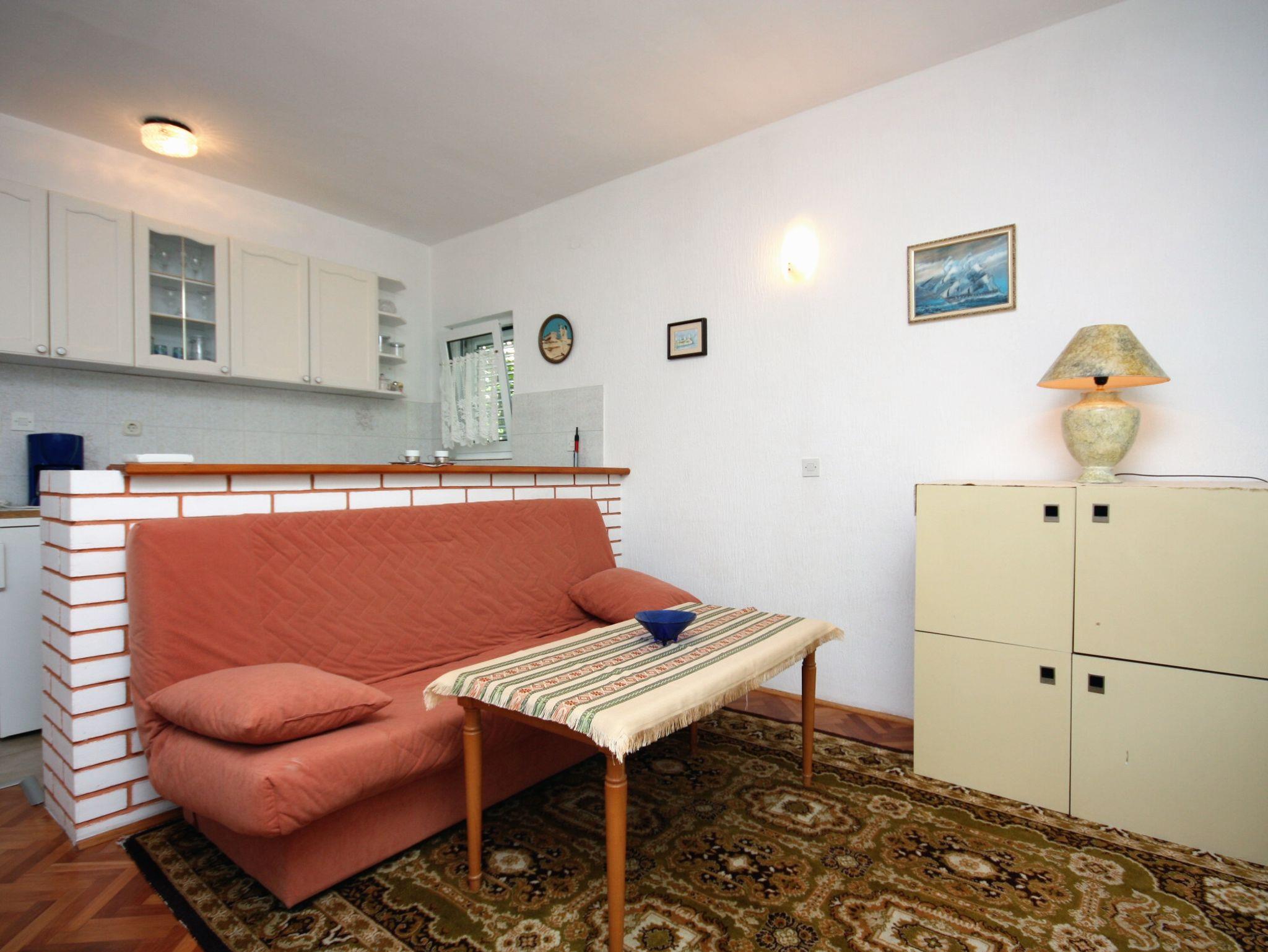 Ferienwohnung bietet Platz für 3 Gäste. Die Betten sind in Schlafzimmern, die es 1 gibt, und in Wohnzimmer, innerhalb einer Gesamtfläche von 39m2, angeordnet. Die Gäste haben eine eigene Terrasse zur Verfügung, auf der sie in warmen Sommernächten genießen können. Das Apartment bietet Meerblick. Es ist erlaubt, Speisen auf dem Gemeinschafts-Grill vorzubereiten. In der Unterkunftseinheit besteht die Möglichkeit des Mitbringens von Haustieren gegen Aufpreis. IM PREIS INBEGRIFFEN: Kurtaxe, Endreinigung, Zentralheizung, Parkplatz, Internet. VERBINDLICHE ZUSÄTZLICHE KOSTEN: Aufzahlung für Kurzaufenthalte (prozentualer Zuschlag pro Nächtigungsanzahl: 30% - 1, 20% - 2, 10% - 3). UNVERBINDLICHE ZUSÄTZLICHE KOSTEN: Klimatisierung (7,00 € pro Nacht), Bootsanlegeplatz (7,00 € pro Nacht), Haustiere (7,00 € pro Nacht). Die Verfügbarkeit zusätzlicher Dienstleistungen in Ihrem reservierten Termin und die Preise derselben (falls nicht aufgeführt) müssen im Voraus überprüft werden. Zusätzliche Dienstleistungen die in der Zahlungsaufforderung nicht aufgeführt sind werden direkt beim Vermieter bezahlt, angenommen der Gast nutzt auch diese.