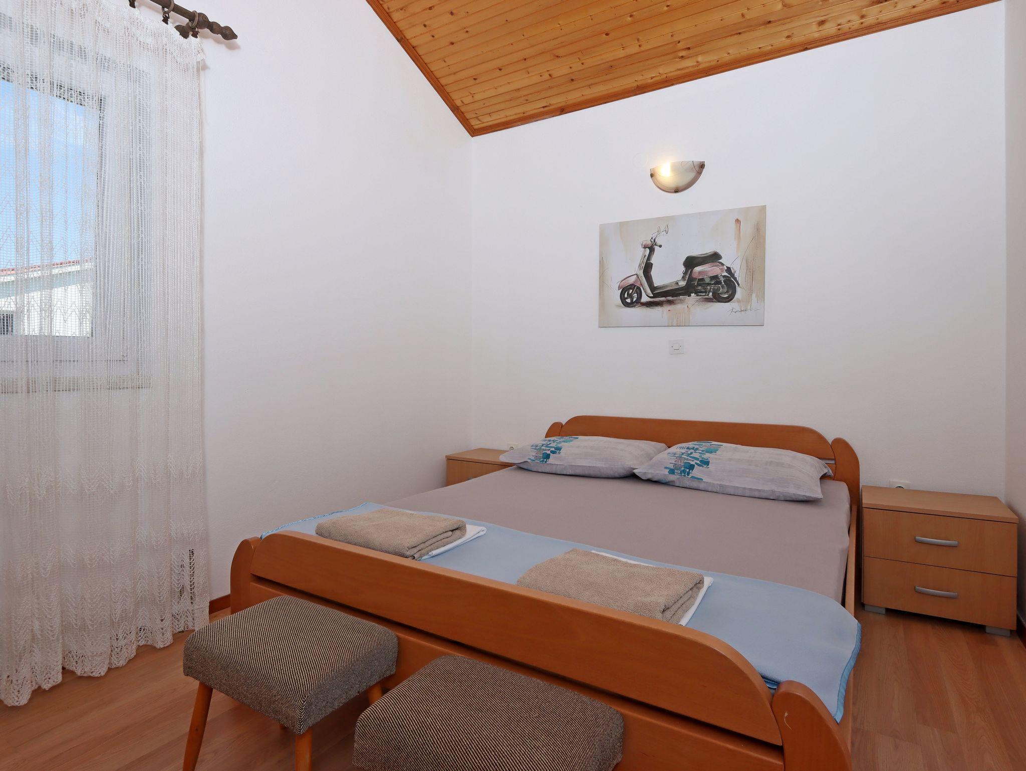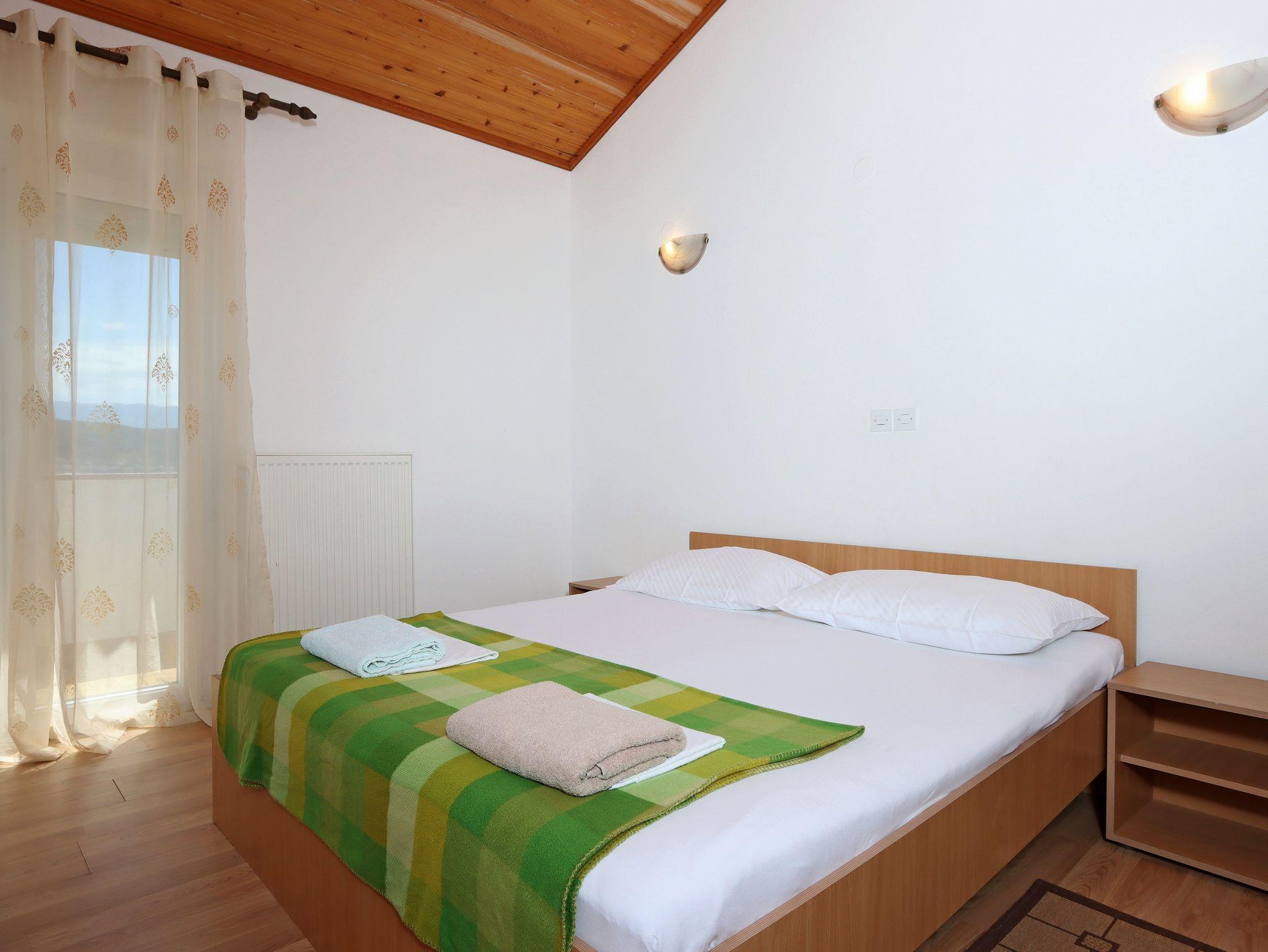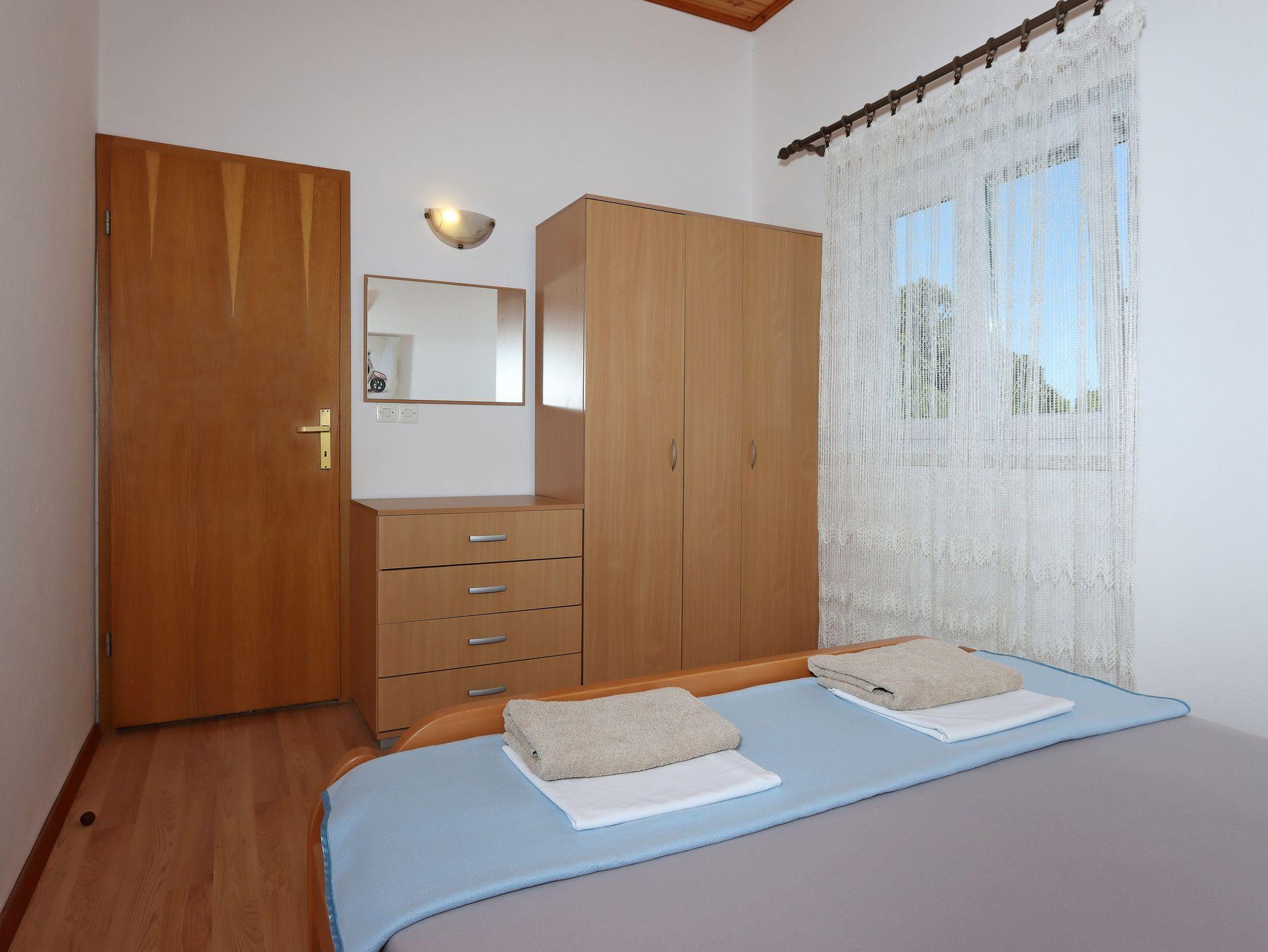Ferienwohnung bietet Platz für 4 Gäste. Die Betten sind in Schlafzimmern, die es 2 gibt, innerhalb einer Gesamtfläche von 46m2, angeordnet. Die Gäste haben einen eigenen Balkon zur Verfügung, auf der sie in warmen Sommernächten genießen können. Das Apartment bietet Meerblick. Es ist erlaubt, Speisen auf dem Gemeinschafts-Grill vorzubereiten. IM PREIS INBEGRIFFEN: Kurtaxe, Endreinigung, Klimatisierung, Parkplatz, Internet, Bootsanlegeplatz, tragbarer Grill. VERBINDLICHE ZUSÄTZLICHE KOSTEN: Aufzahlung für Kurzaufenthalte (prozentualer Zuschlag pro Nächtigungsanzahl: 30% - 1, 20% - 2, 10% - 3). UNVERBINDLICHE ZUSÄTZLICHE KOSTEN: Wäschewaschen (5,00 € Waschen). Die Verfügbarkeit zusätzlicher Dienstleistungen in Ihrem reservierten Termin und die Preise derselben (falls nicht aufgeführt) müssen im Voraus überprüft werden. Zusätzliche Dienstleistungen die in der Zahlungsaufforderung nicht aufgeführt sind werden direkt beim Vermieter bezahlt, angenommen der Gast nutzt auch diese.