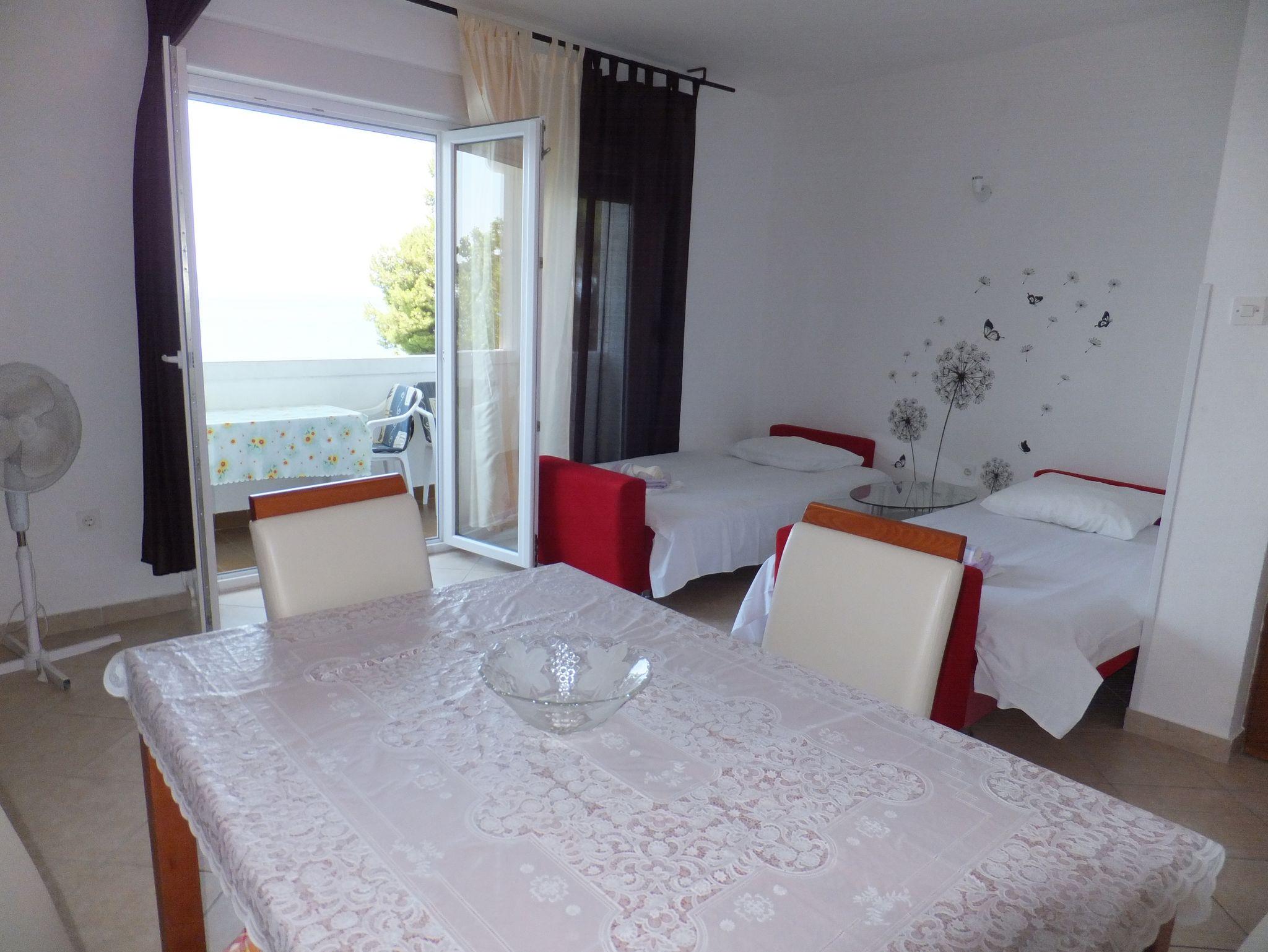 Ferienwohnung bietet Platz für 4 Gäste. Die Betten sind in Schlafzimmern, die es 1 gibt, und in Wohnzimmer, innerhalb einer Gesamtfläche von 44m2, angeordnet. Die Gäste haben einen eigenen Balkon zur Verfügung, auf der sie in warmen Sommernächten genießen können. Das Apartment bietet Meerblick. Es ist erlaubt, Speisen auf dem Gemeinschafts-Grill vorzubereiten. IM PREIS INBEGRIFFEN: Kurtaxe, Endreinigung, Klimatisierung, Parkplatz, Internet, Bügeleisen, Bügelbrett, Föhn, Liegestühle. VERBINDLICHE ZUSÄTZLICHE KOSTEN: Aufzahlung für Kurzaufenthalte (prozentualer Zuschlag pro Nächtigungsanzahl: 30% - 1, 20% - 2, 10% - 3). UNVERBINDLICHE ZUSÄTZLICHE KOSTEN: Bootsanlegeplatz (10,00 € pro Nacht), Zusatzbett (10,00 € pro Nacht). Die Verfügbarkeit zusätzlicher Dienstleistungen in Ihrem reservierten Termin und die Preise derselben (falls nicht aufgeführt) müssen im Voraus überprüft werden. Zusätzliche Dienstleistungen die in der Zahlungsaufforderung nicht aufgeführt sind werden direkt beim Vermieter bezahlt, angenommen der Gast nutzt auch diese.