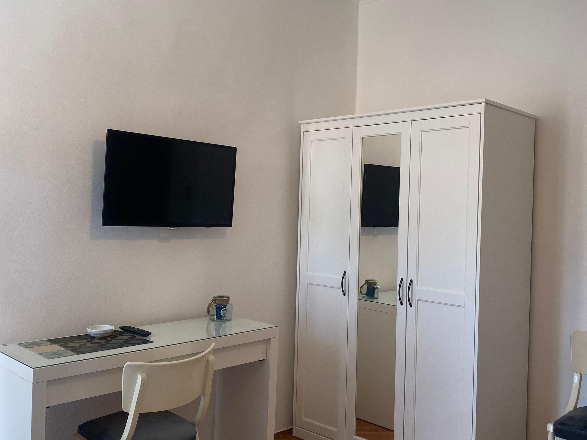 Zimmer bietet Platz für 2 Gäste. Die Betten sind in Schlafzimmern, die es 1 gibt, innerhalb einer Gesamtfläche von 16m2, angeordnet. Die Gäste haben eine eigene Terrasse zur Verfügung, auf der sie in warmen Sommernächten genießen können. Es ist erlaubt, Speisen auf dem Gemeinschafts-Grill vorzubereiten. Die reservierte Unterkunftseinheit ist ein Zimmer mit eigenem Badezimmer ohne die Möglichkeit der Nutzung einer Küche. IM PREIS INBEGRIFFEN: Kurtaxe, Endreinigung, Klimatisierung, Parkplatz, Internet, Kinderbett. VERBINDLICHE ZUSÄTZLICHE KOSTEN: Aufzahlung für Kurzaufenthalte (prozentualer Zuschlag pro Nächtigungsanzahl: 30% - 1, 20% - 2, 10% - 3). UNVERBINDLICHE ZUSÄTZLICHE KOSTEN: Frühstück (10,00 €, 50% Nachlass für Kinder zwischen 4 und 12 Jahren, Kinder bis 4 Jahre sind frei.), Wäschewaschen (3,00 € Waschen), Bootsanlegeplatz (10,00 € pro Nacht). Die Verfügbarkeit zusätzlicher Dienstleistungen in Ihrem reservierten Termin und die Preise derselben (falls nicht aufgeführt) müssen im Voraus überprüft werden. Zusätzliche Dienstleistungen die in der Zahlungsaufforderung nicht aufgeführt sind werden direkt beim Vermieter bezahlt, angenommen der Gast nutzt auch diese.