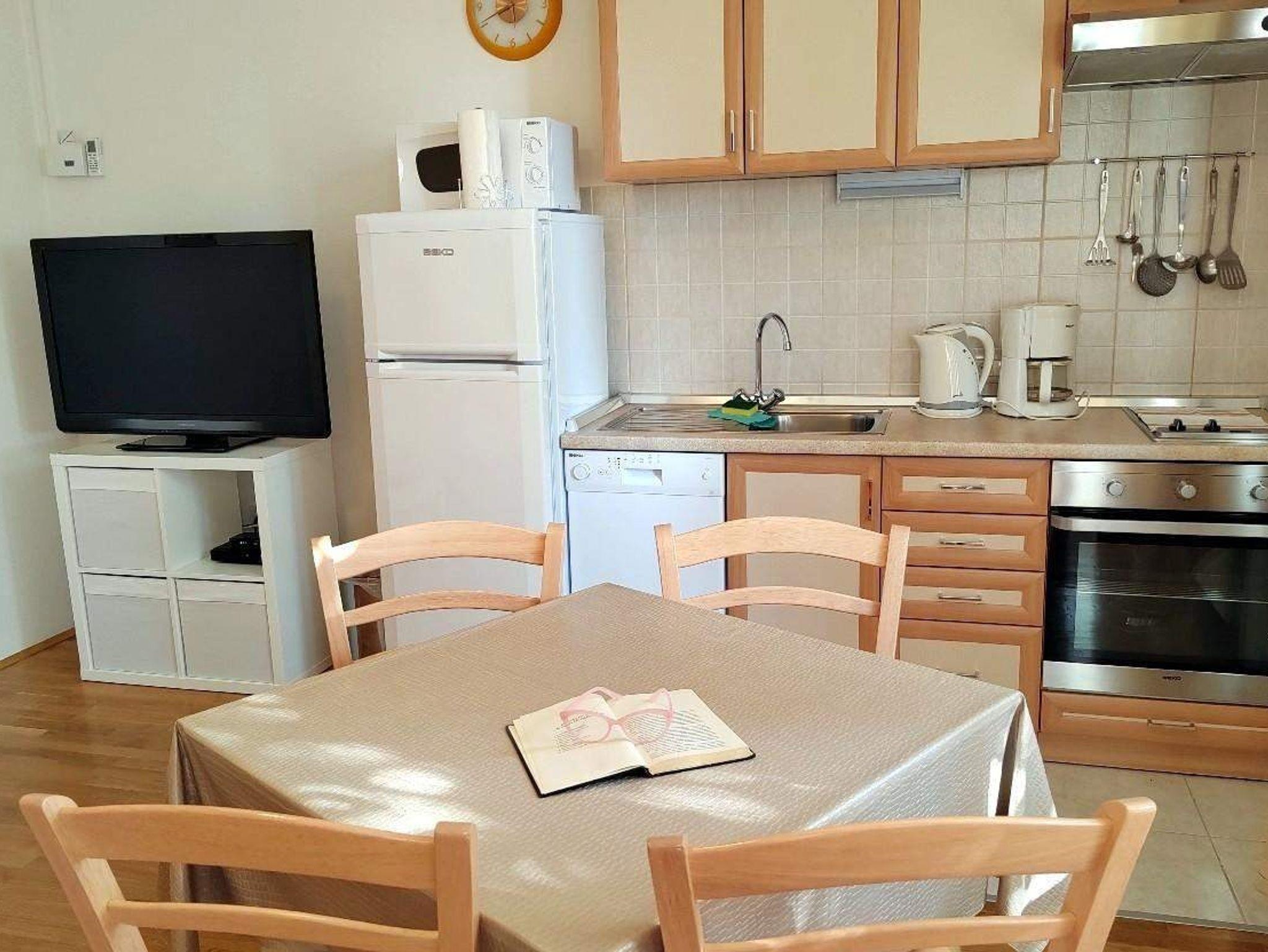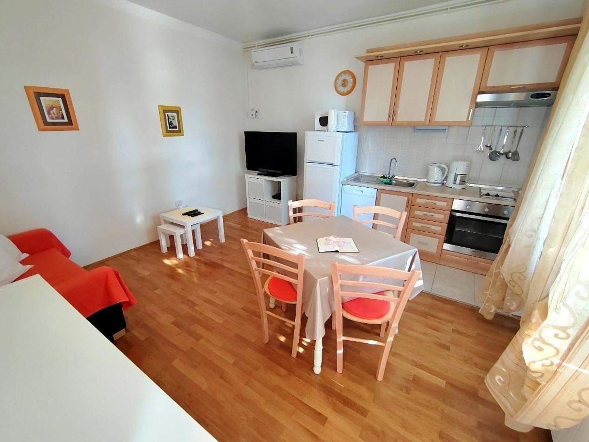 Ferienwohnung bietet Platz für 3 Gäste. Die Betten sind in Schlafzimmern, die es 1 gibt, innerhalb einer Gesamtfläche von 42m2, angeordnet. Die Gäste haben eine eigene Terrasse zur Verfügung, auf der sie in warmen Sommernächten genießen können. Das Apartment bietet Meerblick. Es ist erlaubt, Speisen auf dem Gemeinschafts-Grill vorzubereiten. In der Unterkunftseinheit besteht die Möglichkeit des Mitbringens von Haustieren gegen Aufpreis. IM PREIS INBEGRIFFEN: Kurtaxe, Endreinigung, Klimatisierung, Parkplatz, Internet, Liegestühle. UNVERBINDLICHE ZUSÄTZLICHE KOSTEN: Frühstück (15,00 €, 50% Nachlass für Kinder zwischen 4 und 12 Jahren, Kinder bis 4 Jahre sind frei.), Bootsanlegeplatz (10,00 € pro Nacht), Haustiere (10,00 € pro Nacht). Die Verfügbarkeit zusätzlicher Dienstleistungen in Ihrem reservierten Termin und die Preise derselben (falls nicht aufgeführt) müssen im Voraus überprüft werden. Zusätzliche Dienstleistungen die in der Zahlungsaufforderung nicht aufgeführt sind werden direkt beim Vermieter bezahlt, angenommen der Gast nutzt auch diese.