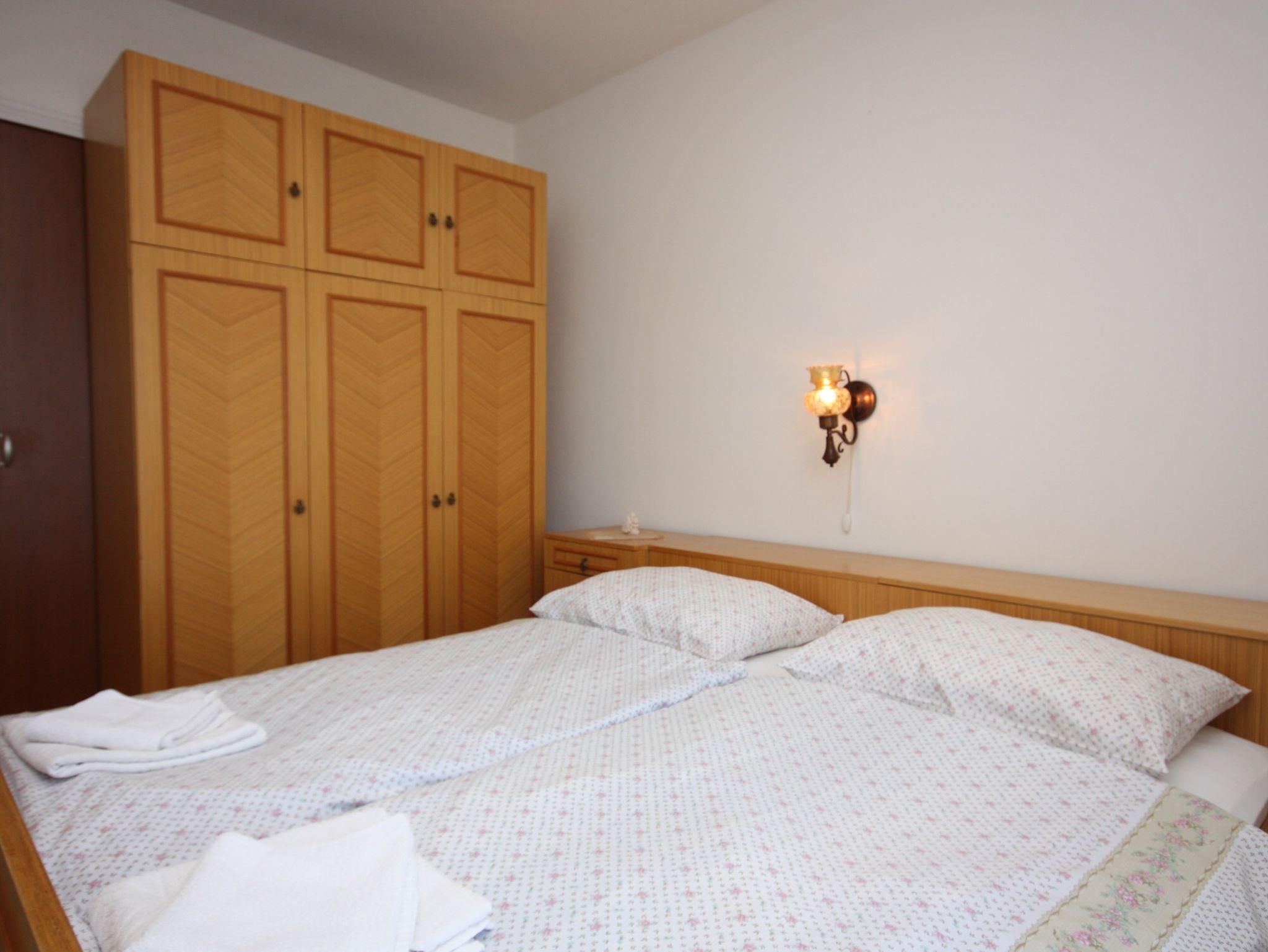Ferienwohnung bietet Platz für 2 Gäste. Die Betten sind in Schlafzimmern, die es 1 gibt, innerhalb einer Gesamtfläche von 26m2, angeordnet. Die Gäste haben eine eigene Terrasse zur Verfügung, auf der sie in warmen Sommernächten genießen können. Das Apartment bietet Meerblick. Es ist erlaubt, Speisen auf dem Gemeinschafts-Grill vorzubereiten. IM PREIS INBEGRIFFEN: Kurtaxe, Endreinigung, Klimatisierung, Parkplatz, Internet. VERBINDLICHE ZUSÄTZLICHE KOSTEN: Aufzahlung für Kurzaufenthalte (prozentualer Zuschlag pro Nächtigungsanzahl: 30% - 1, 20% - 2, 10% - 3). UNVERBINDLICHE ZUSÄTZLICHE KOSTEN: Wäschewaschen (5,00 € Waschen), Bootsanlegeplatz (5,00 € pro Nacht), Fahrrad (20,00 € täglich (pro Stück)). Die Verfügbarkeit zusätzlicher Dienstleistungen in Ihrem reservierten Termin und die Preise derselben (falls nicht aufgeführt) müssen im Voraus überprüft werden. Zusätzliche Dienstleistungen die in der Zahlungsaufforderung nicht aufgeführt sind werden direkt beim Vermieter bezahlt, angenommen der Gast nutzt auch diese.