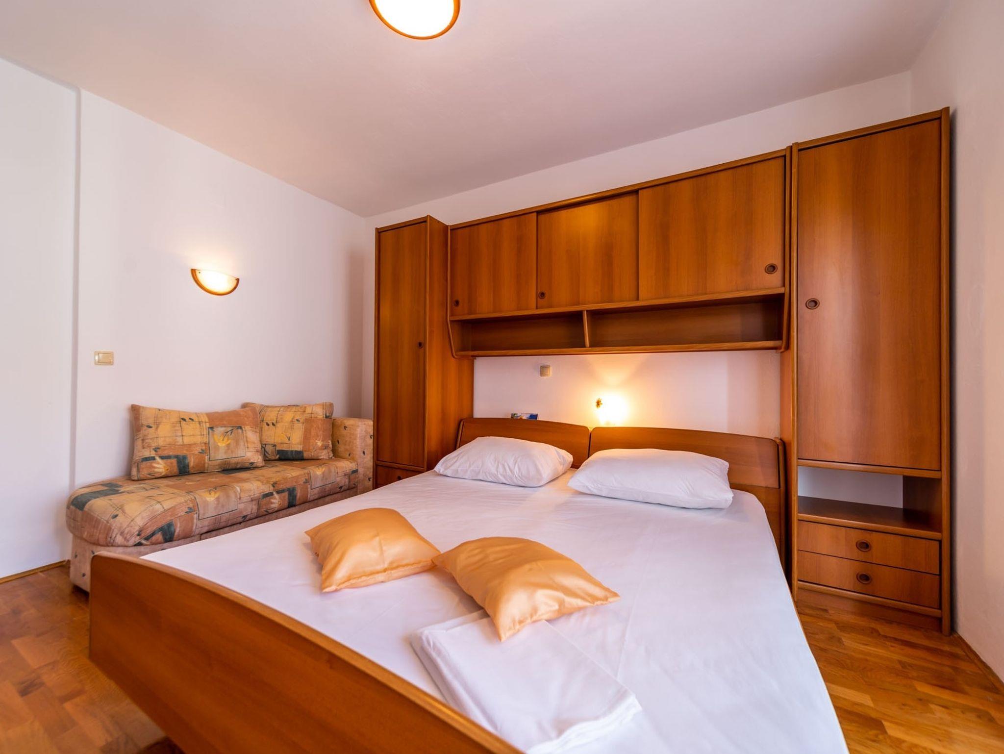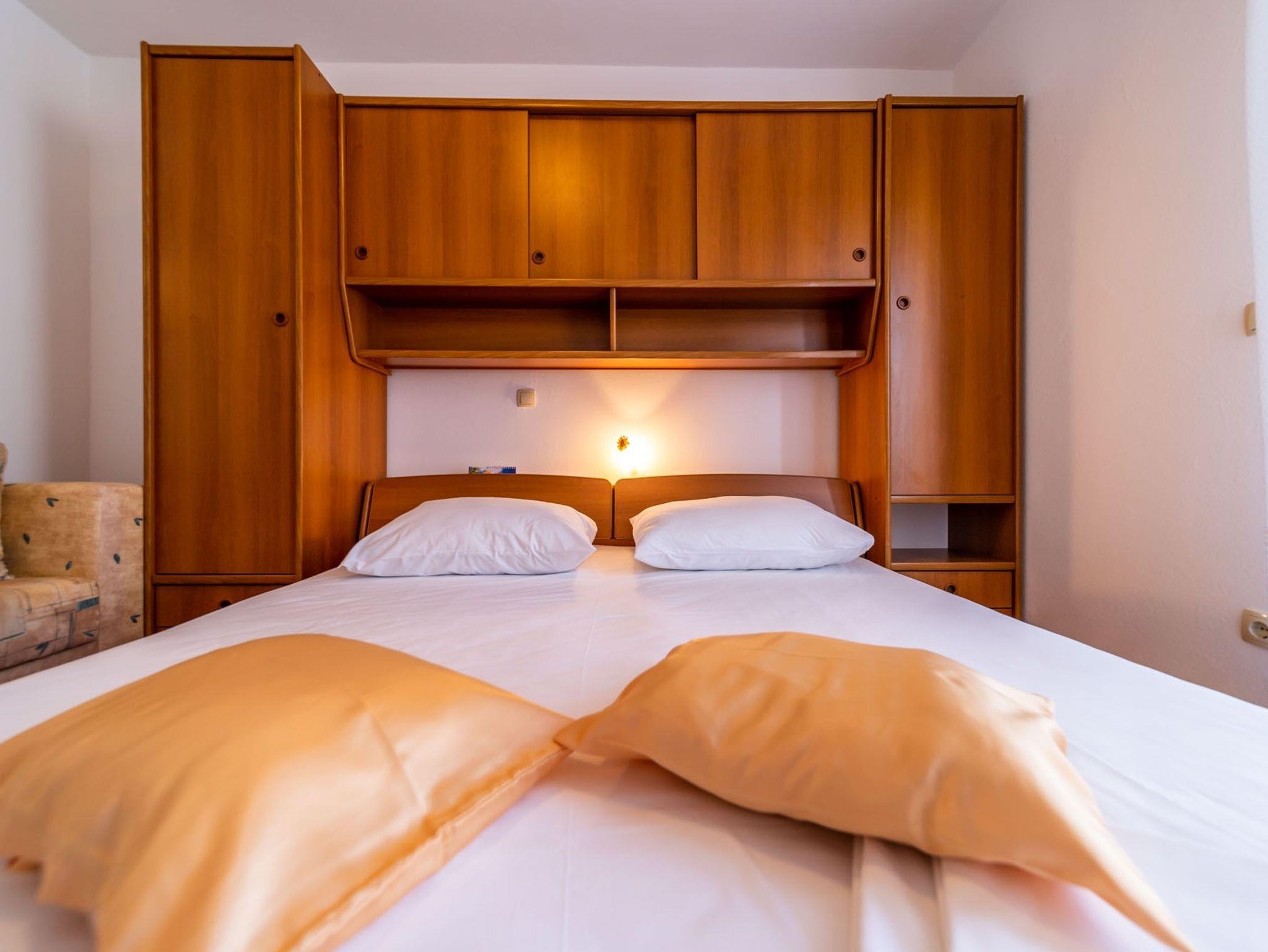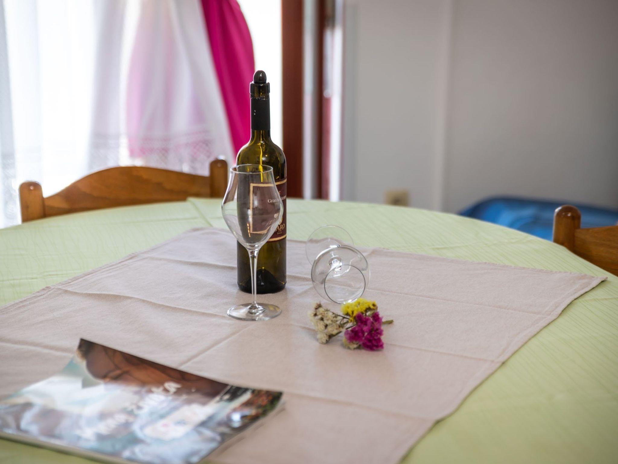 Ferienwohnung bietet Platz für 6 Gäste. Die Betten sind in Schlafzimmern, die es 2 gibt, und in Wohnzimmer, innerhalb einer Gesamtfläche von 70m2, angeordnet. Die Gäste haben eine eigene Terrasse zur Verfügung, auf der sie in warmen Sommernächten genießen können. Das Apartment bietet Meerblick. Es ist erlaubt, Speisen auf dem Gemeinschafts-Grill vorzubereiten. In der Unterkunftseinheit besteht die Möglichkeit des Mitbringens von Haustieren gegen Aufpreis. IM PREIS INBEGRIFFEN: Kurtaxe, Endreinigung, Klimatisierung, Parkplatz, Internet, Bügeleisen, Bügelbrett, Föhn, tragbarer Grill. UNVERBINDLICHE ZUSÄTZLICHE KOSTEN: Haustiere (10,00 € pro Nacht), Zusatzbett (10,00 € pro Nacht). Die Verfügbarkeit zusätzlicher Dienstleistungen in Ihrem reservierten Termin und die Preise derselben (falls nicht aufgeführt) müssen im Voraus überprüft werden. Zusätzliche Dienstleistungen die in der Zahlungsaufforderung nicht aufgeführt sind werden direkt beim Vermieter bezahlt, angenommen der Gast nutzt auch diese. Ermäßigung auf den Grundpreis: Gratistag 21=19 (bei einem Aufenthalt von 21 Tagen oder mehr erhalten Sie 2 Gratistage für den Aufenthalt bis 31.12.26).
