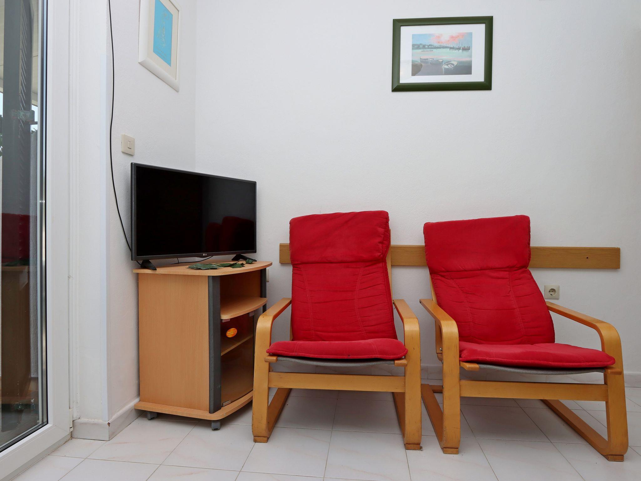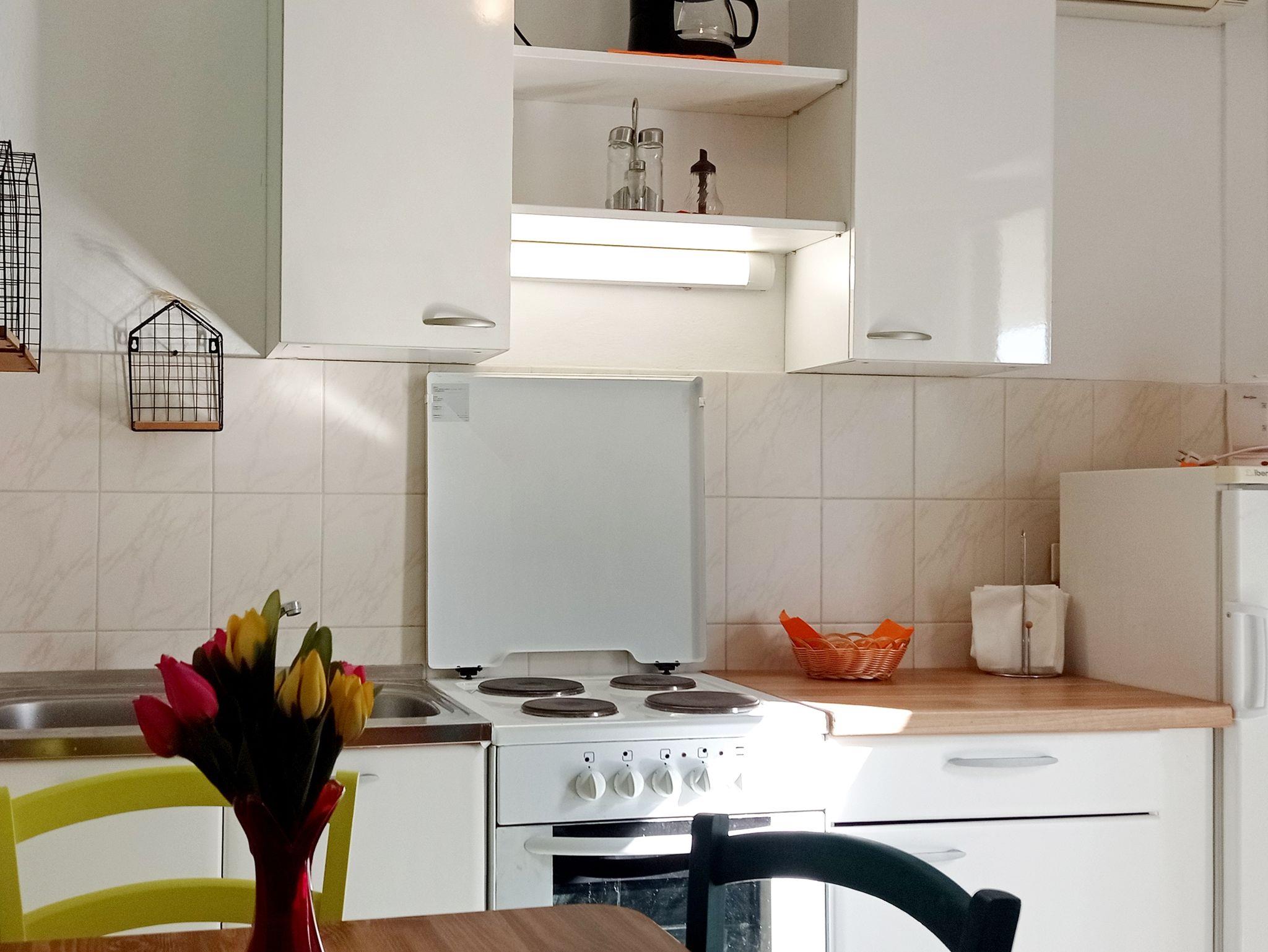 Ferienwohnung bietet Platz für 3 Gäste. Die Betten sind in Schlafzimmern, die es 1 gibt, innerhalb einer Gesamtfläche von 23m2, angeordnet. Die Gäste haben eine eigene Terrasse zur Verfügung, auf der sie in warmen Sommernächten genießen können. Das Apartment bietet Meerblick. Es ist erlaubt, Speisen auf dem Gemeinschafts-Grill vorzubereiten. In der Unterkunftseinheit besteht die Möglichkeit des Mitbringens von Haustieren gegen Aufpreis. IM PREIS INBEGRIFFEN: Kurtaxe, Endreinigung, Klimatisierung, Parkplatz, Internet, Bügeleisen, Föhn, Sonnenschirm. VERBINDLICHE ZUSÄTZLICHE KOSTEN: Aufzahlung für Kurzaufenthalte (prozentualer Zuschlag pro Nächtigungsanzahl: 30% - 1, 20% - 2, 10% - 3). UNVERBINDLICHE ZUSÄTZLICHE KOSTEN: Bootsanlegeplatz (5,00 € pro Nacht), Haustiere (7,00 € pro Nacht), Zusatzbett (5,00 € pro Nacht). Die Verfügbarkeit zusätzlicher Dienstleistungen in Ihrem reservierten Termin und die Preise derselben (falls nicht aufgeführt) müssen im Voraus überprüft werden. Zusätzliche Dienstleistungen die in der Zahlungsaufforderung nicht aufgeführt sind werden direkt beim Vermieter bezahlt, angenommen der Gast nutzt auch diese.