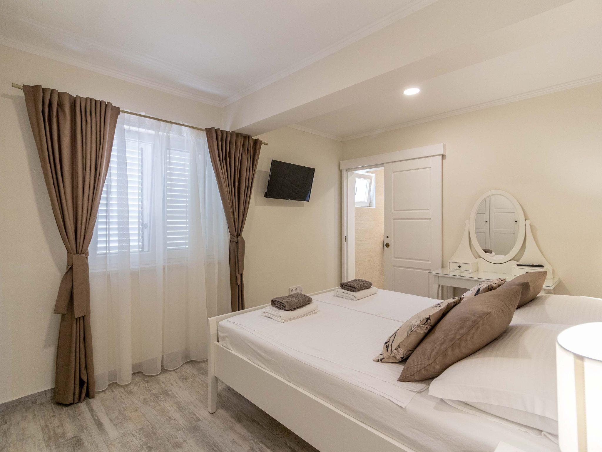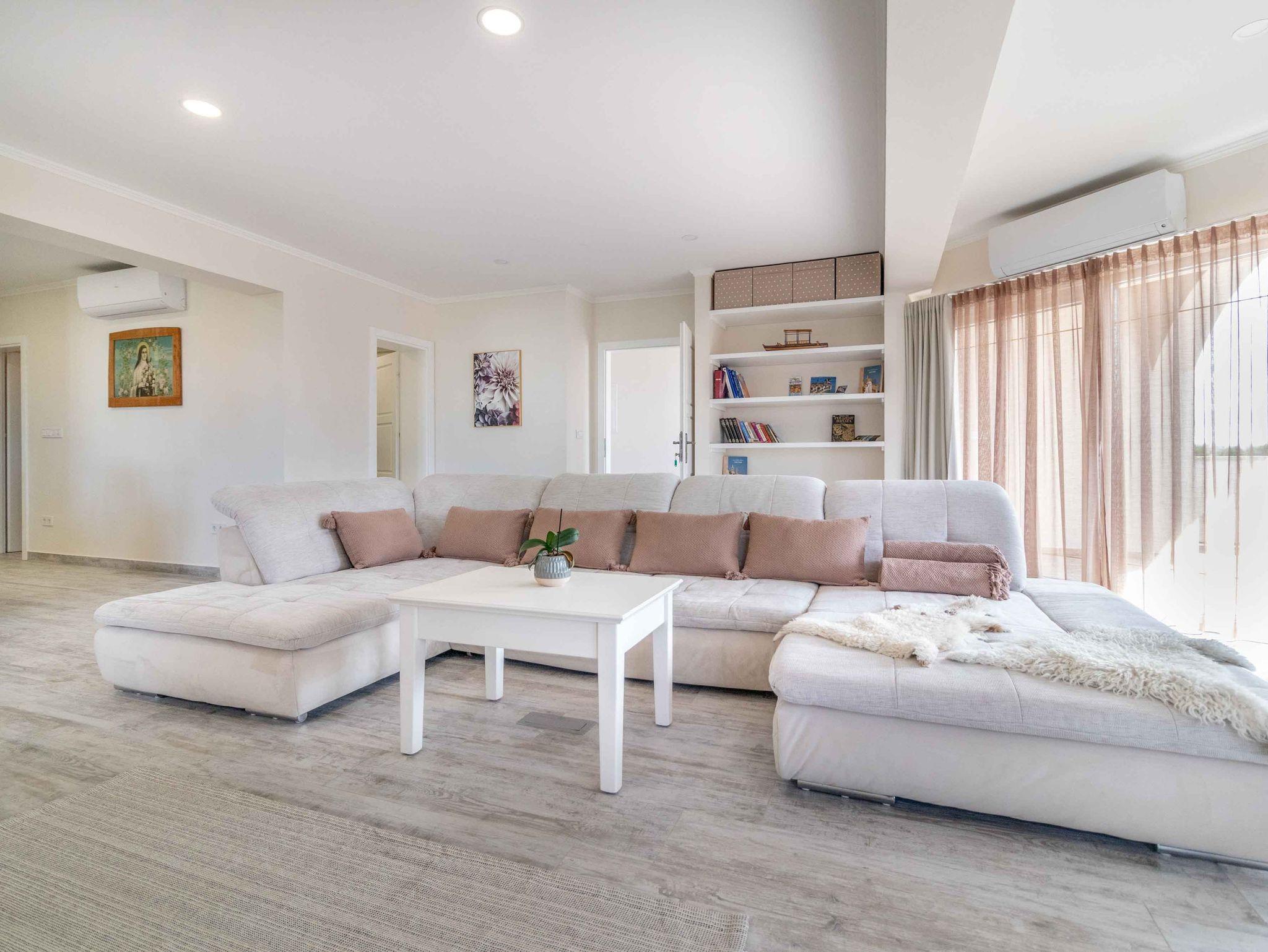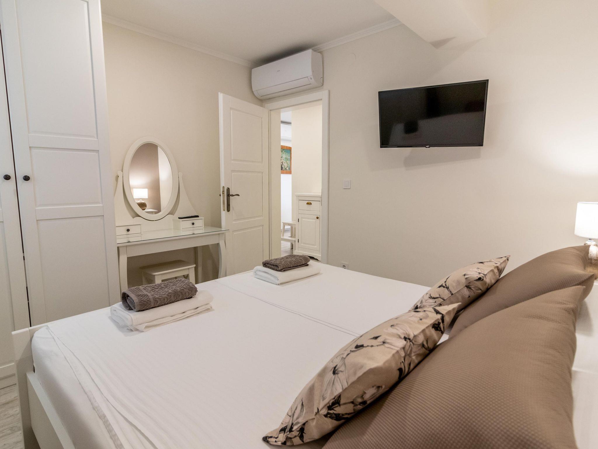 Ferienwohnung bietet Platz für 6 Gäste. Die Betten sind in Schlafzimmern, die es 2 gibt, und in Wohnzimmer, innerhalb einer Gesamtfläche von 84m2, angeordnet. Die Gäste haben einen eigenen Balkon zur Verfügung, auf der sie in warmen Sommernächten genießen können. Das Apartment bietet Meerblick. Es ist erlaubt, Speisen auf dem Gemeinschafts-Grill vorzubereiten. IM PREIS INBEGRIFFEN: Kurtaxe, Endreinigung, Klimatisierung, Parkplatz, Internet, Bügeleisen, Bügelbrett, Föhn. VERBINDLICHE ZUSÄTZLICHE KOSTEN: Aufzahlung für Kurzaufenthalte (prozentualer Zuschlag pro Nächtigungsanzahl: 30% - 1, 20% - 2, 10% - 3). UNVERBINDLICHE ZUSÄTZLICHE KOSTEN: Zusatzbett (10,00 € pro Nacht). Die Verfügbarkeit zusätzlicher Dienstleistungen in Ihrem reservierten Termin und die Preise derselben (falls nicht aufgeführt) müssen im Voraus überprüft werden. Zusätzliche Dienstleistungen die in der Zahlungsaufforderung nicht aufgeführt sind werden direkt beim Vermieter bezahlt, angenommen der Gast nutzt auch diese.