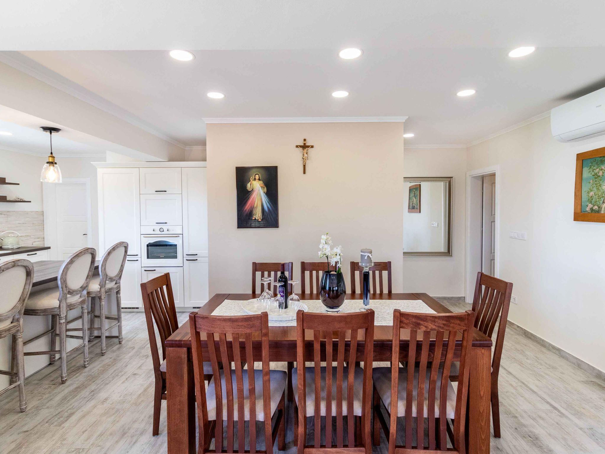 Hof (200m2, Kinderbereich, Sitzbereich), Parkplatz (Anzahl der Parkplätze: 10, Entfernung vom Objekt: im Hof), Grill: gemeinsam, WiFi Internet, Föhn, Bügeleisen, Bügelbrett