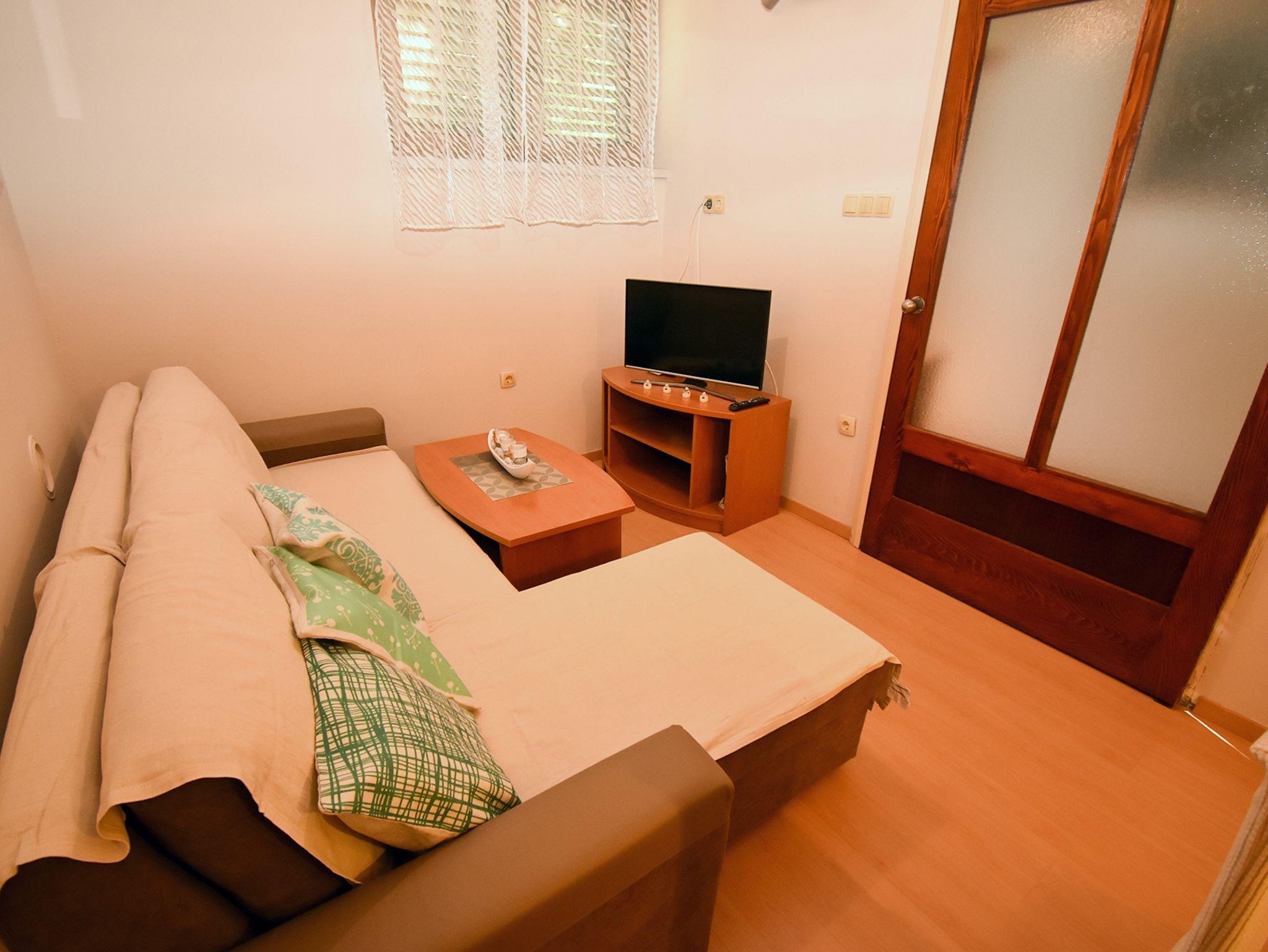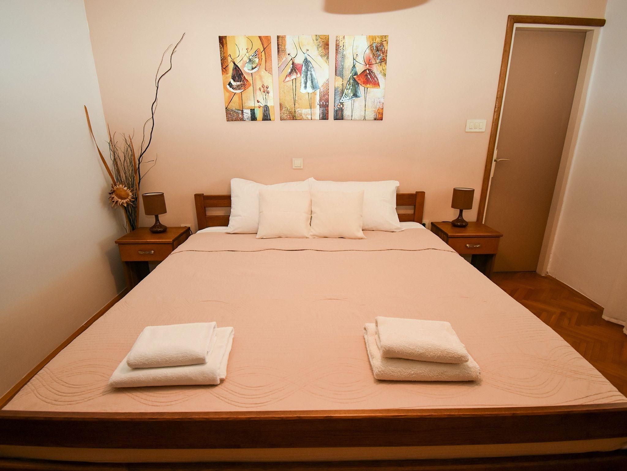Ferienwohnung bietet Platz für 6 Gäste. Die Betten sind in Schlafzimmern, die es 3 gibt, innerhalb einer Gesamtfläche von 80m2, angeordnet. Die Gäste haben eine eigene Terrasse zur Verfügung, auf der sie in warmen Sommernächten genießen können. Für vollen Genuss und Entspannung gibt es einen privaten Grill für Gäste dieser Unterkunft. IM PREIS INBEGRIFFEN: Kurtaxe, Endreinigung, Parkplatz, Internet, Bügeleisen, Bügelbrett, Föhn. VERBINDLICHE ZUSÄTZLICHE KOSTEN: Aufzahlung für Kurzaufenthalte (prozentualer Zuschlag pro Nächtigungsanzahl: 30% - 1, 20% - 2, 10% - 3). UNVERBINDLICHE ZUSÄTZLICHE KOSTEN: Wäschewaschen (6,00 € Waschen). Die Verfügbarkeit zusätzlicher Dienstleistungen in Ihrem reservierten Termin und die Preise derselben (falls nicht aufgeführt) müssen im Voraus überprüft werden. Zusätzliche Dienstleistungen die in der Zahlungsaufforderung nicht aufgeführt sind werden direkt beim Vermieter bezahlt, angenommen der Gast nutzt auch diese. Ermäßigung auf den Grundpreis: Gratistag 21=19 (bei einem Aufenthalt von 21 Tagen oder mehr erhalten Sie 2 Gratistage für den Aufenthalt bis 31.12.26).