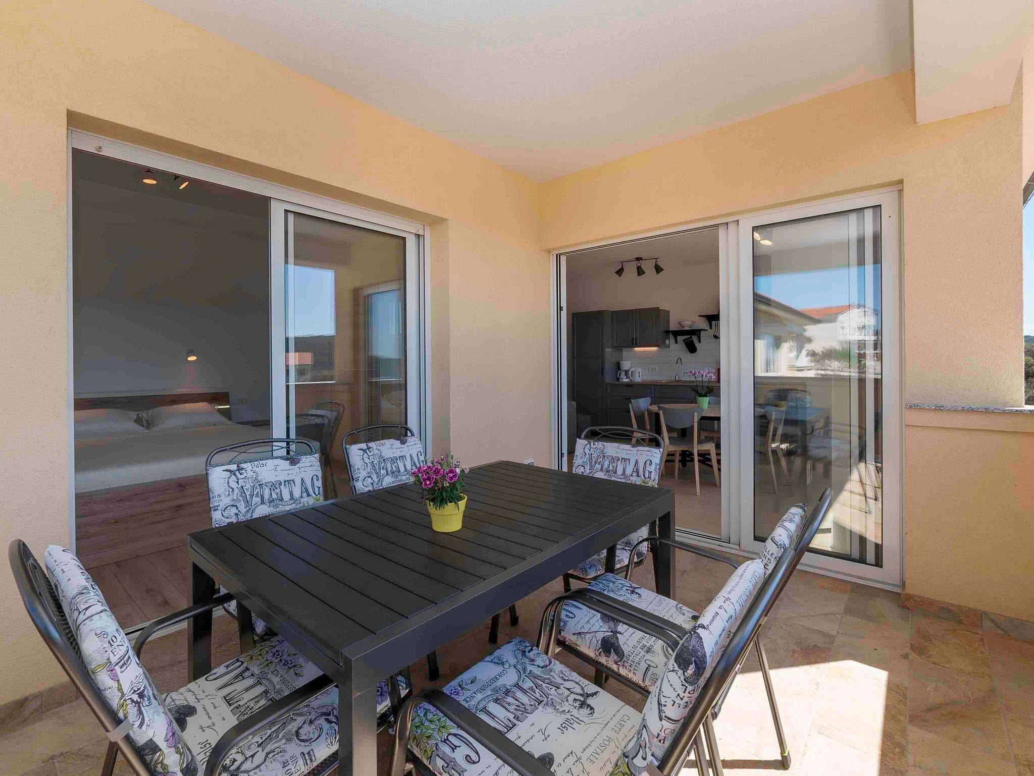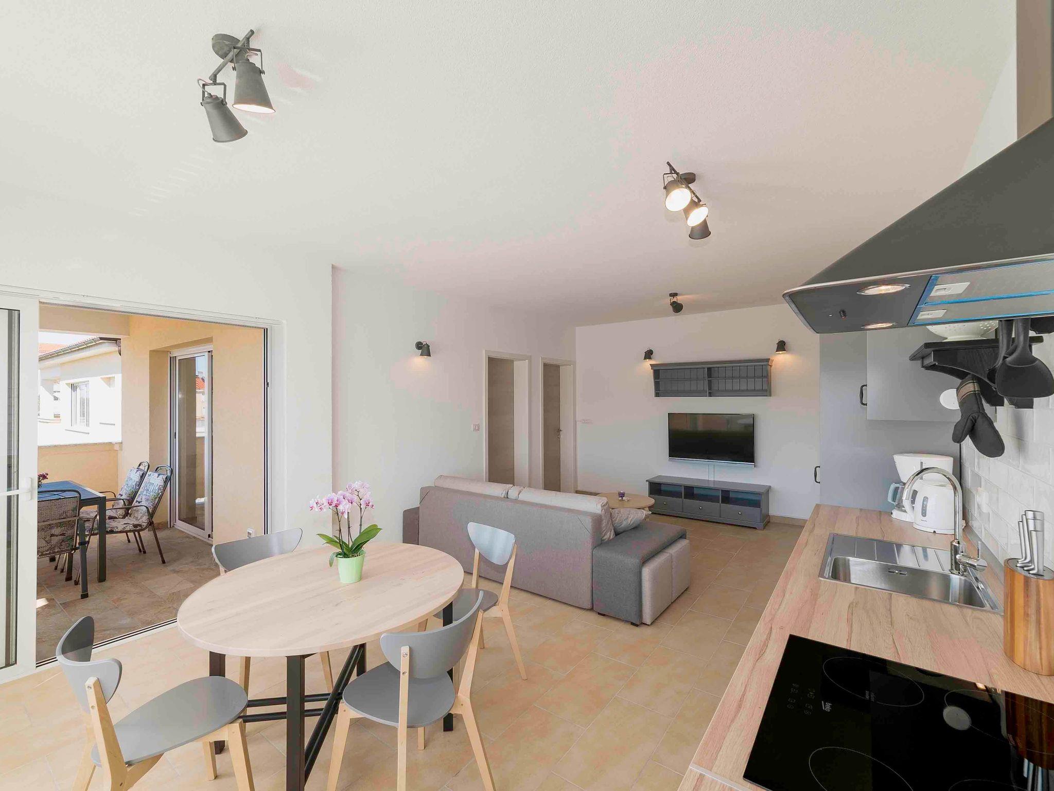Ferienwohnung bietet Platz für 4 Gäste. Die Betten sind in Schlafzimmern, die es 2 gibt, innerhalb einer Gesamtfläche von 75m2, angeordnet. Die Gäste haben einen eigenen Balkon zur Verfügung, auf der sie in warmen Sommernächten genießen können. Das Apartment bietet Meerblick. Es ist erlaubt, Speisen auf dem Gemeinschafts-Grill vorzubereiten. In der Unterkunftseinheit besteht die Möglichkeit des Mitbringens von Haustieren, und die Dienstleistung ist im Preis der Unterkunft enthalten. IM PREIS INBEGRIFFEN: Kurtaxe, Endreinigung, Klimatisierung, Parkplatz, Internet, Haustiere, Kinderbett, Bügeleisen, Bügelbrett, Föhn, tragbarer Grill. UNVERBINDLICHE ZUSÄTZLICHE KOSTEN: Bootsanlegeplatz (10,00 € pro Nacht), Zusatzbett (10,00 € pro Nacht). Die Verfügbarkeit zusätzlicher Dienstleistungen in Ihrem reservierten Termin und die Preise derselben (falls nicht aufgeführt) müssen im Voraus überprüft werden. Zusätzliche Dienstleistungen die in der Zahlungsaufforderung nicht aufgeführt sind werden direkt beim Vermieter bezahlt, angenommen der Gast nutzt auch diese. Ermäßigung auf den Grundpreis: Gratistag 14=13 (bei einem Aufenthalt von 14 Tagen oder mehr erhalten Sie einen Gratistag für den Aufenthalt bis 31.12.26).