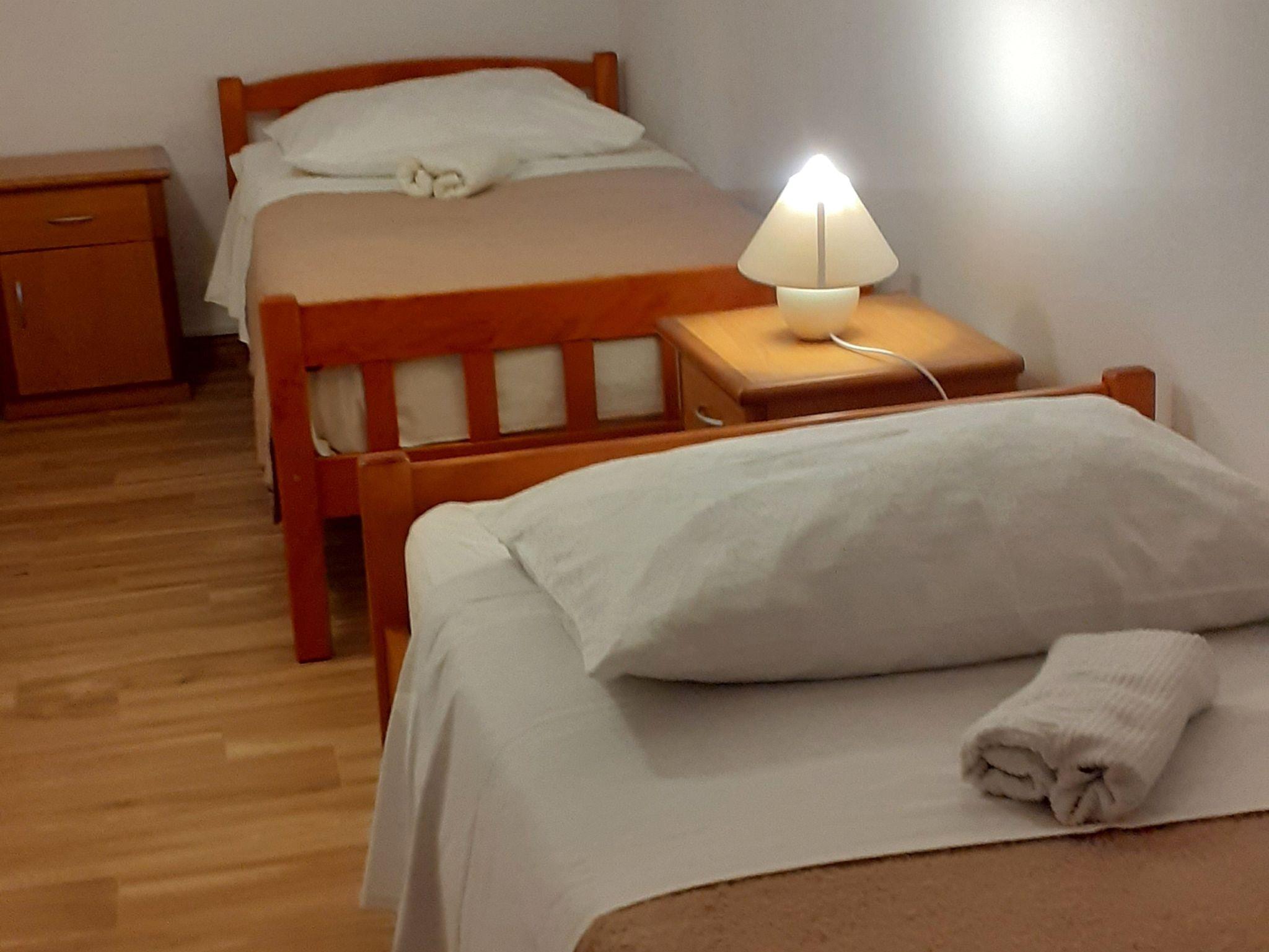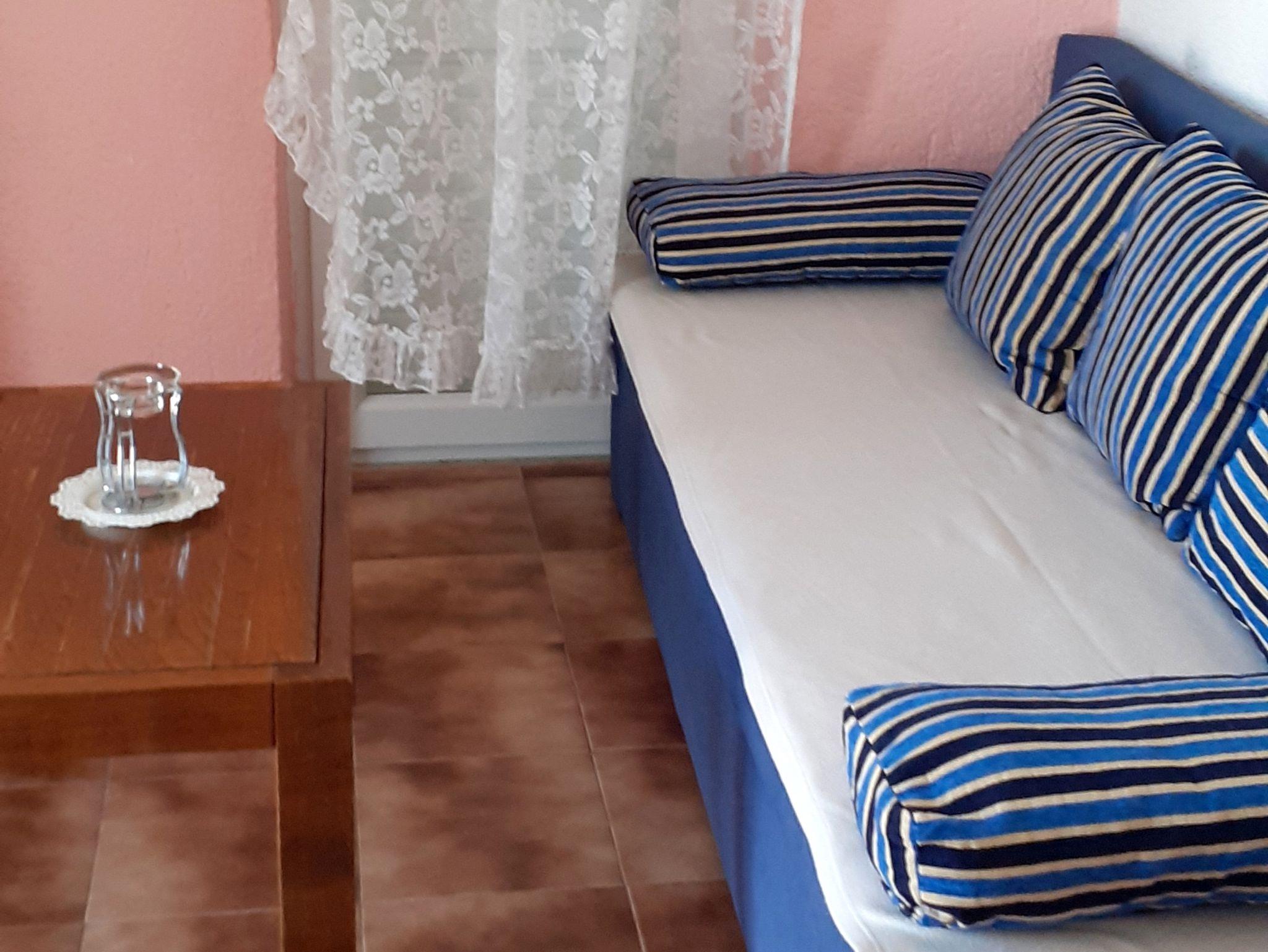 Ferienwohnung bietet Platz für 4 Gäste. Die Betten sind in Schlafzimmern, die es 2 gibt, innerhalb einer Gesamtfläche von 46m2, angeordnet. Die Gäste haben eine eigene Terrasse zur Verfügung, auf der sie in warmen Sommernächten genießen können. Das Apartment bietet Meerblick. Es ist erlaubt, Speisen auf dem Gemeinschafts-Grill vorzubereiten. Räume der gebuchten Unterkunftseinheit werden nicht in eine Ganze verbunden. IM PREIS INBEGRIFFEN: Kurtaxe, Endreinigung, Klimatisierung, Parkplatz, Internet, Bootsanlegeplatz, Liegestühle. VERBINDLICHE ZUSÄTZLICHE KOSTEN: Aufzahlung für Kurzaufenthalte (prozentualer Zuschlag pro Nächtigungsanzahl: 30% - 1, 20% - 2, 10% - 3). UNVERBINDLICHE ZUSÄTZLICHE KOSTEN: Wäschewaschen (5,00 € Waschen). Die Verfügbarkeit zusätzlicher Dienstleistungen in Ihrem reservierten Termin und die Preise derselben (falls nicht aufgeführt) müssen im Voraus überprüft werden. Zusätzliche Dienstleistungen die in der Zahlungsaufforderung nicht aufgeführt sind werden direkt beim Vermieter bezahlt, angenommen der Gast nutzt auch diese. Ermäßigung auf den Grundpreis: Gratistag 14=13 (bei einem Aufenthalt von 14 Tagen oder mehr erhalten Sie einen Gratistag für den Aufenthalt bis 31.12.26).