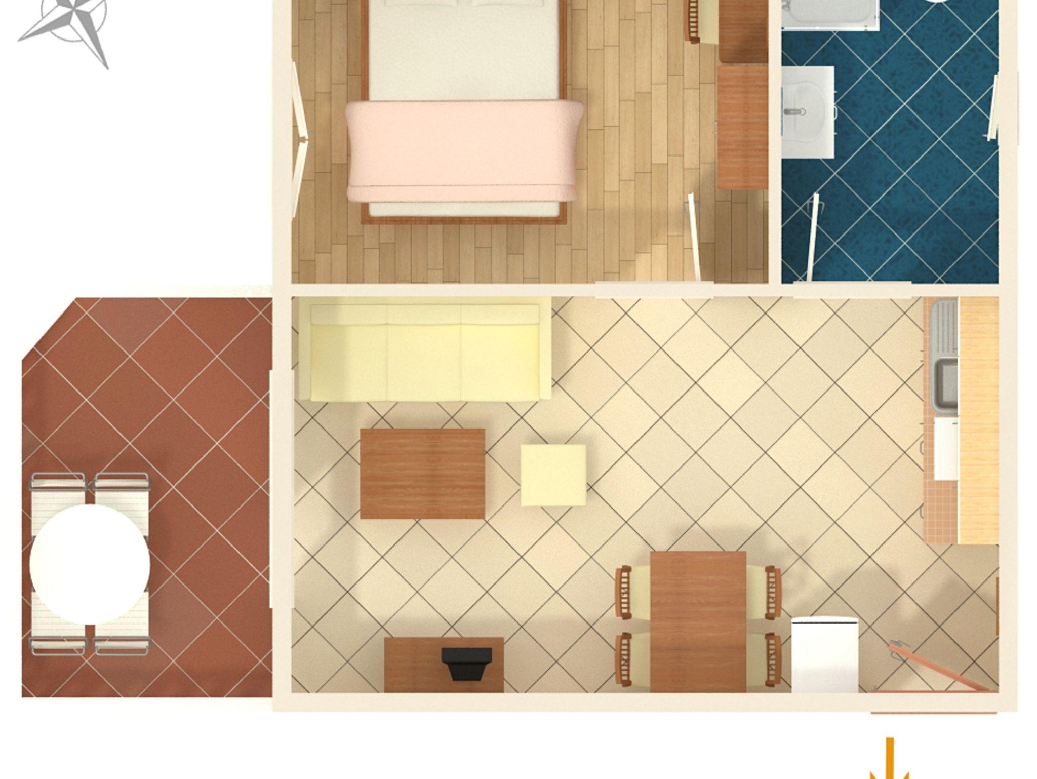 Ferienwohnung bietet Platz für 4 Gäste. Die Betten sind in Schlafzimmern, die es 1 gibt, und in Wohnzimmer, innerhalb einer Gesamtfläche von 33m2, angeordnet. Die Gäste haben eine eigene Terrasse zur Verfügung, auf der sie in warmen Sommernächten genießen können. Es ist erlaubt, Speisen auf dem Gemeinschafts-Grill vorzubereiten. Während ihres Aufenthalts können Gäste das gemeinsam zur Nutzung stehende Schwimmbad benutzen. In der gebuchten Unterkunftseinheit zahlt man am Ort ein Depositum ( der Preis ist an der Internetseite angeführt ). IM PREIS INBEGRIFFEN: Endreinigung, Klimatisierung, Pool, Parkplatz, Internet, Föhn. VERBINDLICHE ZUSÄTZLICHE KOSTEN: Kurtaxe (Erwachsene 0,93 € - 1,90 € Nacht/Person, Kinderermäßigung 12 - 17 Jahre), Kaution (100,00 € Einmalzahlung). Die Verfügbarkeit zusätzlicher Dienstleistungen in Ihrem reservierten Termin und die Preise derselben (falls nicht aufgeführt) müssen im Voraus überprüft werden. Zusätzliche Dienstleistungen die in der Zahlungsaufforderung nicht aufgeführt sind werden direkt beim Vermieter bezahlt, angenommen der Gast nutzt auch diese.