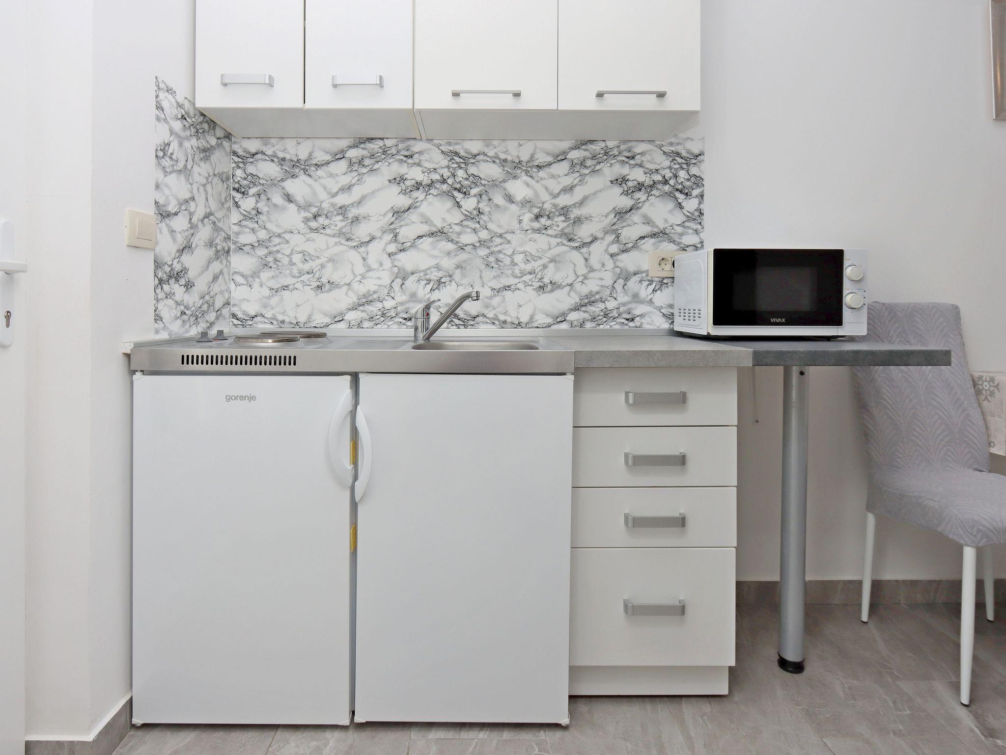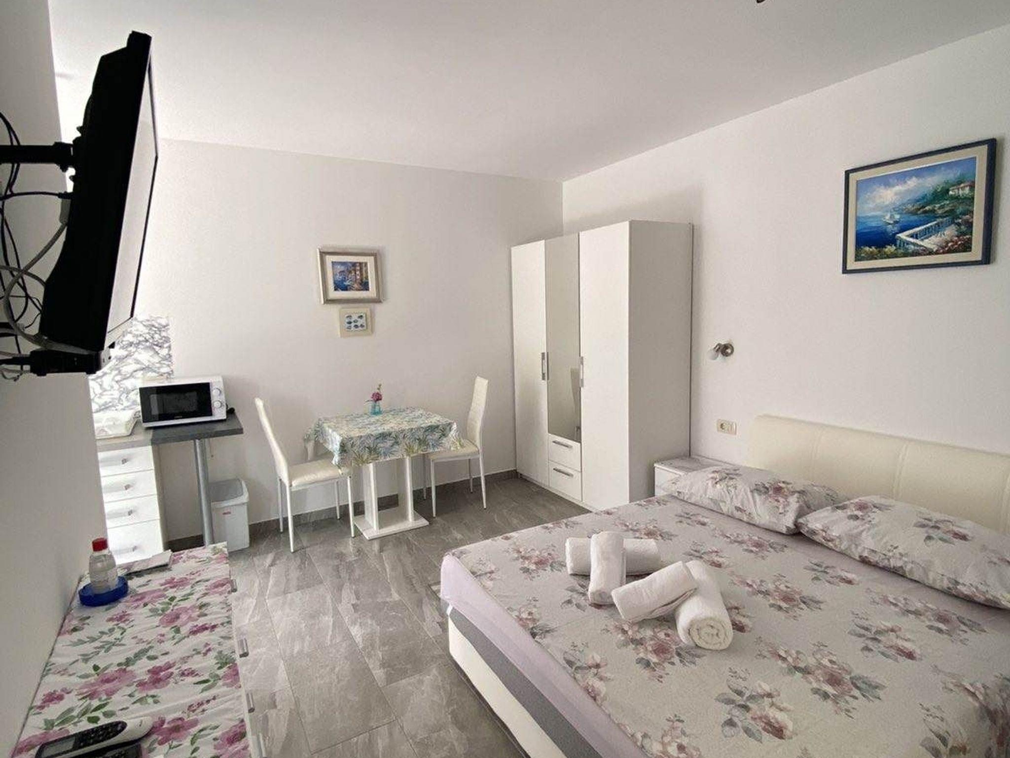 Studio bietet Platz für 2 Gäste. Die Betten sind in Schlafzimmern, die es 1 gibt, innerhalb einer Gesamtfläche von 20m2, angeordnet. Die Gäste haben eine eigene Terrasse zur Verfügung, auf der sie in warmen Sommernächten genießen können. Es ist erlaubt, Speisen auf dem Gemeinschafts-Grill vorzubereiten. IM PREIS INBEGRIFFEN: Kurtaxe, Endreinigung, Klimatisierung, Parkplatz, Internet, Wäschewaschen, Bügeleisen, Föhn. VERBINDLICHE ZUSÄTZLICHE KOSTEN: Aufzahlung für Kurzaufenthalte (prozentualer Zuschlag pro Nächtigungsanzahl: 30% - 1, 20% - 2, 10% - 3). Die Verfügbarkeit zusätzlicher Dienstleistungen in Ihrem reservierten Termin und die Preise derselben (falls nicht aufgeführt) müssen im Voraus überprüft werden. Zusätzliche Dienstleistungen die in der Zahlungsaufforderung nicht aufgeführt sind werden direkt beim Vermieter bezahlt, angenommen der Gast nutzt auch diese.