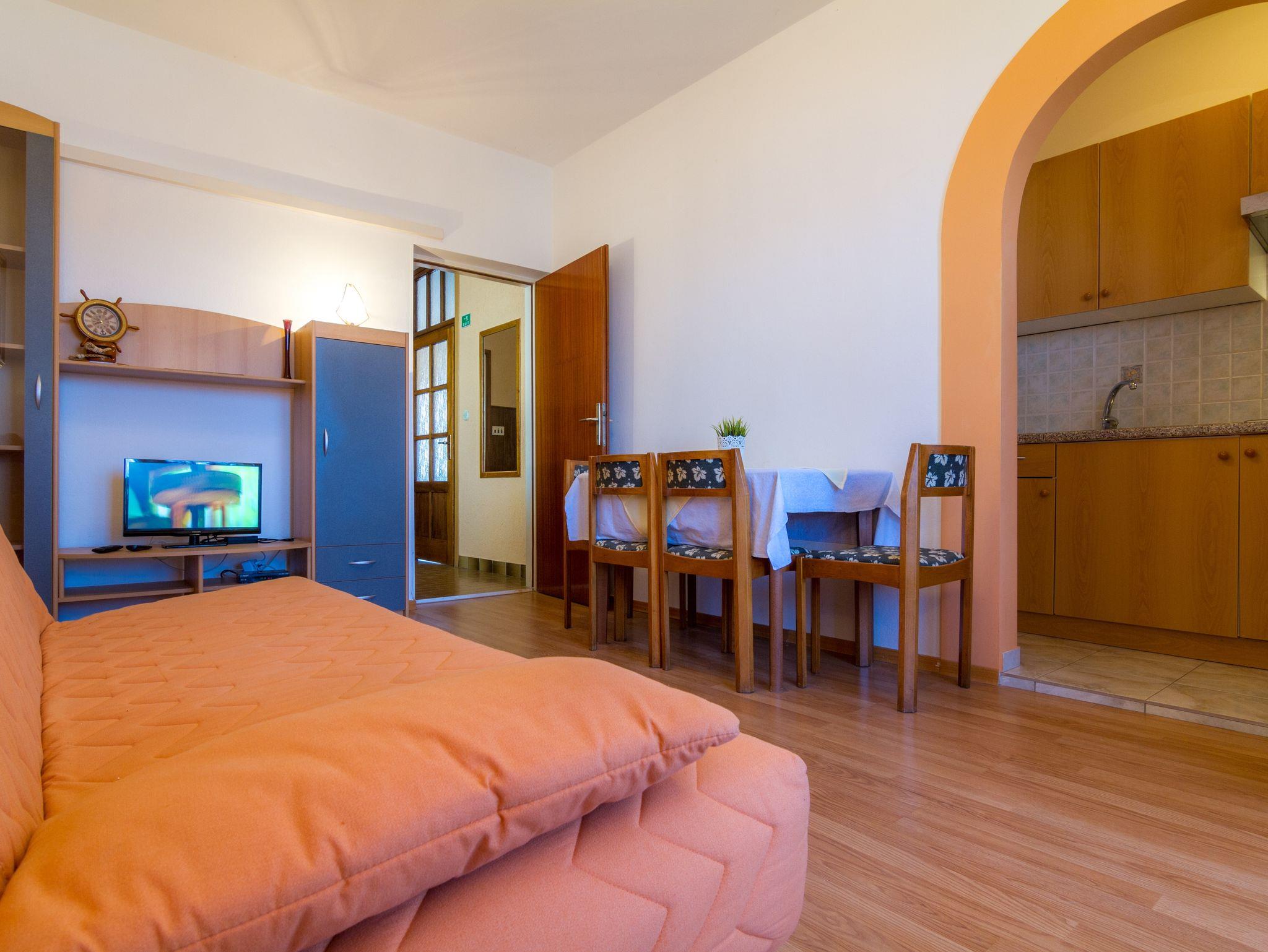Ferienwohnung bietet Platz für 4 Gäste. Die Betten sind in Schlafzimmern, die es 1 gibt, und in Wohnzimmer, innerhalb einer Gesamtfläche von 36m2, angeordnet. Die Gäste haben eine eigene Terrasse zur Verfügung, auf der sie in warmen Sommernächten genießen können. Das Apartment bietet Meerblick. Es ist erlaubt, Speisen auf dem Gemeinschafts-Grill vorzubereiten. IM PREIS INBEGRIFFEN: Kurtaxe, Endreinigung, Klimatisierung, Parkplatz, Internet, Kinderbett, Bügeleisen, Bügelbrett, Föhn. UNVERBINDLICHE ZUSÄTZLICHE KOSTEN: Wäschewaschen (7,00 € Waschen), Bootsanlegeplatz (10,00 € pro Nacht), Zusatzbett (7,00 € pro Nacht). Die Verfügbarkeit zusätzlicher Dienstleistungen in Ihrem reservierten Termin und die Preise derselben (falls nicht aufgeführt) müssen im Voraus überprüft werden. Zusätzliche Dienstleistungen die in der Zahlungsaufforderung nicht aufgeführt sind werden direkt beim Vermieter bezahlt, angenommen der Gast nutzt auch diese.