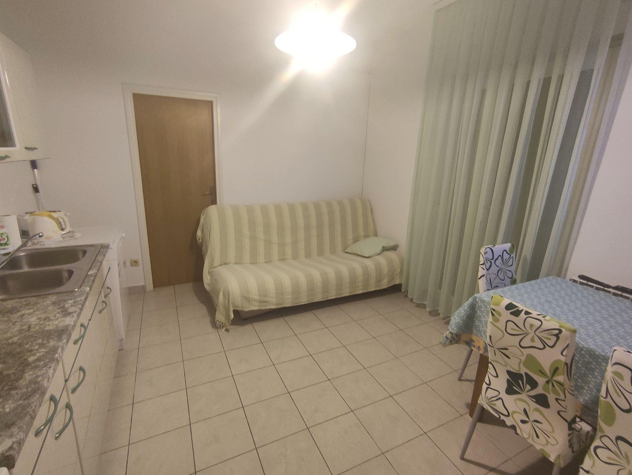 Ferienwohnung bietet Platz für 4 Gäste. Die Betten sind in Schlafzimmern, die es 2 gibt, innerhalb einer Gesamtfläche von 46m2, angeordnet. Die Gäste haben eine eigene Terrasse zur Verfügung, auf der sie in warmen Sommernächten genießen können. Das Apartment bietet Meerblick. Es ist erlaubt, Speisen auf dem Gemeinschafts-Grill vorzubereiten. In der Unterkunftseinheit besteht die Möglichkeit des Mitbringens von Haustieren gegen Aufpreis. IM PREIS INBEGRIFFEN: Kurtaxe, Endreinigung, Klimatisierung, Zentralheizung, Parkplatz, Internet, Fahrrad, Bügeleisen, Bügelbrett, Föhn. UNVERBINDLICHE ZUSÄTZLICHE KOSTEN: Wäschewaschen (2,00 € Waschen), Bootsanlegeplatz (10,00 € pro Nacht), Haustiere (8,00 € pro Nacht). Die Verfügbarkeit zusätzlicher Dienstleistungen in Ihrem reservierten Termin und die Preise derselben (falls nicht aufgeführt) müssen im Voraus überprüft werden. Zusätzliche Dienstleistungen die in der Zahlungsaufforderung nicht aufgeführt sind werden direkt beim Vermieter bezahlt, angenommen der Gast nutzt auch diese.