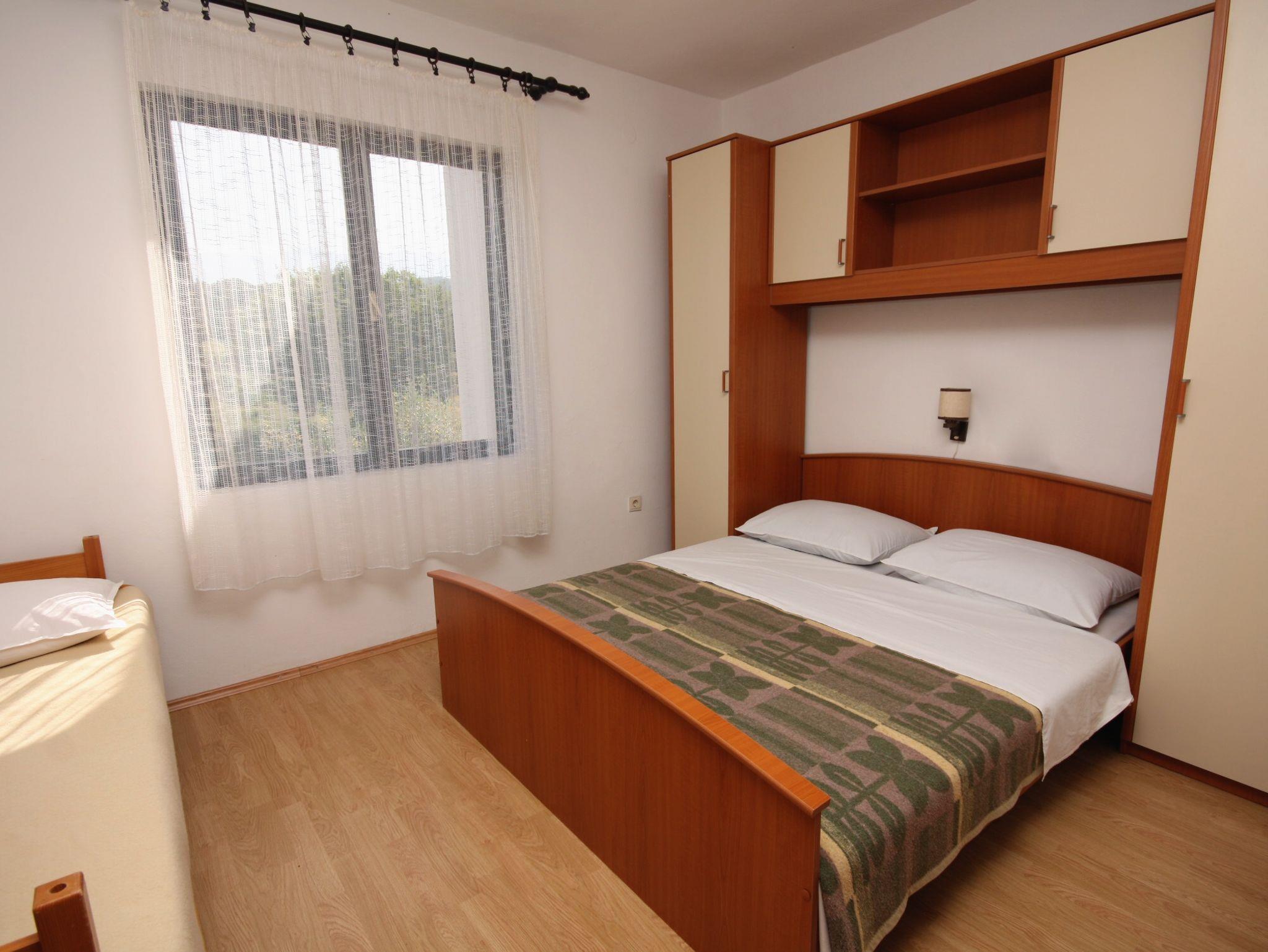 Ferienwohnung bietet Platz für 4 Gäste. Die Betten sind in Schlafzimmern, die es 2 gibt, innerhalb einer Gesamtfläche von 42m2, angeordnet. Die Gäste haben einen eigenen Balkon zur Verfügung, auf der sie in warmen Sommernächten genießen können. Das Apartment bietet Meerblick. Es ist erlaubt, Speisen auf dem Gemeinschafts-Grill vorzubereiten. Während ihres Aufenthalts können Gäste das gemeinsam zur Nutzung stehende Schwimmbad benutzen. IM PREIS INBEGRIFFEN: Kurtaxe, Endreinigung, Pool, Parkplatz, Internet, Föhn, Liegestühle. VERBINDLICHE ZUSÄTZLICHE KOSTEN: Aufzahlung für Kurzaufenthalte (prozentualer Zuschlag pro Nächtigungsanzahl: 30% - 1, 20% - 2, 10% - 3). UNVERBINDLICHE ZUSÄTZLICHE KOSTEN: Klimatisierung (5,00 € pro Nacht), Wäschewaschen (5,00 € Waschen), Bootsanlegeplatz (5,00 € pro Nacht). Die Verfügbarkeit zusätzlicher Dienstleistungen in Ihrem reservierten Termin und die Preise derselben (falls nicht aufgeführt) müssen im Voraus überprüft werden. Zusätzliche Dienstleistungen die in der Zahlungsaufforderung nicht aufgeführt sind werden direkt beim Vermieter bezahlt, angenommen der Gast nutzt auch diese.