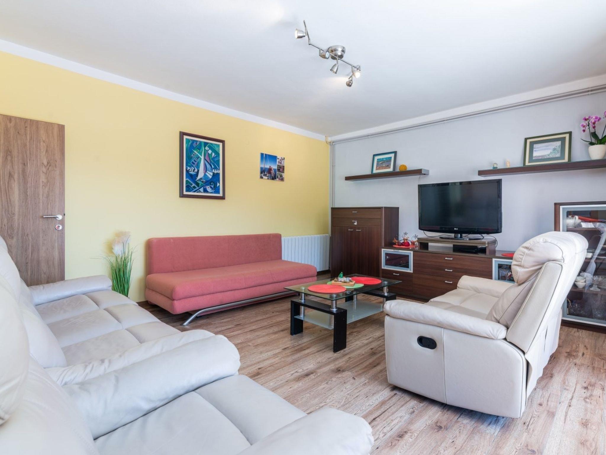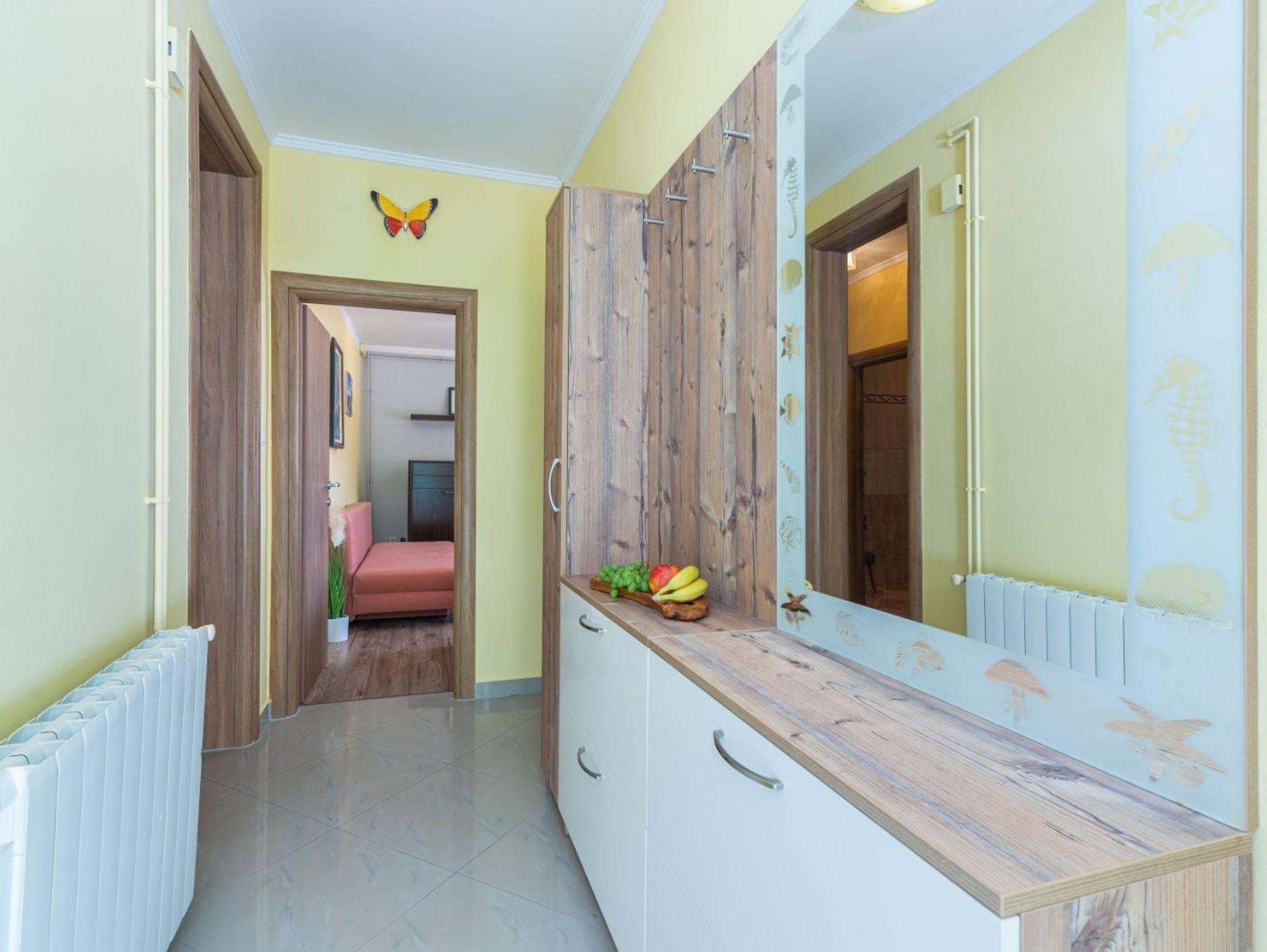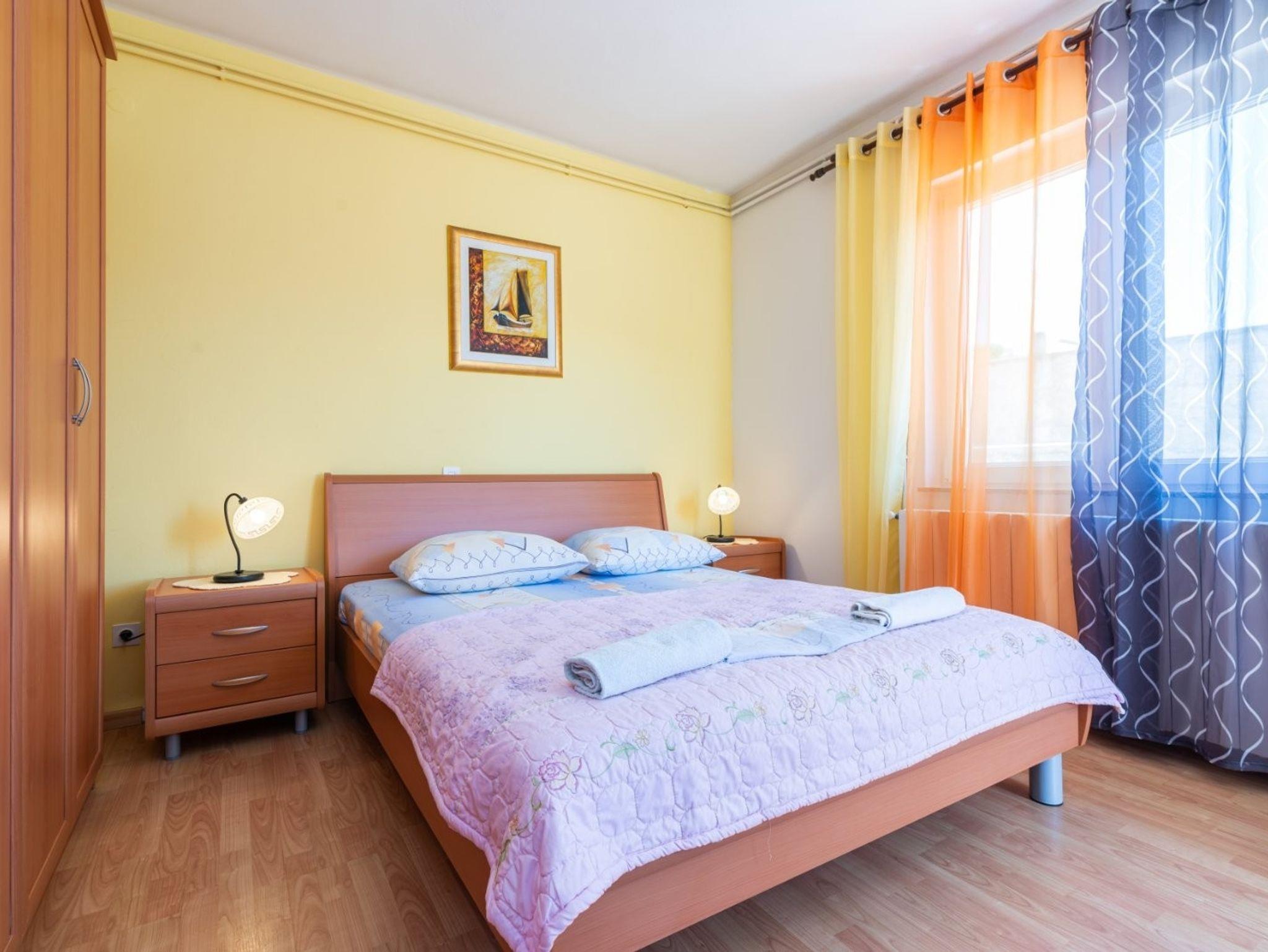 Ferienwohnung bietet Platz für 6 Gäste. Die Betten sind in Schlafzimmern, die es 2 gibt, und in Wohnzimmer, innerhalb einer Gesamtfläche von 91m2, angeordnet. Die Gäste haben eine eigene Terrasse zur Verfügung, auf der sie in warmen Sommernächten genießen können. Das Apartment bietet Meerblick. Es ist erlaubt, Speisen auf dem Gemeinschafts-Grill vorzubereiten. In der Unterkunftseinheit besteht die Möglichkeit des Mitbringens von Haustieren gegen Aufpreis. IM PREIS INBEGRIFFEN: Kurtaxe, Endreinigung, Klimatisierung, Parkplatz, Garage, Internet, Kinderbett, Bügeleisen, Bügelbrett, Föhn. UNVERBINDLICHE ZUSÄTZLICHE KOSTEN: Zentralheizung (5,00 € pro Nacht), Boot (100,00 € pro Nacht), Bootsanlegeplatz (10,00 € pro Nacht), Haustiere (10,00 € pro Nacht). Die Verfügbarkeit zusätzlicher Dienstleistungen in Ihrem reservierten Termin und die Preise derselben (falls nicht aufgeführt) müssen im Voraus überprüft werden. Zusätzliche Dienstleistungen die in der Zahlungsaufforderung nicht aufgeführt sind werden direkt beim Vermieter bezahlt, angenommen der Gast nutzt auch diese.
