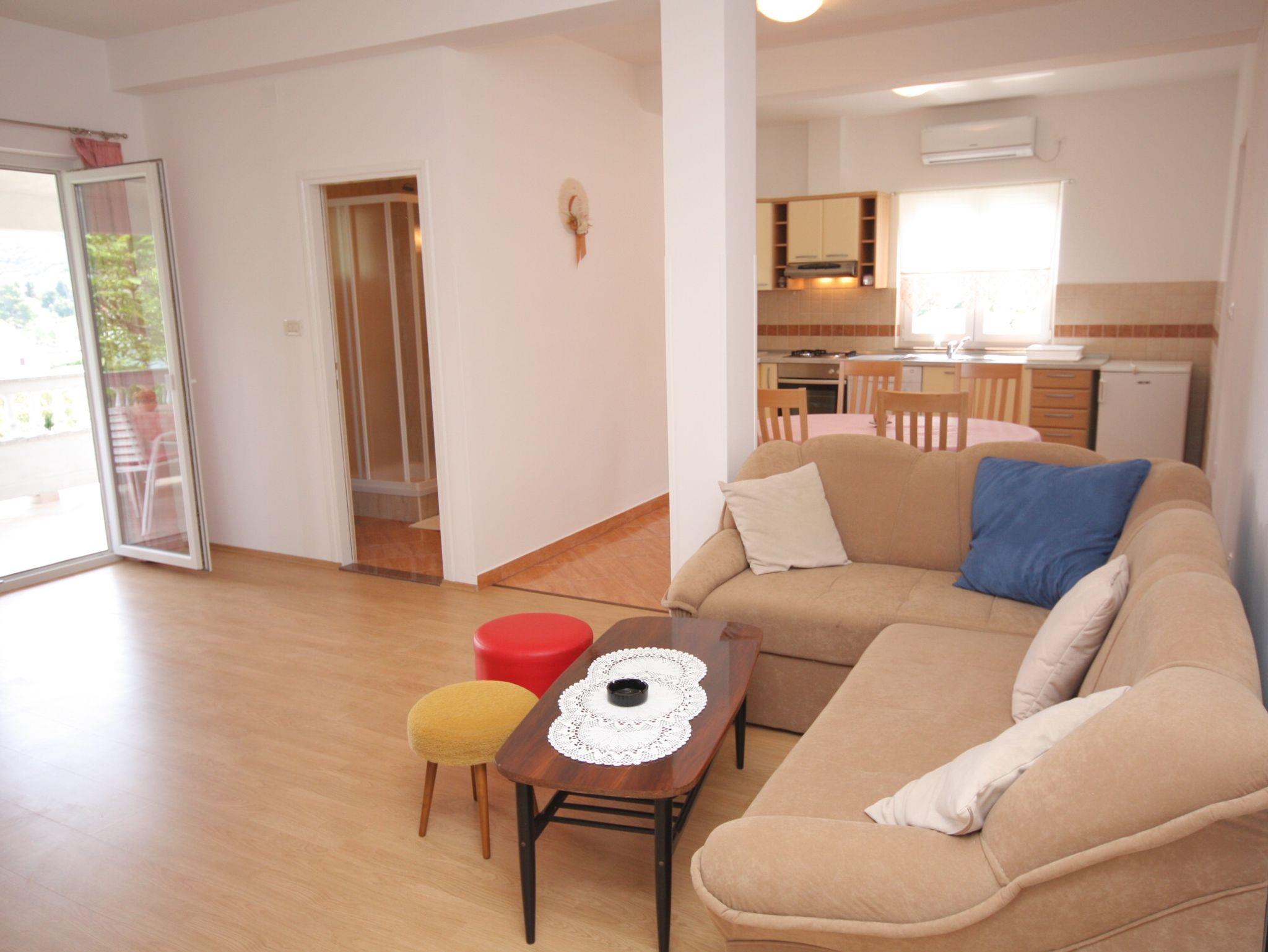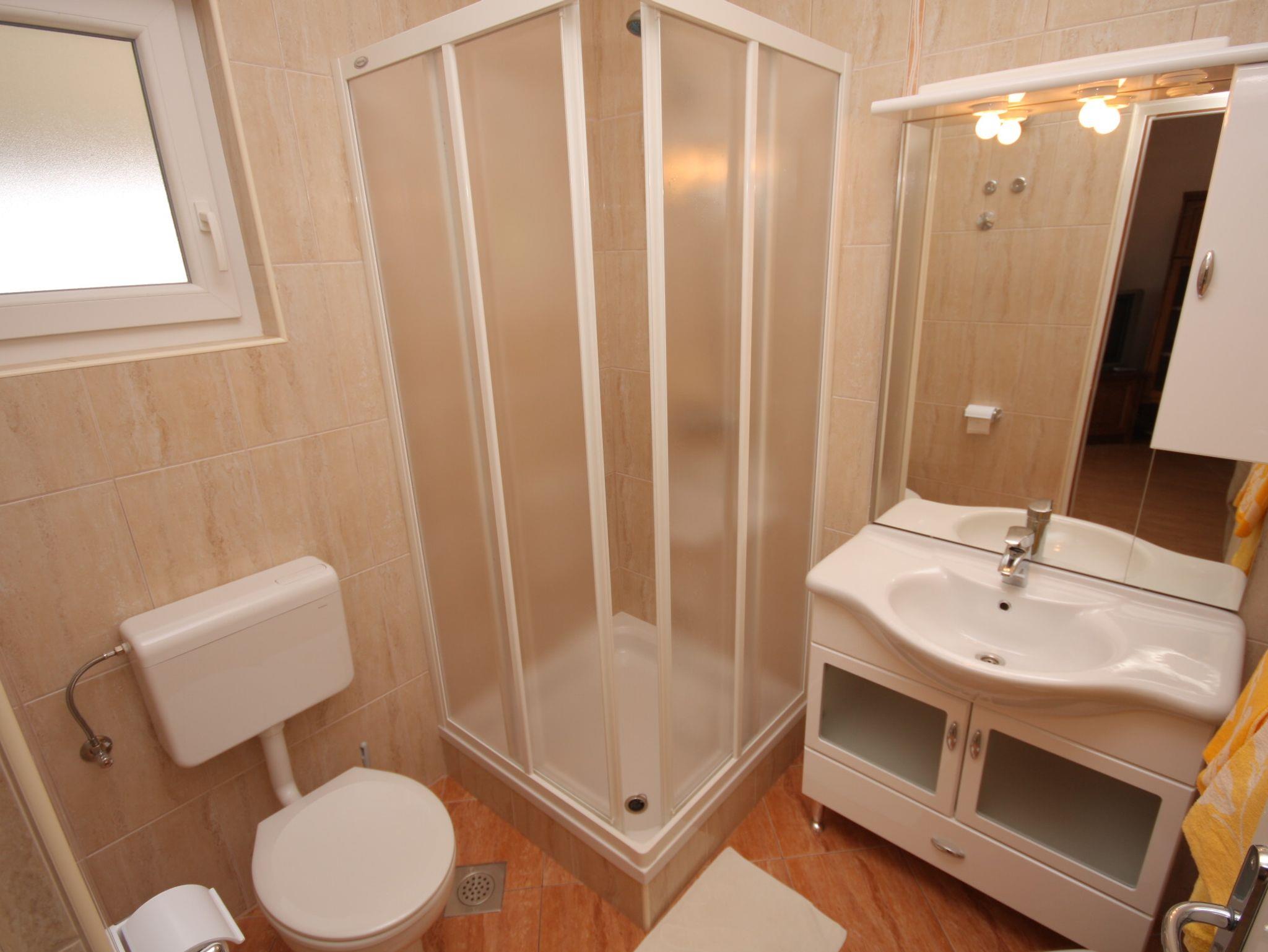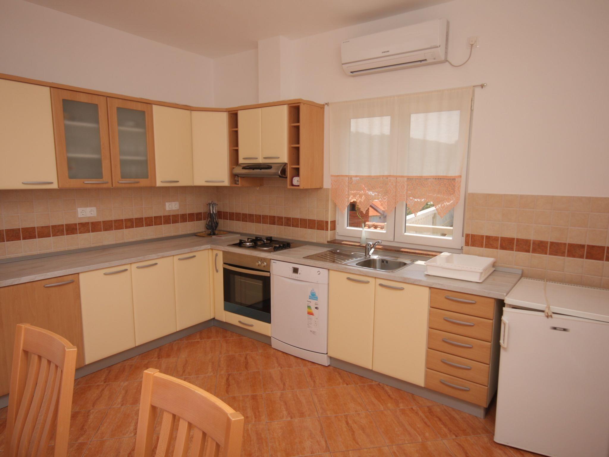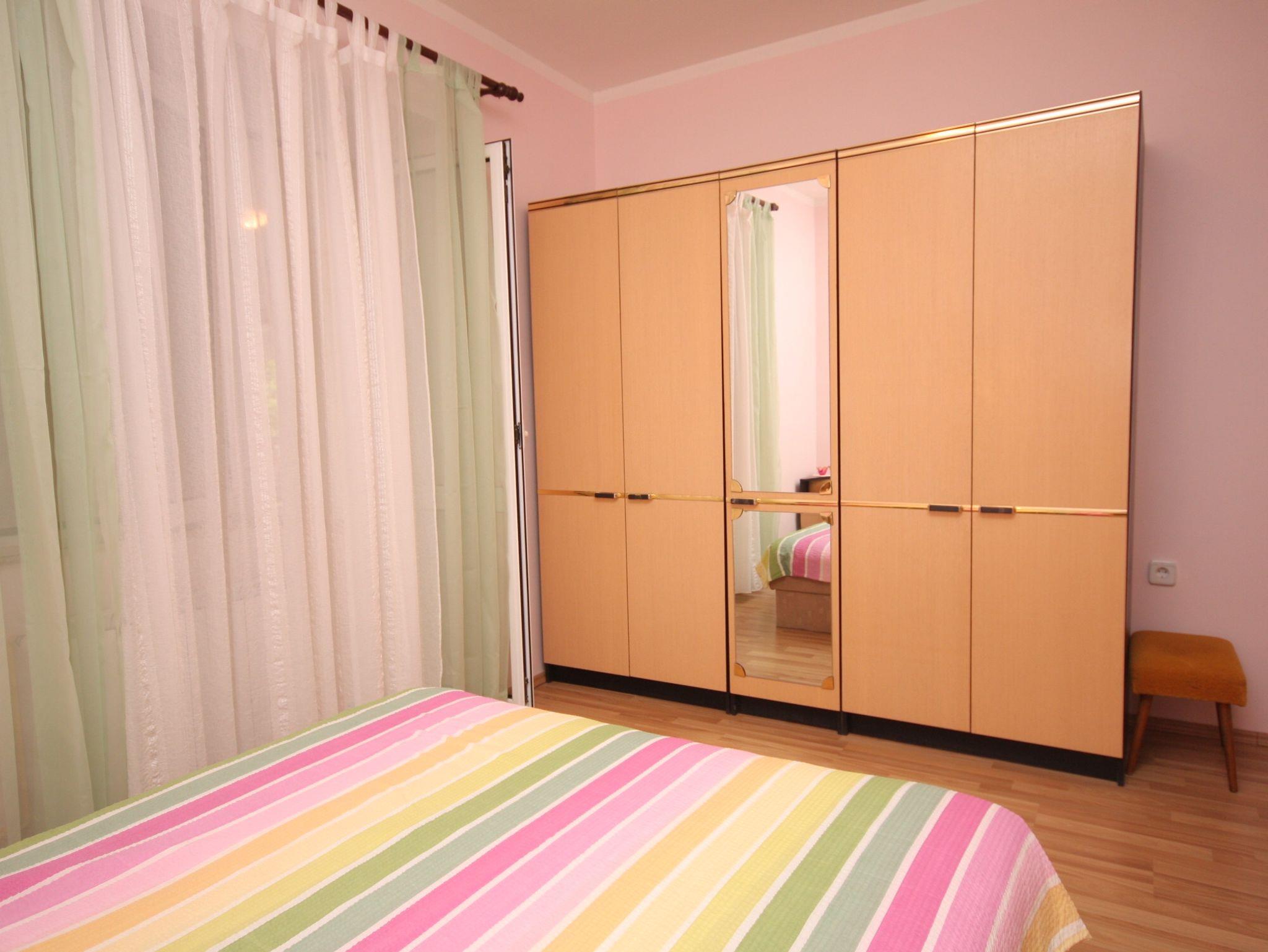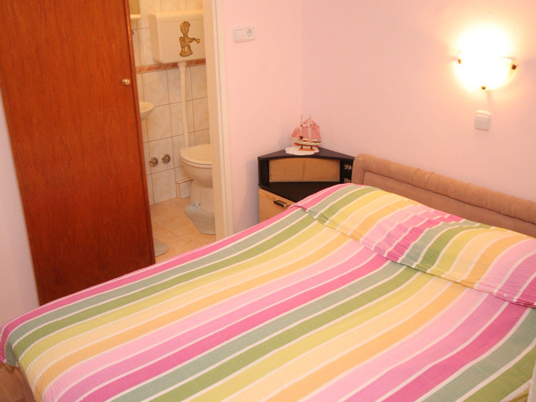 Ferienwohnung bietet Platz für 4 Gäste. Die Betten sind in Schlafzimmern, die es 2 gibt, innerhalb einer Gesamtfläche von 70m2, angeordnet. Die Gäste haben eine eigene Terrasse zur Verfügung, auf der sie in warmen Sommernächten genießen können. Das Apartment bietet Meerblick. Es ist erlaubt, Speisen auf dem Gemeinschafts-Grill vorzubereiten. In der Unterkunftseinheit besteht die Möglichkeit des Mitbringens von Haustieren gegen Aufpreis. IM PREIS INBEGRIFFEN: Kurtaxe, Endreinigung, Klimatisierung, Parkplatz, Internet, Bootsanlegeplatz, Liegestühle. VERBINDLICHE ZUSÄTZLICHE KOSTEN: Aufzahlung für Kurzaufenthalte (prozentualer Zuschlag pro Nächtigungsanzahl: 30% - 1, 20% - 2, 10% - 3). UNVERBINDLICHE ZUSÄTZLICHE KOSTEN: Frühstück (10,00 €, 50% Nachlass für Kinder zwischen 4 und 12 Jahren, Kinder bis 4 Jahre sind frei.), Haustiere (7,00 € pro Nacht). Die Verfügbarkeit zusätzlicher Dienstleistungen in Ihrem reservierten Termin und die Preise derselben (falls nicht aufgeführt) müssen im Voraus überprüft werden. Zusätzliche Dienstleistungen die in der Zahlungsaufforderung nicht aufgeführt sind werden direkt beim Vermieter bezahlt, angenommen der Gast nutzt auch diese.