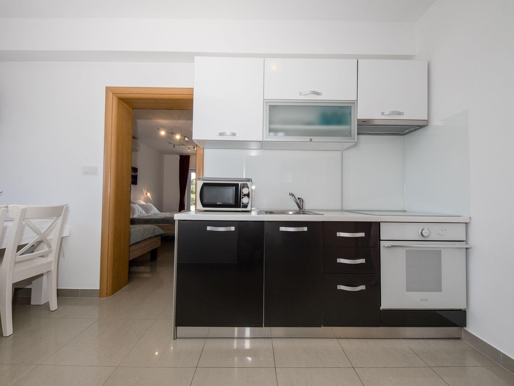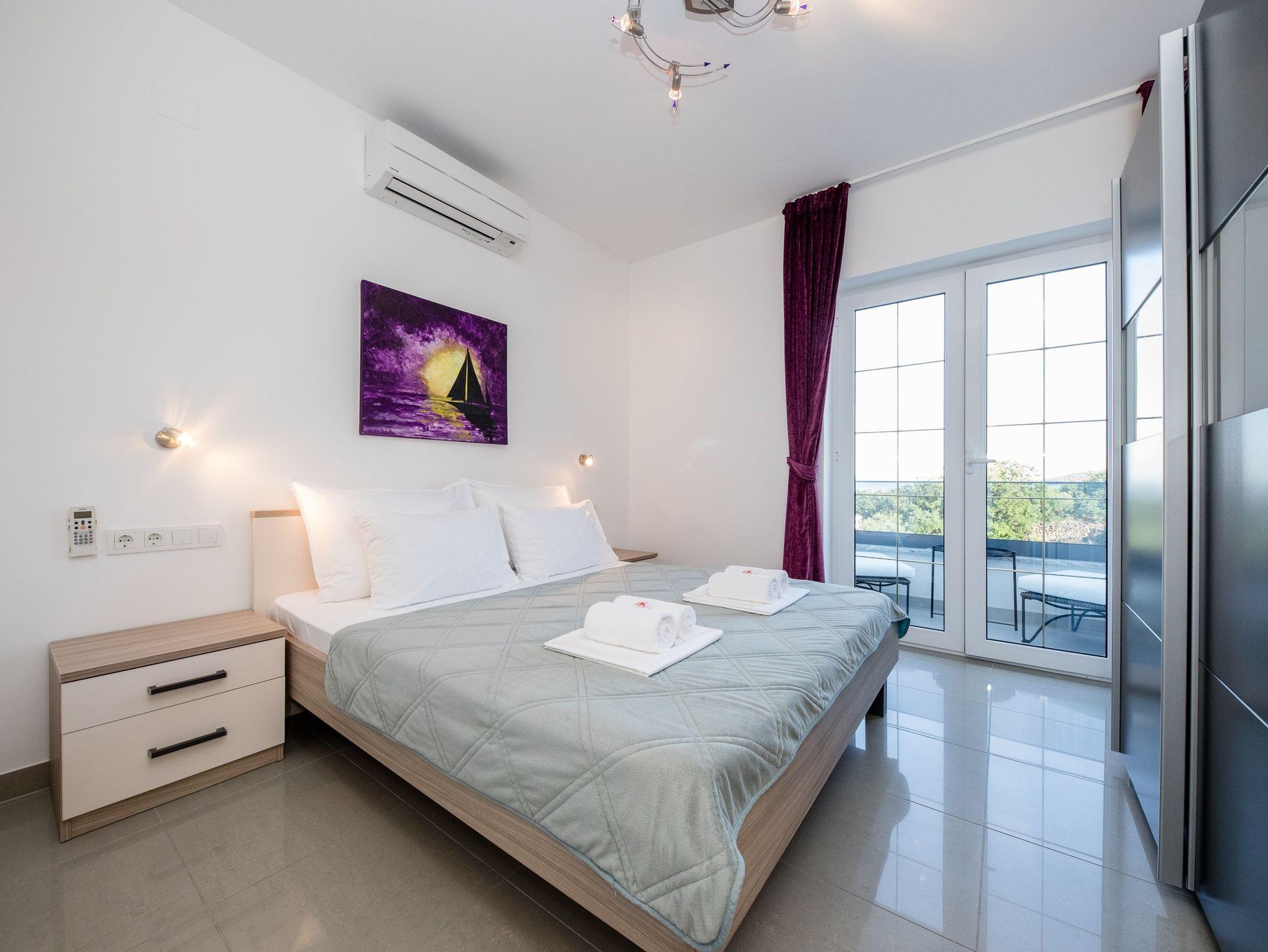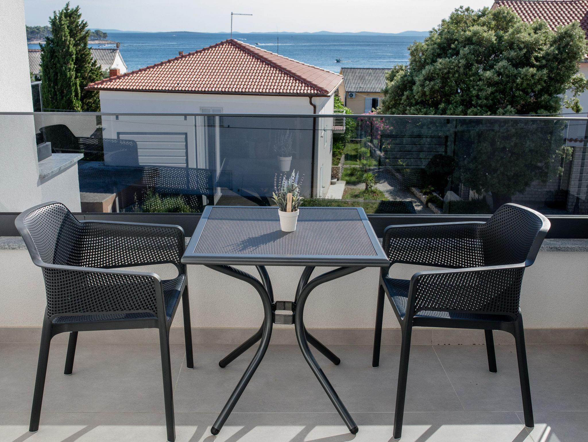 Ferienwohnung bietet Platz für 5 Gäste. Die Betten sind in Schlafzimmern, die es 2 gibt, innerhalb einer Gesamtfläche von 39m2, angeordnet. Die Gäste haben einen eigenen Balkon zur Verfügung, auf der sie in warmen Sommernächten genießen können. Das Apartment bietet Meerblick. Es ist erlaubt, Speisen auf dem Gemeinschafts-Grill vorzubereiten. IM PREIS INBEGRIFFEN: Kurtaxe, Endreinigung, Klimatisierung, Parkplatz, Internet. VERBINDLICHE ZUSÄTZLICHE KOSTEN: Aufzahlung für Kurzaufenthalte (prozentualer Zuschlag pro Nächtigungsanzahl: 30% - 1, 20% - 2, 10% - 3). UNVERBINDLICHE ZUSÄTZLICHE KOSTEN: Bootsanlegeplatz (25,00 € pro Nacht). Die Verfügbarkeit zusätzlicher Dienstleistungen in Ihrem reservierten Termin und die Preise derselben (falls nicht aufgeführt) müssen im Voraus überprüft werden. Zusätzliche Dienstleistungen die in der Zahlungsaufforderung nicht aufgeführt sind werden direkt beim Vermieter bezahlt, angenommen der Gast nutzt auch diese.