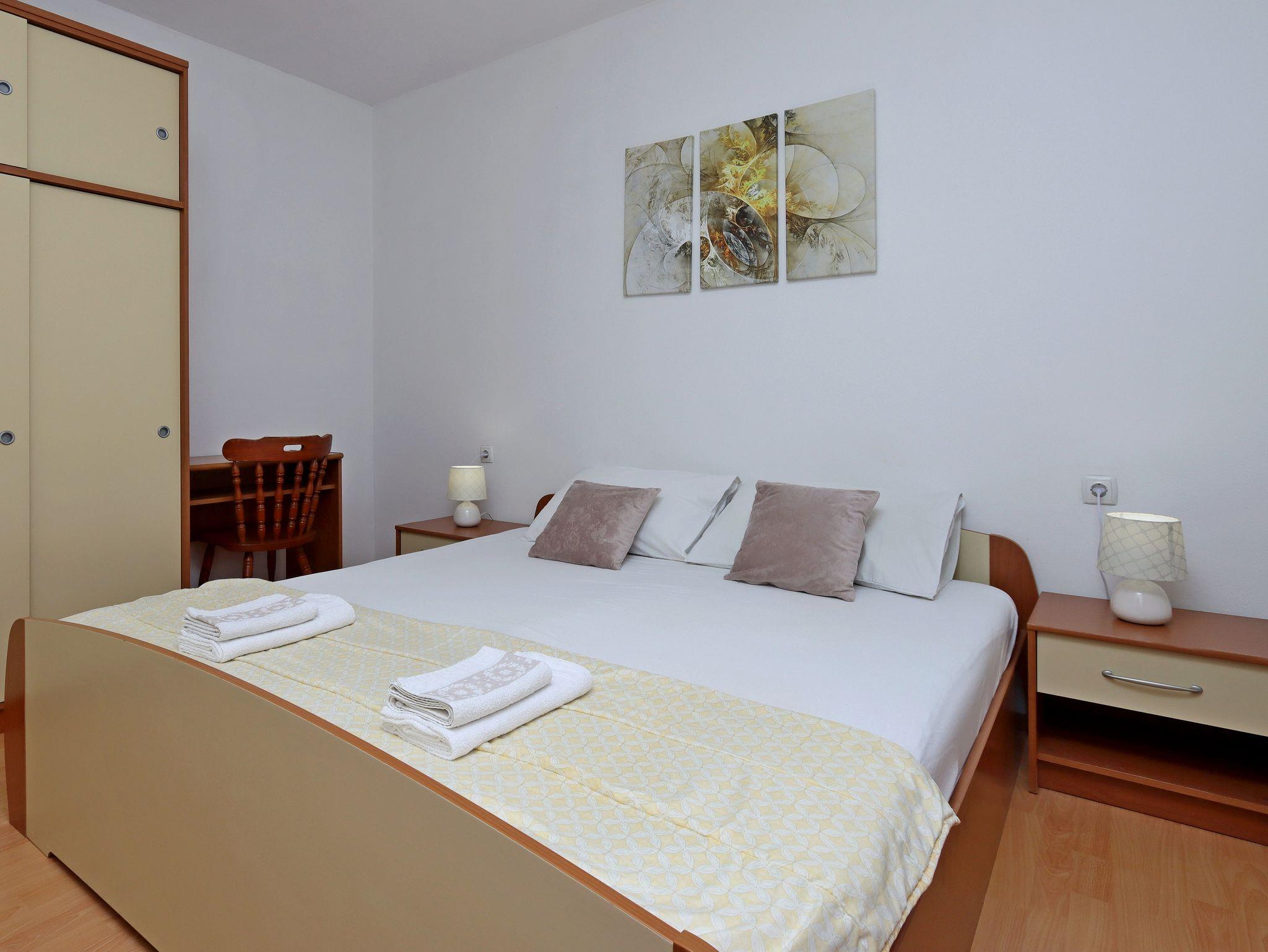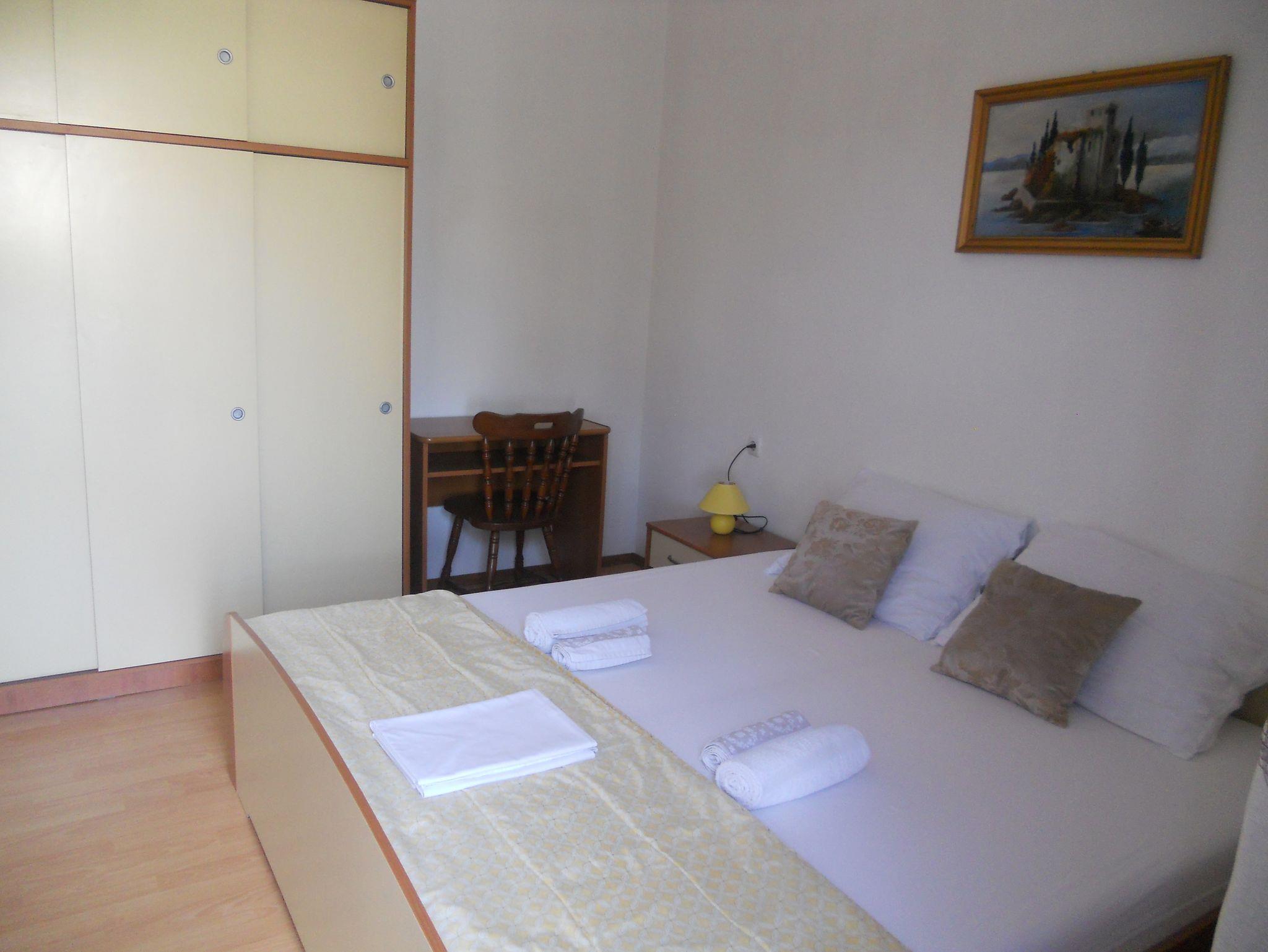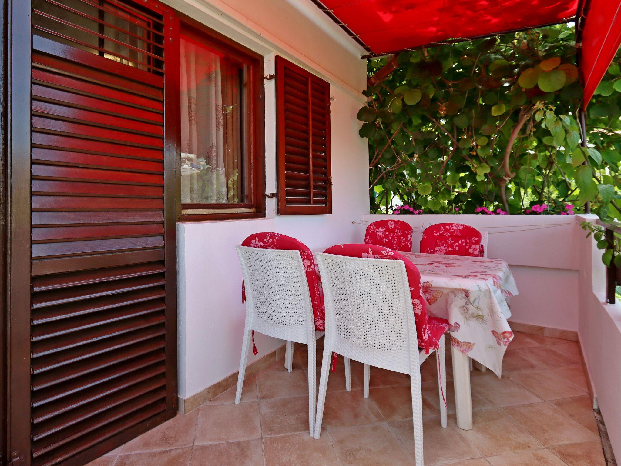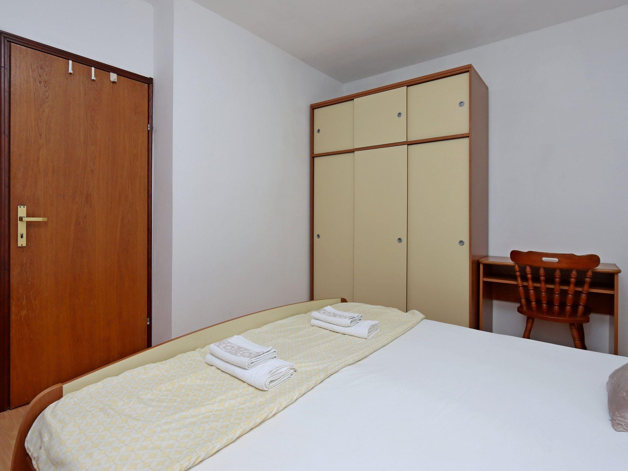 Ferienwohnung bietet Platz für 4 Gäste. Die Betten sind in Schlafzimmern, die es 2 gibt, innerhalb einer Gesamtfläche von 36m2, angeordnet. Die Gäste haben eine eigene Terrasse zur Verfügung, auf der sie in warmen Sommernächten genießen können. Das Apartment bietet Meerblick. Es ist erlaubt, Speisen auf dem Gemeinschafts-Grill vorzubereiten. In der Unterkunftseinheit besteht die Möglichkeit des Mitbringens von Haustieren gegen Aufpreis. IM PREIS INBEGRIFFEN: Kurtaxe, Endreinigung, Parkplatz, Internet, Wäschewaschen, Bügeleisen. VERBINDLICHE ZUSÄTZLICHE KOSTEN: Aufzahlung für Kurzaufenthalte (prozentualer Zuschlag pro Nächtigungsanzahl: 30% - 1, 20% - 2, 10% - 3). UNVERBINDLICHE ZUSÄTZLICHE KOSTEN: Klimatisierung (5,00 € pro Nacht), Bootsanlegeplatz (7,00 € pro Nacht), Haustiere (3,00 € pro Nacht). Die Verfügbarkeit zusätzlicher Dienstleistungen in Ihrem reservierten Termin und die Preise derselben (falls nicht aufgeführt) müssen im Voraus überprüft werden. Zusätzliche Dienstleistungen die in der Zahlungsaufforderung nicht aufgeführt sind werden direkt beim Vermieter bezahlt, angenommen der Gast nutzt auch diese.