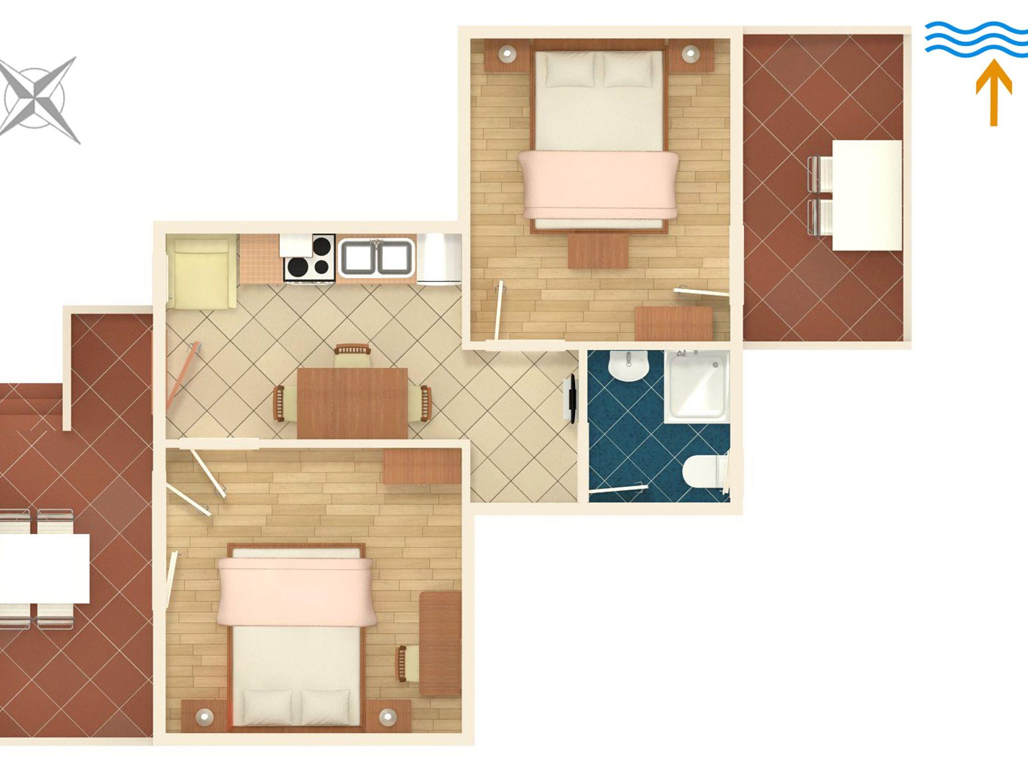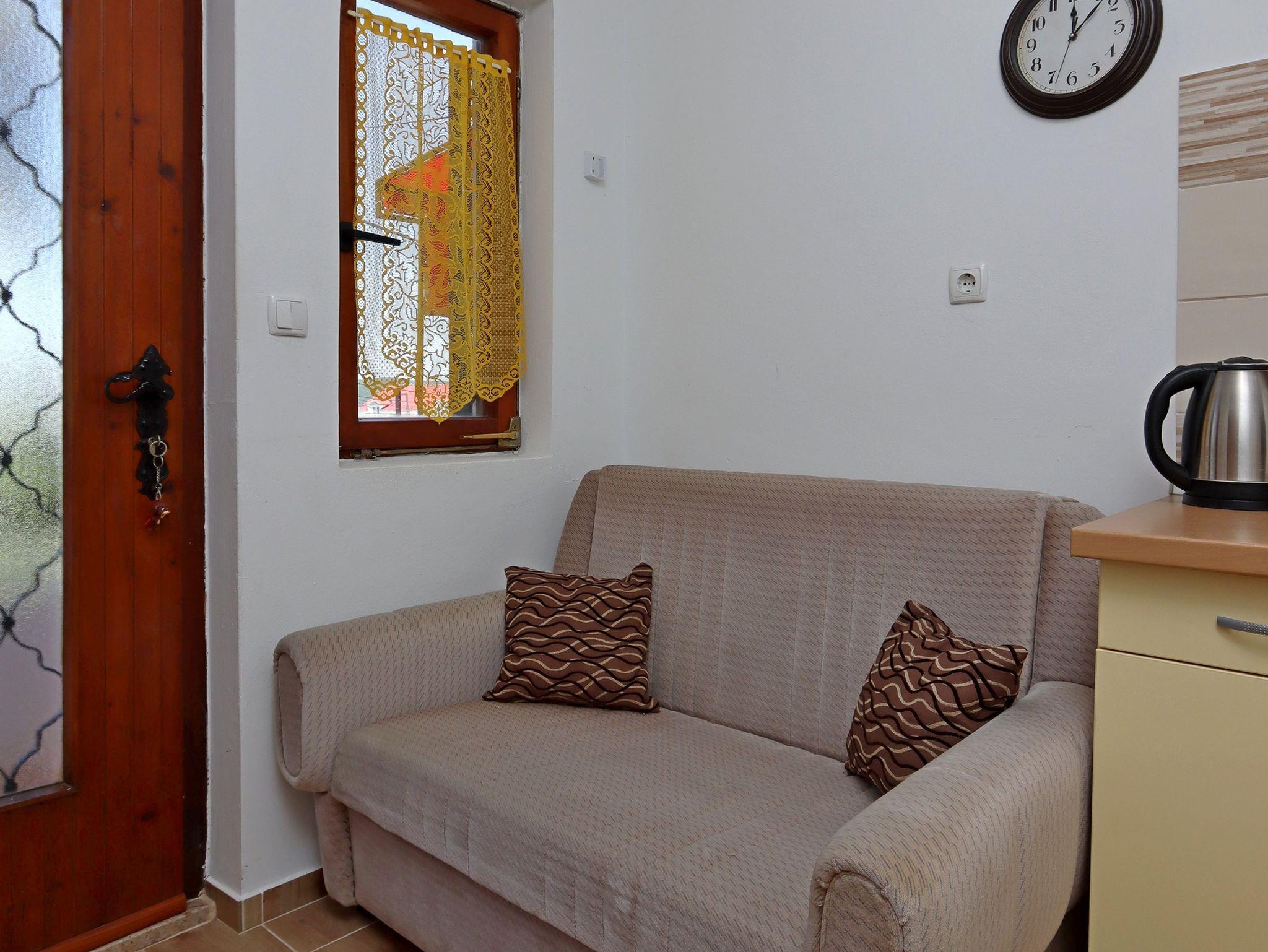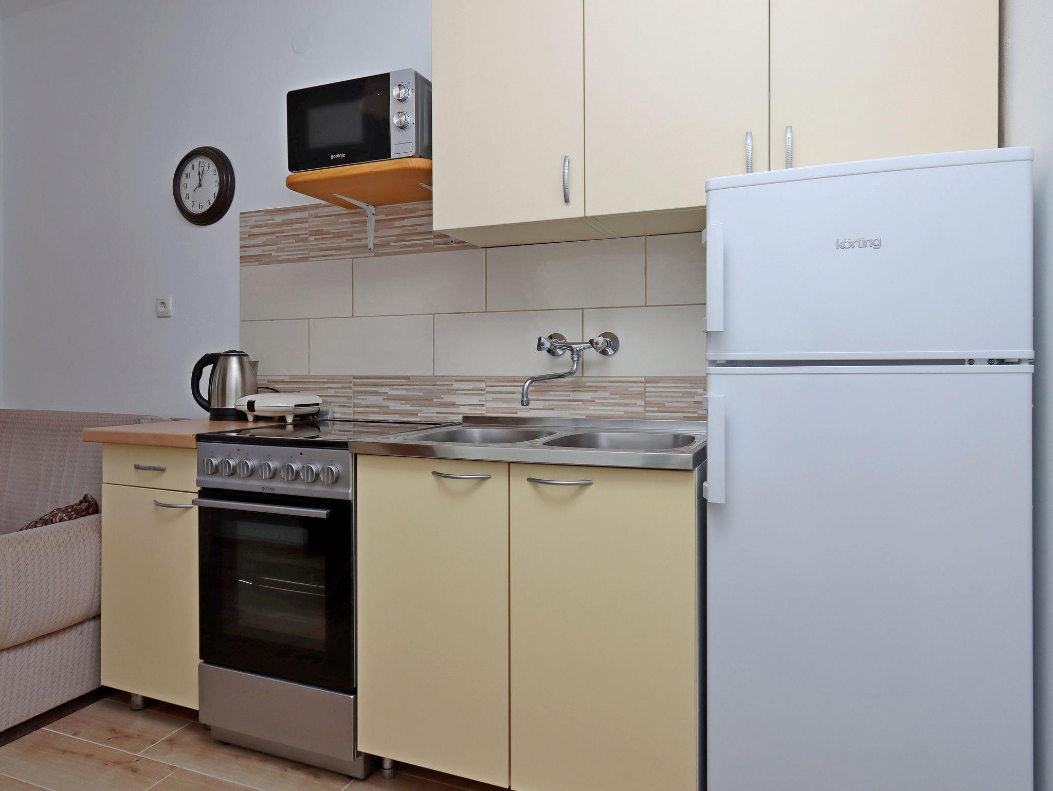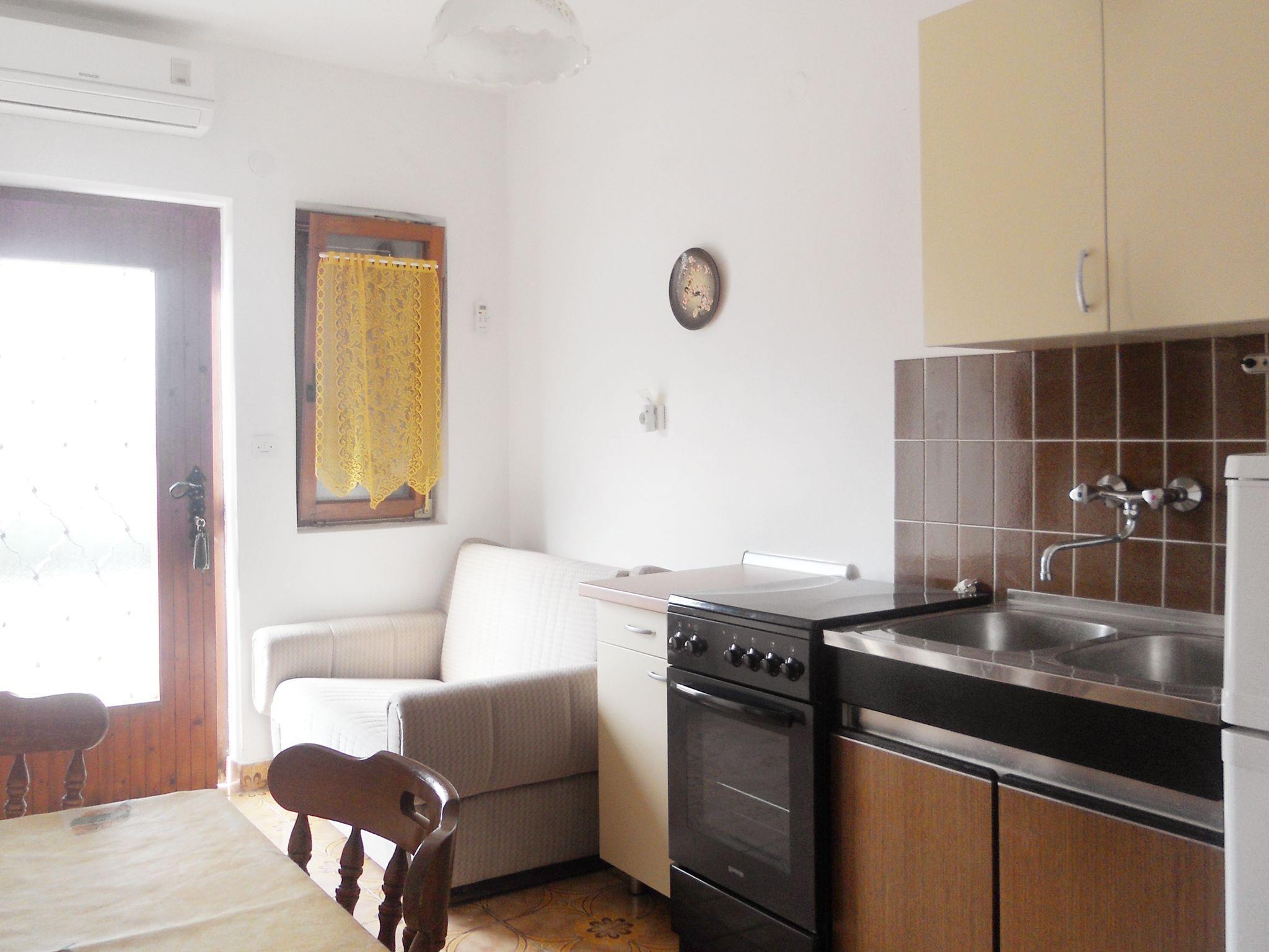 Ferienwohnung bietet Platz für 4 Gäste. Die Betten sind in Schlafzimmern, die es 2 gibt, innerhalb einer Gesamtfläche von 36m2, angeordnet. Die Gäste haben eine eigene Terrasse zur Verfügung, auf der sie in warmen Sommernächten genießen können. Das Apartment bietet Meerblick. Es ist erlaubt, Speisen auf dem Gemeinschafts-Grill vorzubereiten. In der Unterkunftseinheit besteht die Möglichkeit des Mitbringens von Haustieren gegen Aufpreis. IM PREIS INBEGRIFFEN: Kurtaxe, Endreinigung, Parkplatz, Internet, Wäschewaschen, Bügeleisen. VERBINDLICHE ZUSÄTZLICHE KOSTEN: Aufzahlung für Kurzaufenthalte (prozentualer Zuschlag pro Nächtigungsanzahl: 30% - 1, 20% - 2, 10% - 3). UNVERBINDLICHE ZUSÄTZLICHE KOSTEN: Klimatisierung (5,00 € pro Nacht), Bootsanlegeplatz (7,00 € pro Nacht), Haustiere (3,00 € pro Nacht). Die Verfügbarkeit zusätzlicher Dienstleistungen in Ihrem reservierten Termin und die Preise derselben (falls nicht aufgeführt) müssen im Voraus überprüft werden. Zusätzliche Dienstleistungen die in der Zahlungsaufforderung nicht aufgeführt sind werden direkt beim Vermieter bezahlt, angenommen der Gast nutzt auch diese.