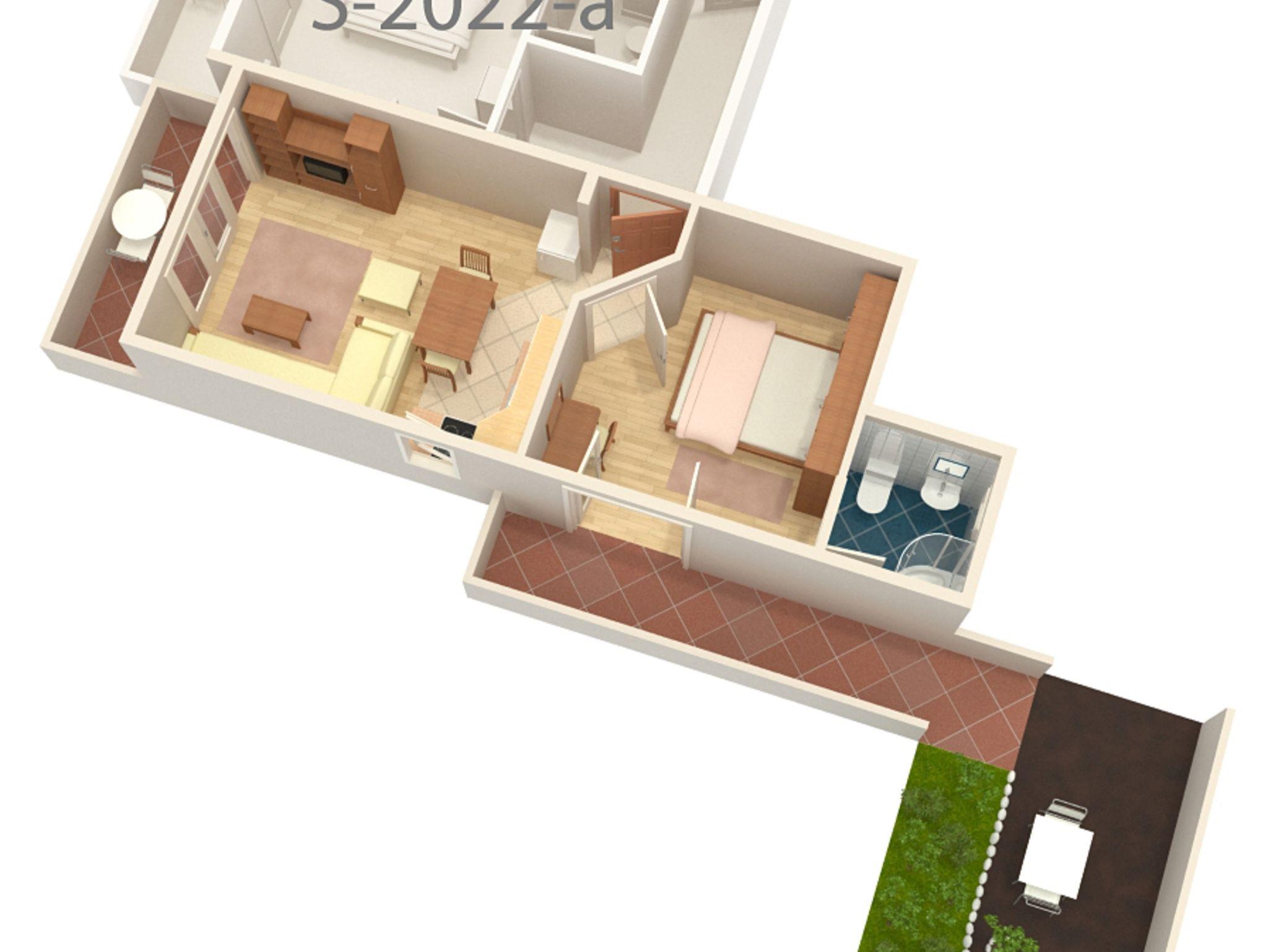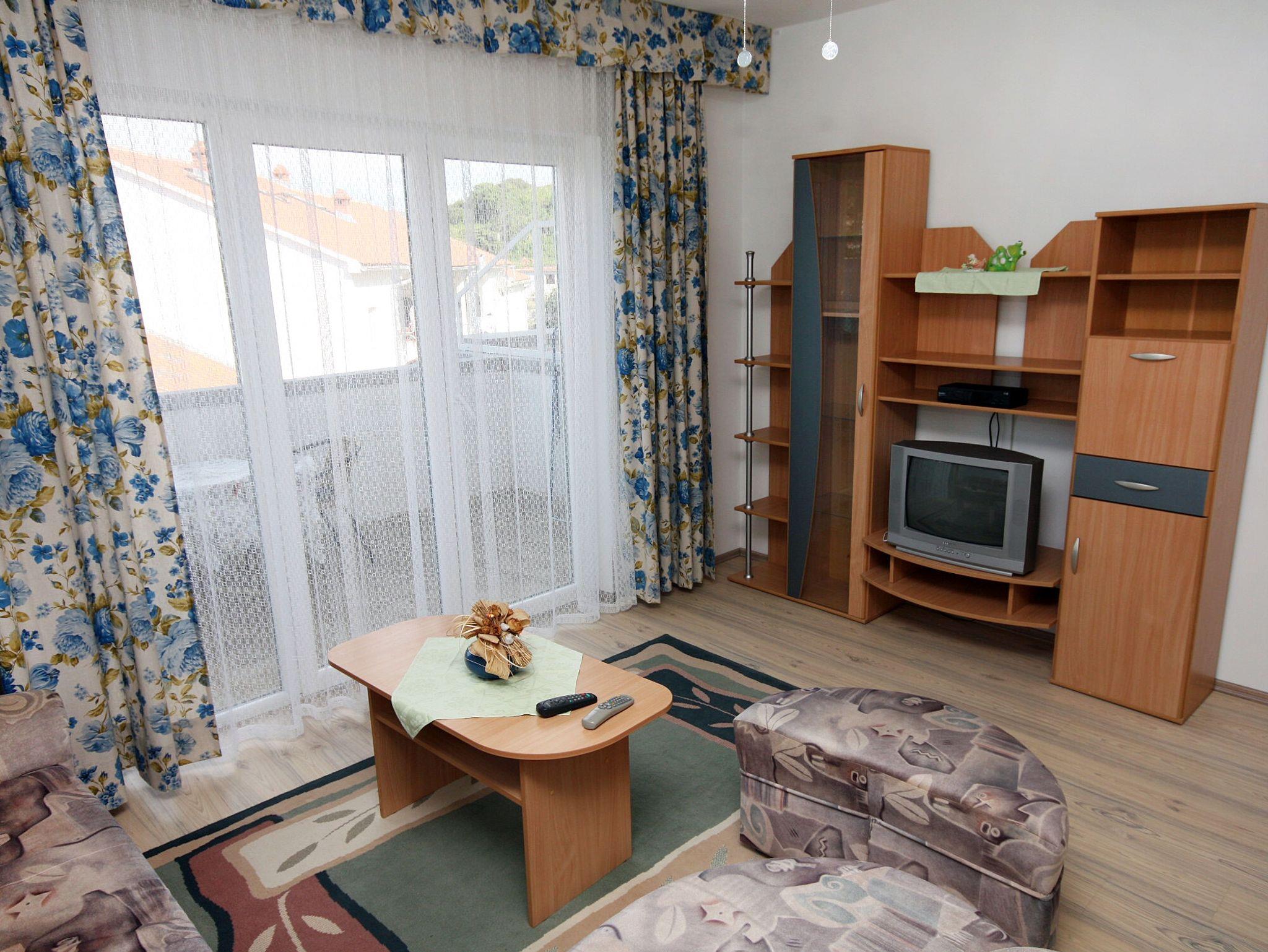Ferienwohnung bietet Platz für 4 Gäste. Die Betten sind in Schlafzimmern, die es 1 gibt, und in Wohnzimmer, innerhalb einer Gesamtfläche von 41m2, angeordnet. Die Gäste haben eine eigene Terrasse zur Verfügung, auf der sie in warmen Sommernächten genießen können. Das Apartment bietet Meerblick. Es ist erlaubt, Speisen auf dem Gemeinschafts-Grill vorzubereiten. IM PREIS INBEGRIFFEN: Kurtaxe, Endreinigung, Klimatisierung, Parkplatz, Internet, Föhn. VERBINDLICHE ZUSÄTZLICHE KOSTEN: Aufzahlung für Kurzaufenthalte (prozentualer Zuschlag pro Nächtigungsanzahl: 30% - 1, 20% - 2, 10% - 3). UNVERBINDLICHE ZUSÄTZLICHE KOSTEN: Wäschewaschen (5,00 € Waschen), Bootsanlegeplatz (5,00 € pro Nacht). Die Verfügbarkeit zusätzlicher Dienstleistungen in Ihrem reservierten Termin und die Preise derselben (falls nicht aufgeführt) müssen im Voraus überprüft werden. Zusätzliche Dienstleistungen die in der Zahlungsaufforderung nicht aufgeführt sind werden direkt beim Vermieter bezahlt, angenommen der Gast nutzt auch diese. Ermäßigung auf den Grundpreis: Gratistag 21=19 (bei einem Aufenthalt von 21 Tagen oder mehr erhalten Sie 2 Gratistage für den Aufenthalt bis 31.12.26).