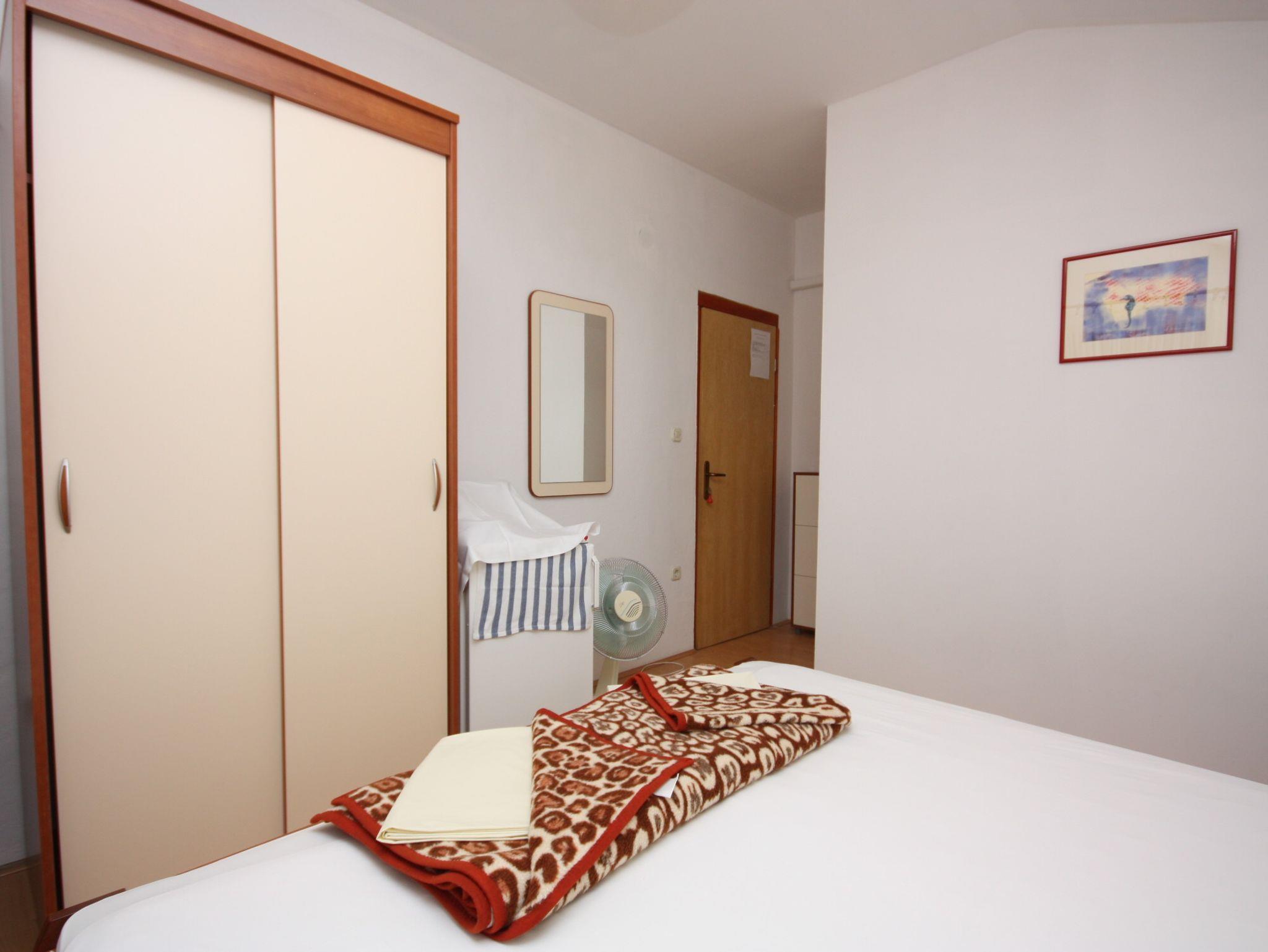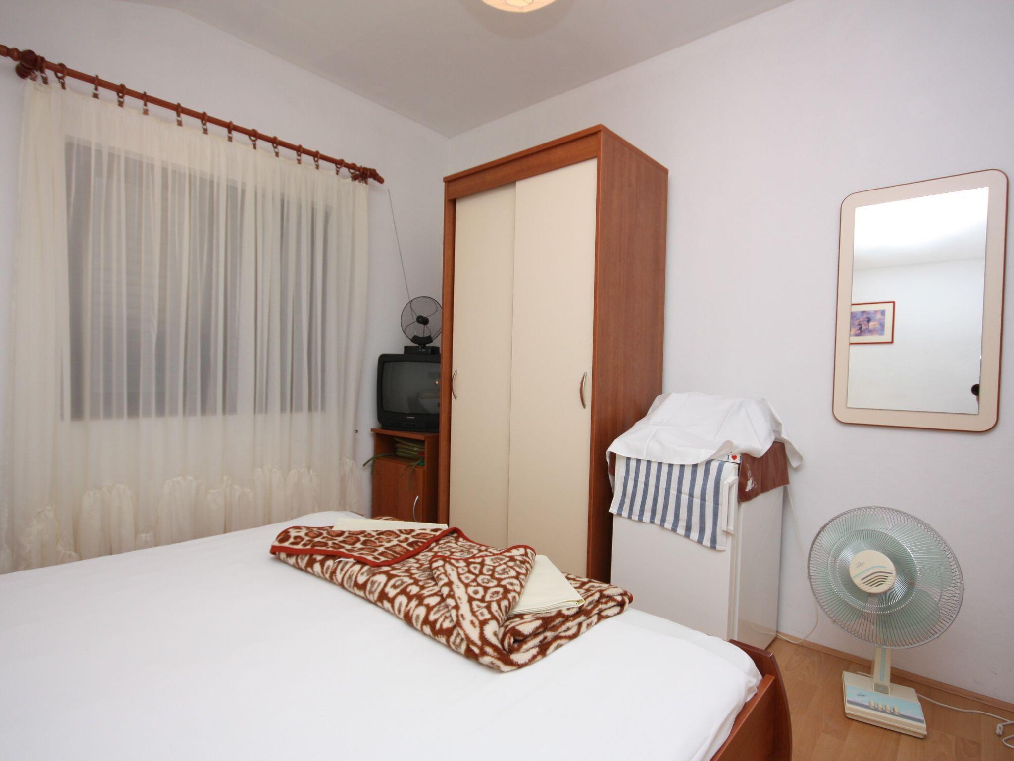Zimmer bietet Platz für 2 Gäste. Die Betten sind in Schlafzimmern, die es 1 gibt, innerhalb einer Gesamtfläche von 14m2, angeordnet. Die Gäste haben eine eigene Terrasse zur Verfügung, auf der sie in warmen Sommernächten genießen können. Das Zimmer bietet Meerblick. Es ist erlaubt, Speisen auf dem Gemeinschafts-Grill vorzubereiten. Die reservierte Unterkunftseinheit ist ein Zimmer mit eigenem Badezimmer ohne die Möglichkeit der Nutzung einer Küche. IM PREIS INBEGRIFFEN: Kurtaxe, Endreinigung, Klimatisierung, Parkplatz, Internet, Bügeleisen, Bügelbrett, Föhn. VERBINDLICHE ZUSÄTZLICHE KOSTEN: Aufzahlung für Kurzaufenthalte (prozentualer Zuschlag pro Nächtigungsanzahl: 30% - 1, 20% - 2, 10% - 3). Die Verfügbarkeit zusätzlicher Dienstleistungen in Ihrem reservierten Termin und die Preise derselben (falls nicht aufgeführt) müssen im Voraus überprüft werden. Zusätzliche Dienstleistungen die in der Zahlungsaufforderung nicht aufgeführt sind werden direkt beim Vermieter bezahlt, angenommen der Gast nutzt auch diese.