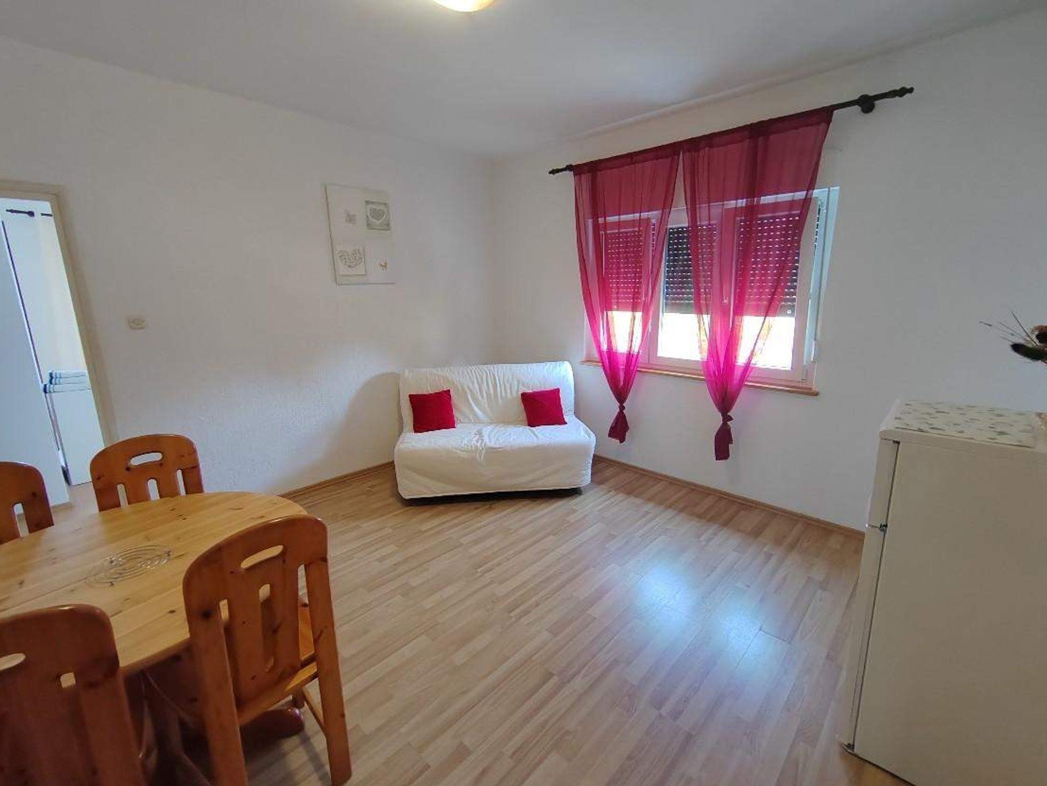 Ferienwohnung bietet Platz für 3 Gäste. Die Betten sind in Schlafzimmern, die es 1 gibt, und in Wohnzimmer, innerhalb einer Gesamtfläche von 32m2, angeordnet. Die Gäste haben eine eigene Terrasse zur Verfügung, auf der sie in warmen Sommernächten genießen können. Das Apartment bietet Meerblick. Es ist erlaubt, Speisen auf dem Gemeinschafts-Grill vorzubereiten. IM PREIS INBEGRIFFEN: Kurtaxe, Endreinigung, Klimatisierung, Parkplatz, Internet. VERBINDLICHE ZUSÄTZLICHE KOSTEN: Aufzahlung für Kurzaufenthalte (prozentualer Zuschlag pro Nächtigungsanzahl: 30% - 1, 20% - 2, 10% - 3). UNVERBINDLICHE ZUSÄTZLICHE KOSTEN: Bootsanlegeplatz (10,00 € pro Nacht). Die Verfügbarkeit zusätzlicher Dienstleistungen in Ihrem reservierten Termin und die Preise derselben (falls nicht aufgeführt) müssen im Voraus überprüft werden. Zusätzliche Dienstleistungen die in der Zahlungsaufforderung nicht aufgeführt sind werden direkt beim Vermieter bezahlt, angenommen der Gast nutzt auch diese.
