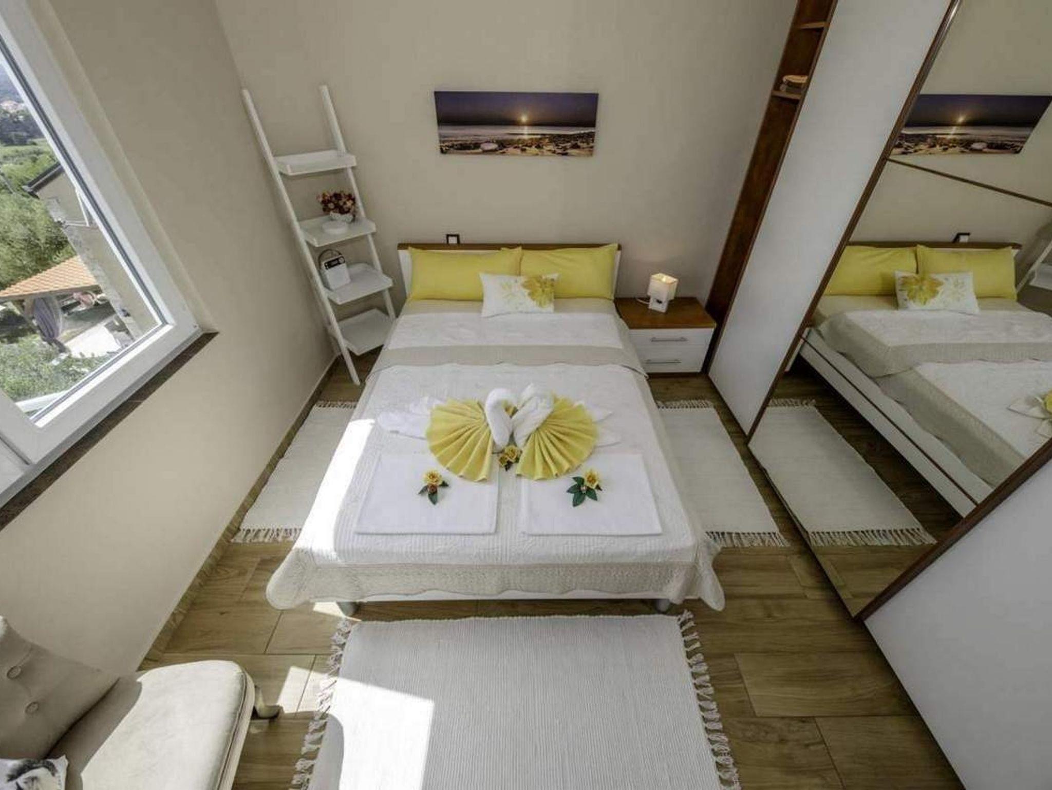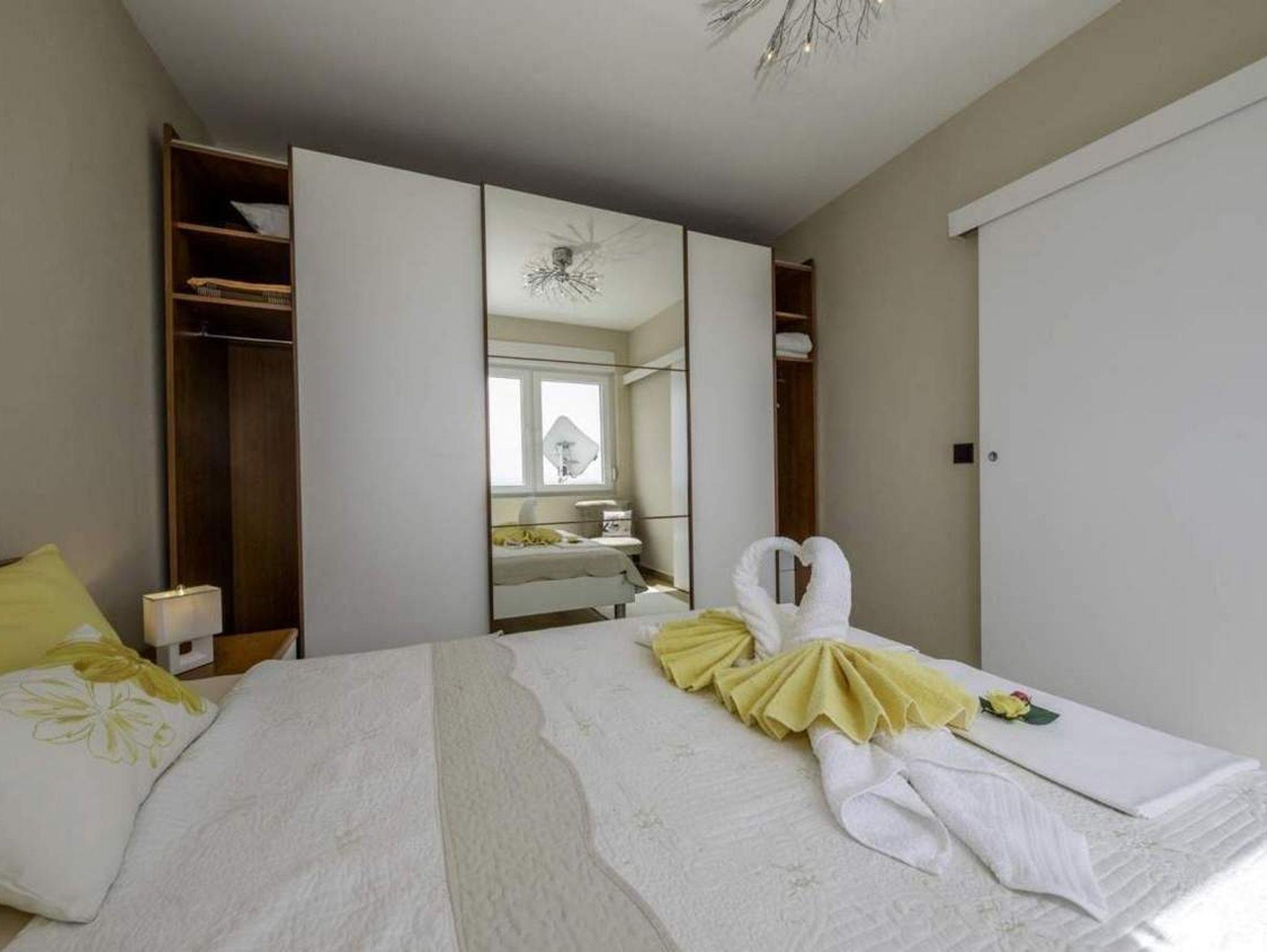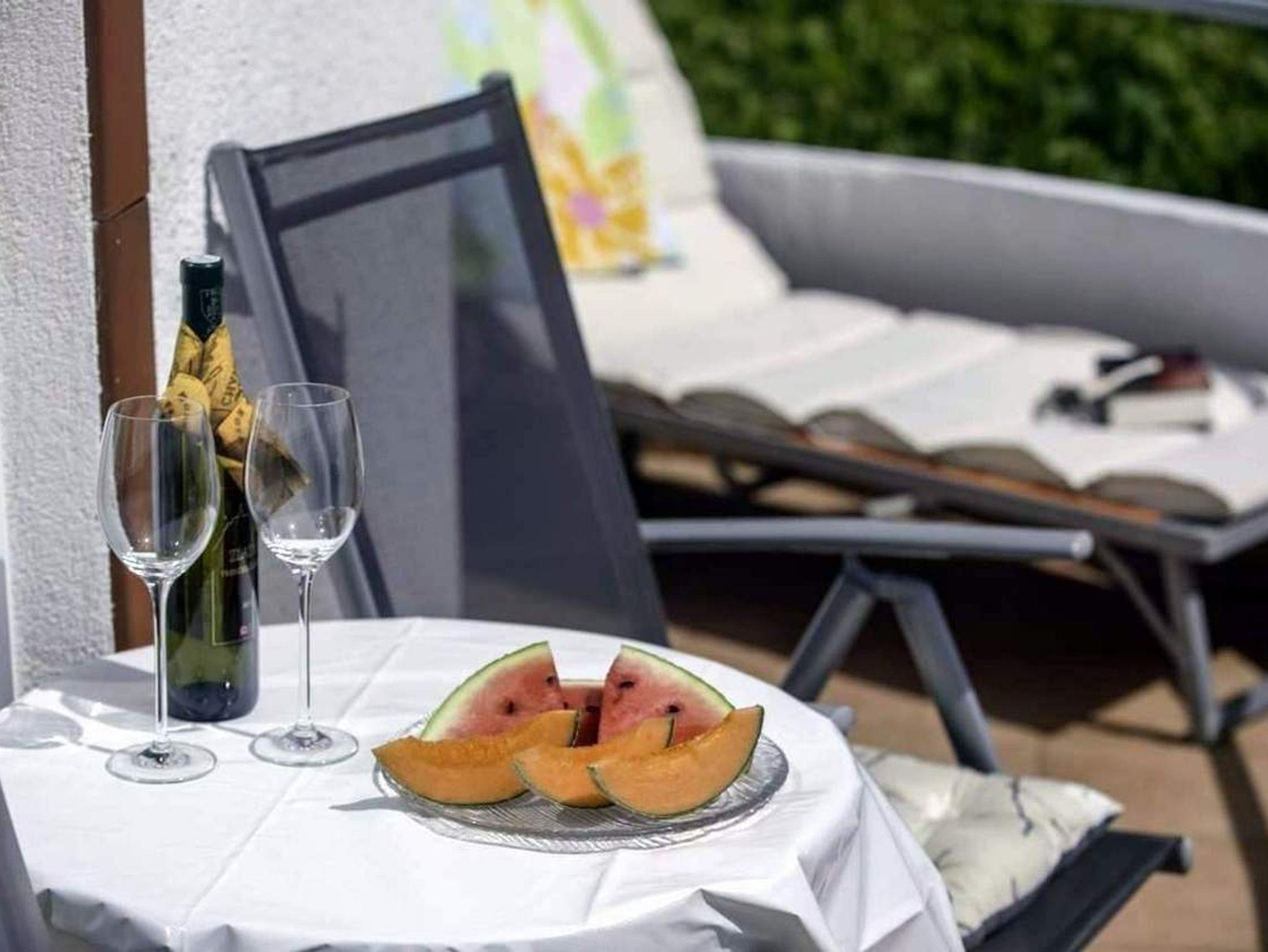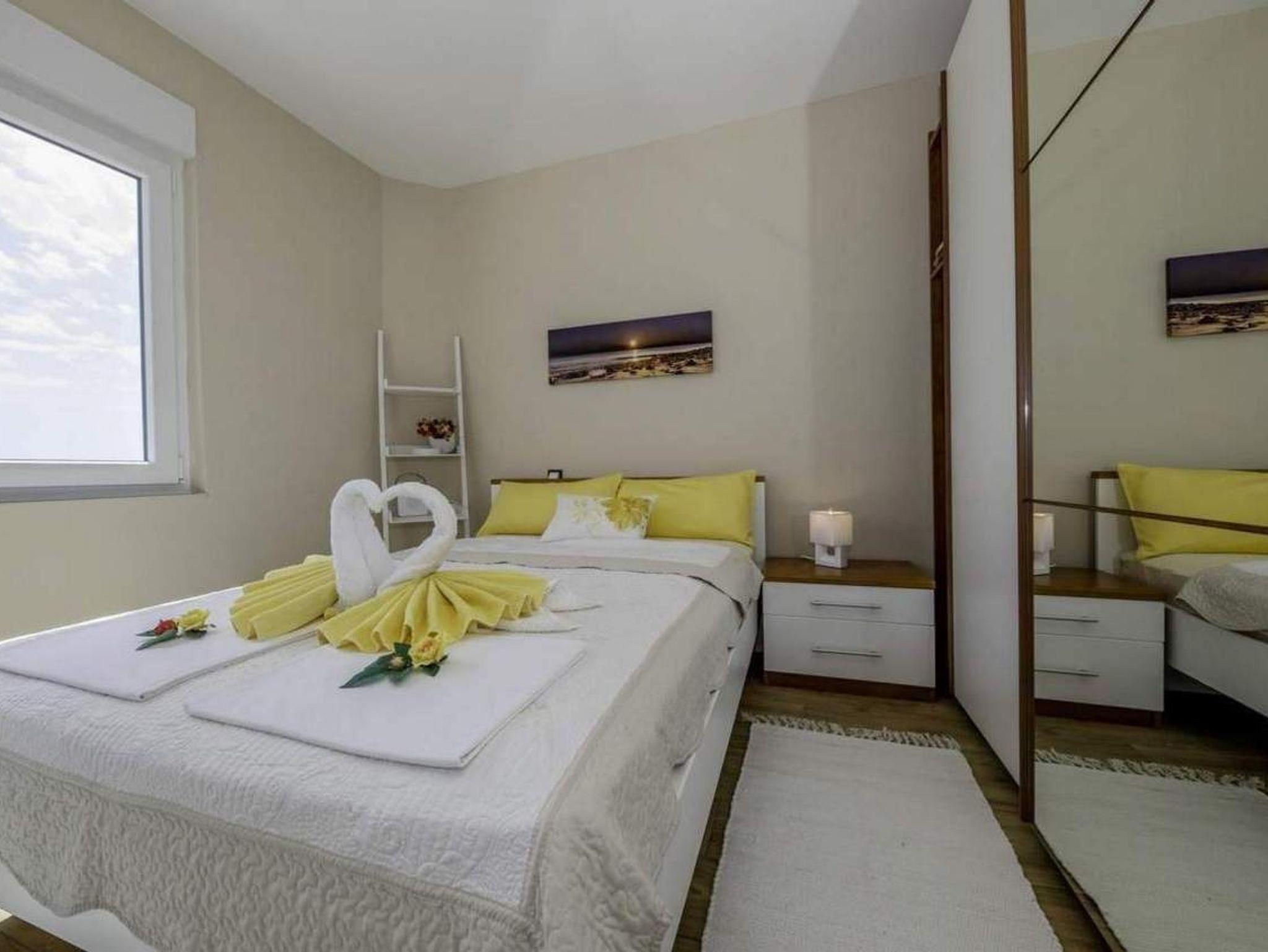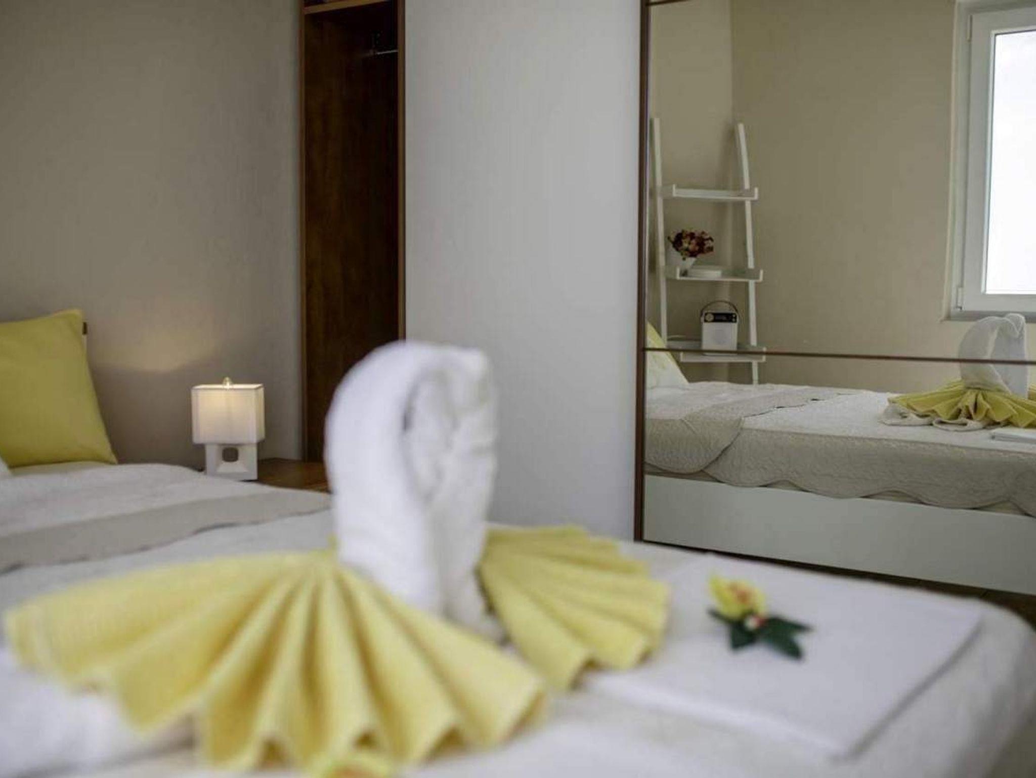 Ferienwohnung bietet Platz für 3 Gäste. Die Betten sind in Schlafzimmern, die es 1 gibt, und in Wohnzimmer, innerhalb einer Gesamtfläche von 40m2, angeordnet. Die Gäste haben eine eigene Terrasse zur Verfügung, auf der sie in warmen Sommernächten genießen können. Das Apartment bietet Meerblick. Es ist erlaubt, Speisen auf dem Gemeinschafts-Grill vorzubereiten. In der Unterkunftseinheit besteht die Möglichkeit des Mitbringens von Haustieren gegen Aufpreis. IM PREIS INBEGRIFFEN: Kurtaxe, Endreinigung, Klimatisierung, Parkplatz, Internet. VERBINDLICHE ZUSÄTZLICHE KOSTEN: Aufzahlung für Kurzaufenthalte (prozentualer Zuschlag pro Nächtigungsanzahl: 30% - 1, 20% - 2, 10% - 3). UNVERBINDLICHE ZUSÄTZLICHE KOSTEN: Haustiere (8,00 € pro Nacht). Die Verfügbarkeit zusätzlicher Dienstleistungen in Ihrem reservierten Termin und die Preise derselben (falls nicht aufgeführt) müssen im Voraus überprüft werden. Zusätzliche Dienstleistungen die in der Zahlungsaufforderung nicht aufgeführt sind werden direkt beim Vermieter bezahlt, angenommen der Gast nutzt auch diese.