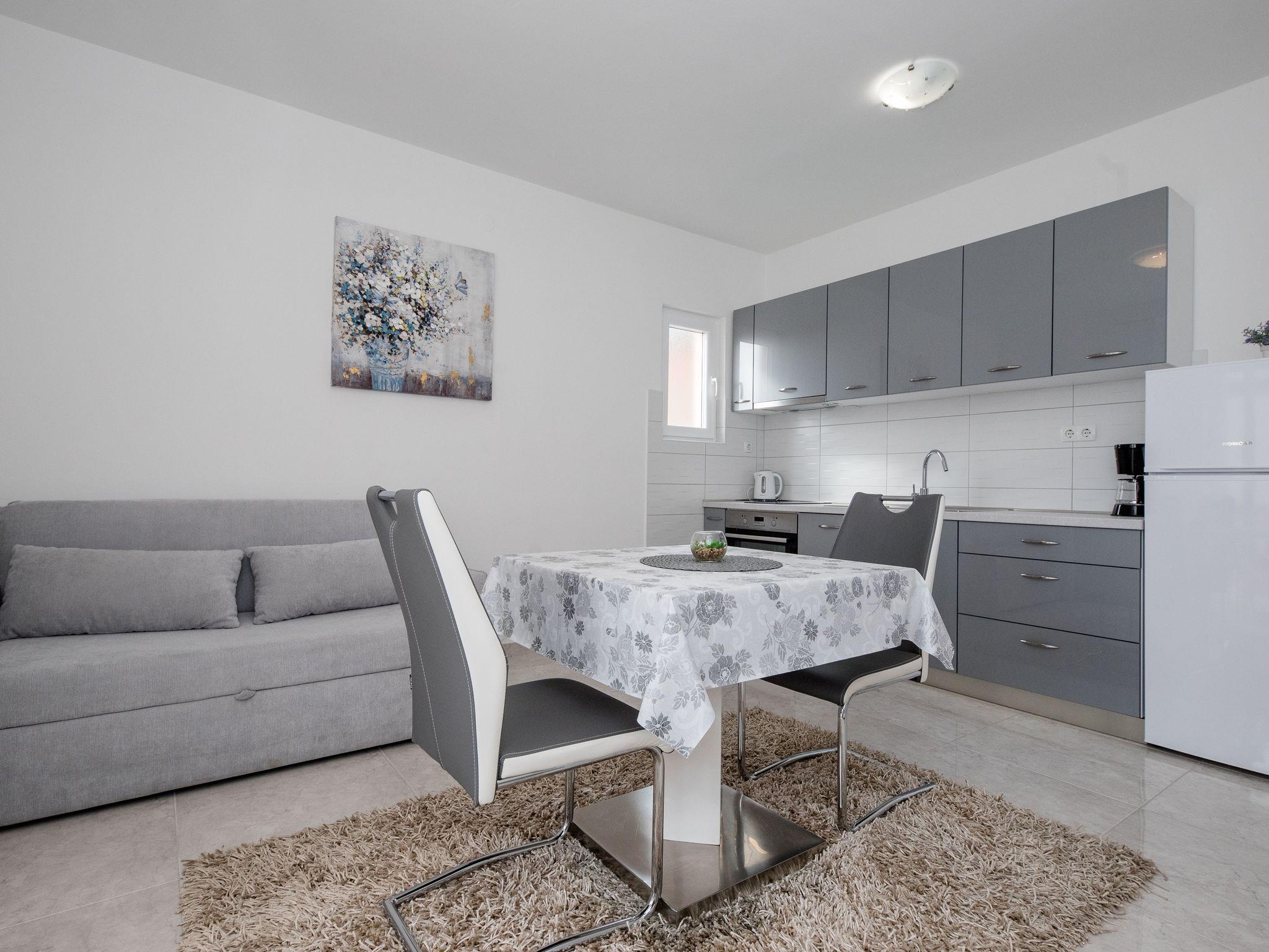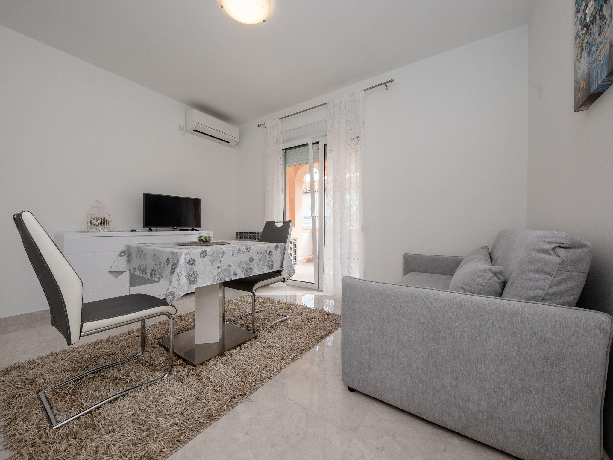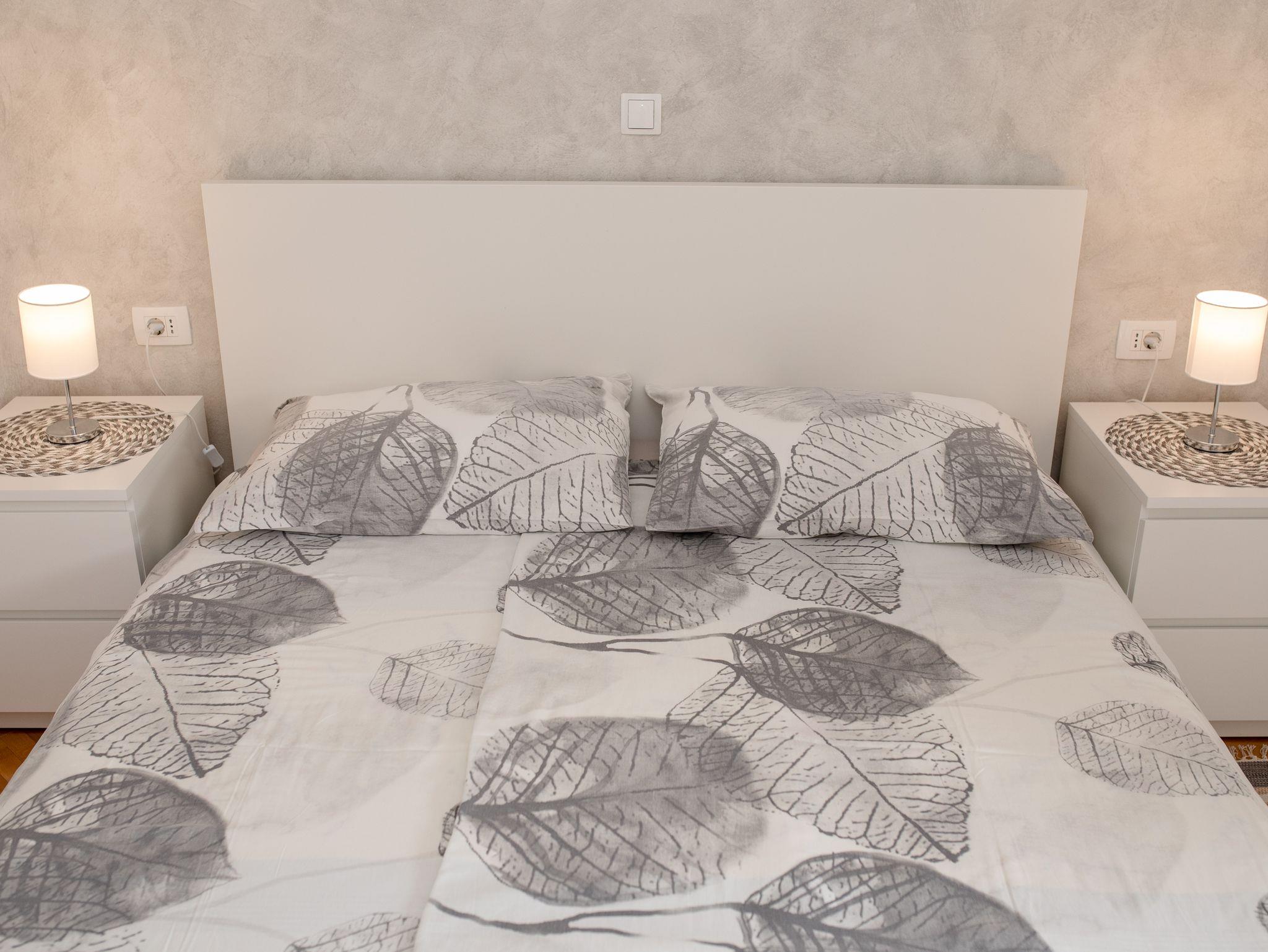 Ferienwohnung bietet Platz für 2 Gäste. Die Betten sind in Schlafzimmern, die es 1 gibt, innerhalb einer Gesamtfläche von 31m2, angeordnet. Die Gäste haben eine eigene Terrasse zur Verfügung, auf der sie in warmen Sommernächten genießen können. IM PREIS INBEGRIFFEN: Kurtaxe, Endreinigung, Klimatisierung, Parkplatz, Internet. VERBINDLICHE ZUSÄTZLICHE KOSTEN: Aufzahlung für Kurzaufenthalte (prozentualer Zuschlag pro Nächtigungsanzahl: 30% - 1, 20% - 2, 10% - 3). UNVERBINDLICHE ZUSÄTZLICHE KOSTEN: Bootsanlegeplatz (7,00 € pro Nacht). Die Verfügbarkeit zusätzlicher Dienstleistungen in Ihrem reservierten Termin und die Preise derselben (falls nicht aufgeführt) müssen im Voraus überprüft werden. Zusätzliche Dienstleistungen die in der Zahlungsaufforderung nicht aufgeführt sind werden direkt beim Vermieter bezahlt, angenommen der Gast nutzt auch diese.