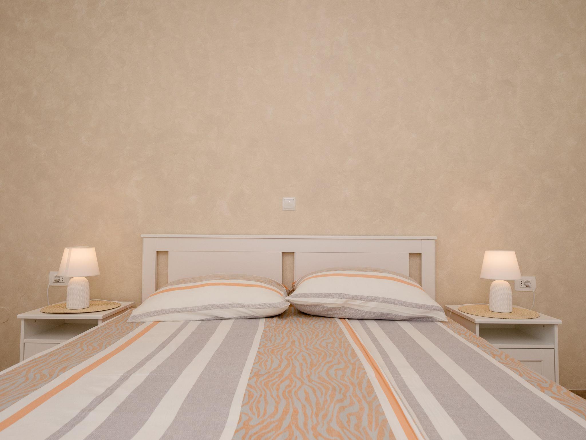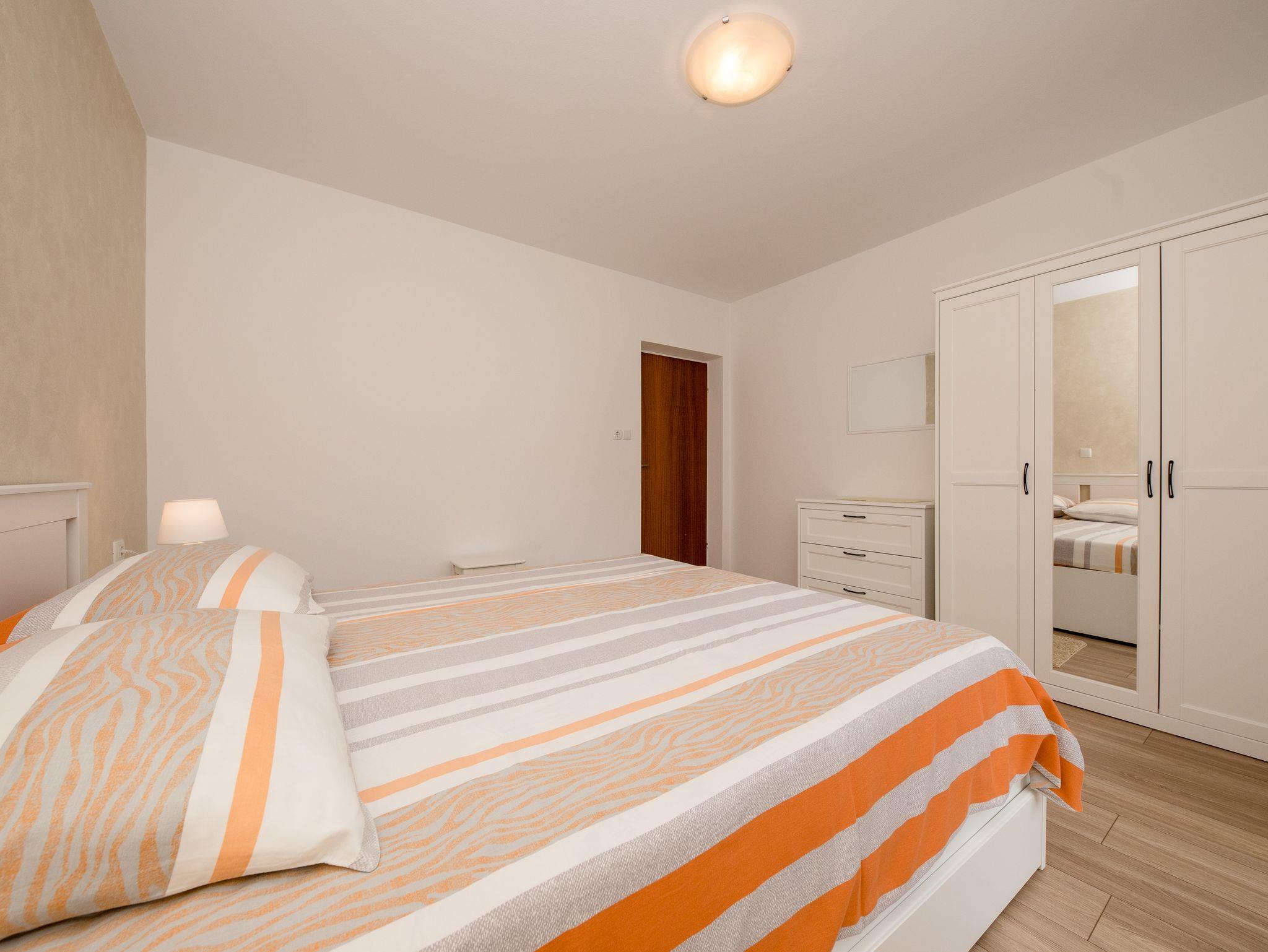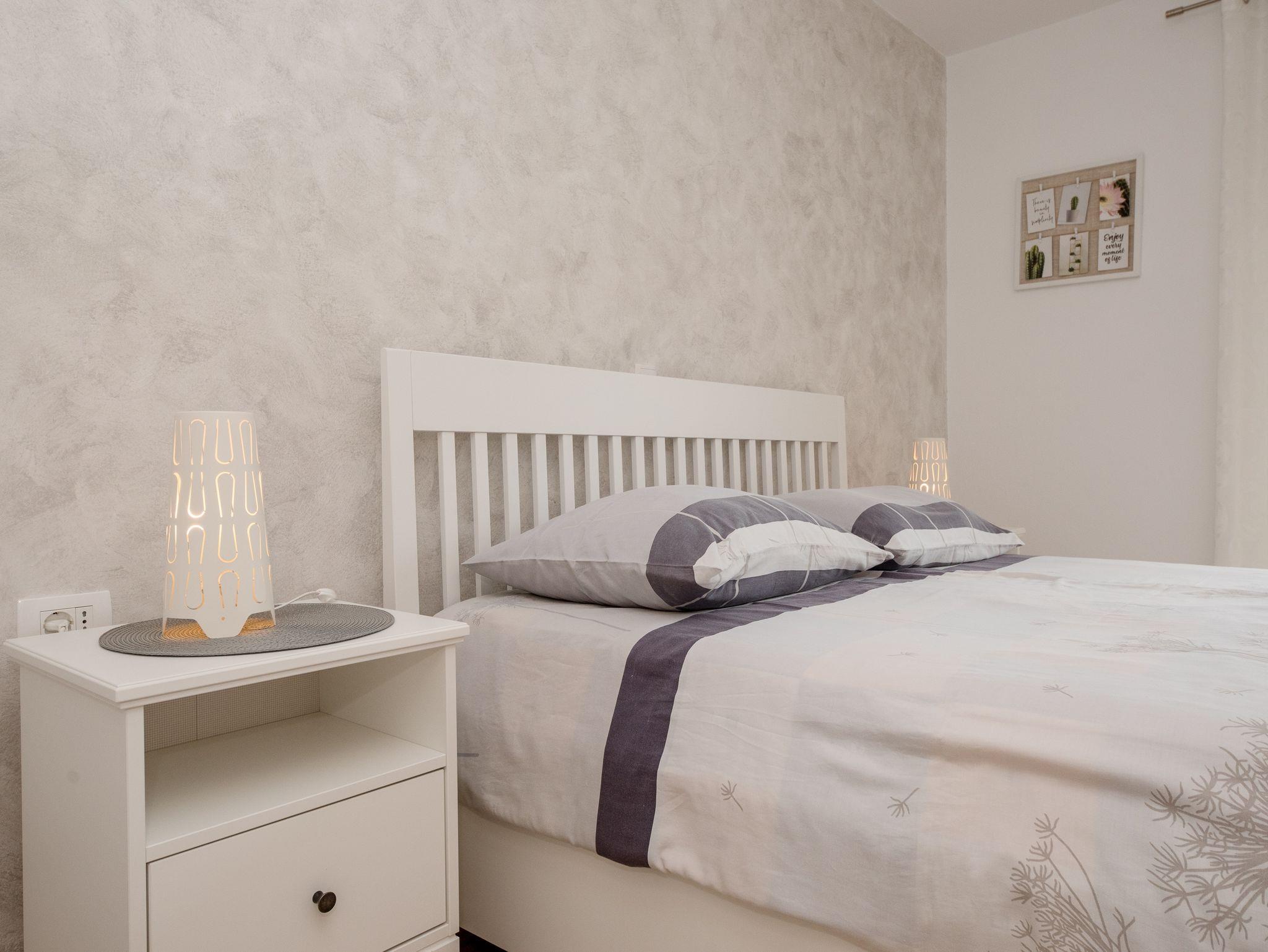 Ferienwohnung bietet Platz für 4 Gäste. Die Betten sind in Schlafzimmern, die es 2 gibt, innerhalb einer Gesamtfläche von 52m2, angeordnet. Die Gäste haben eine eigene Terrasse zur Verfügung, auf der sie in warmen Sommernächten genießen können. IM PREIS INBEGRIFFEN: Kurtaxe, Endreinigung, Klimatisierung, Parkplatz, Internet. VERBINDLICHE ZUSÄTZLICHE KOSTEN: Aufzahlung für Kurzaufenthalte (prozentualer Zuschlag pro Nächtigungsanzahl: 30% - 1, 20% - 2, 10% - 3). UNVERBINDLICHE ZUSÄTZLICHE KOSTEN: Bootsanlegeplatz (7,00 € pro Nacht). Die Verfügbarkeit zusätzlicher Dienstleistungen in Ihrem reservierten Termin und die Preise derselben (falls nicht aufgeführt) müssen im Voraus überprüft werden. Zusätzliche Dienstleistungen die in der Zahlungsaufforderung nicht aufgeführt sind werden direkt beim Vermieter bezahlt, angenommen der Gast nutzt auch diese.